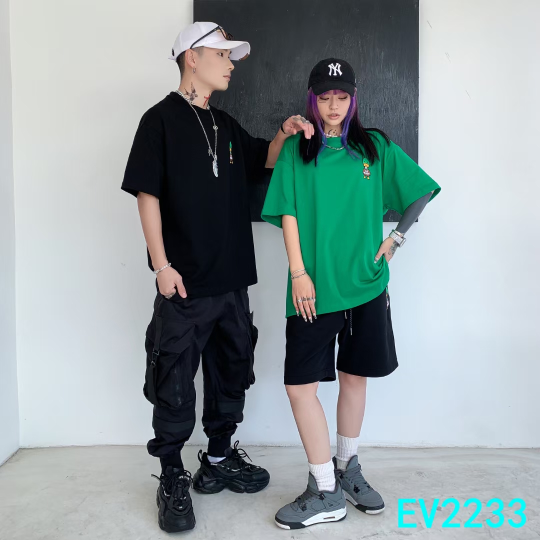 ev2233# 男女同款 潮版微阔肩高街T恤 260g纯棉有质感,上身效果挺括版型超级是显瘦,包容性强 M~3XL(100-200斤可穿)