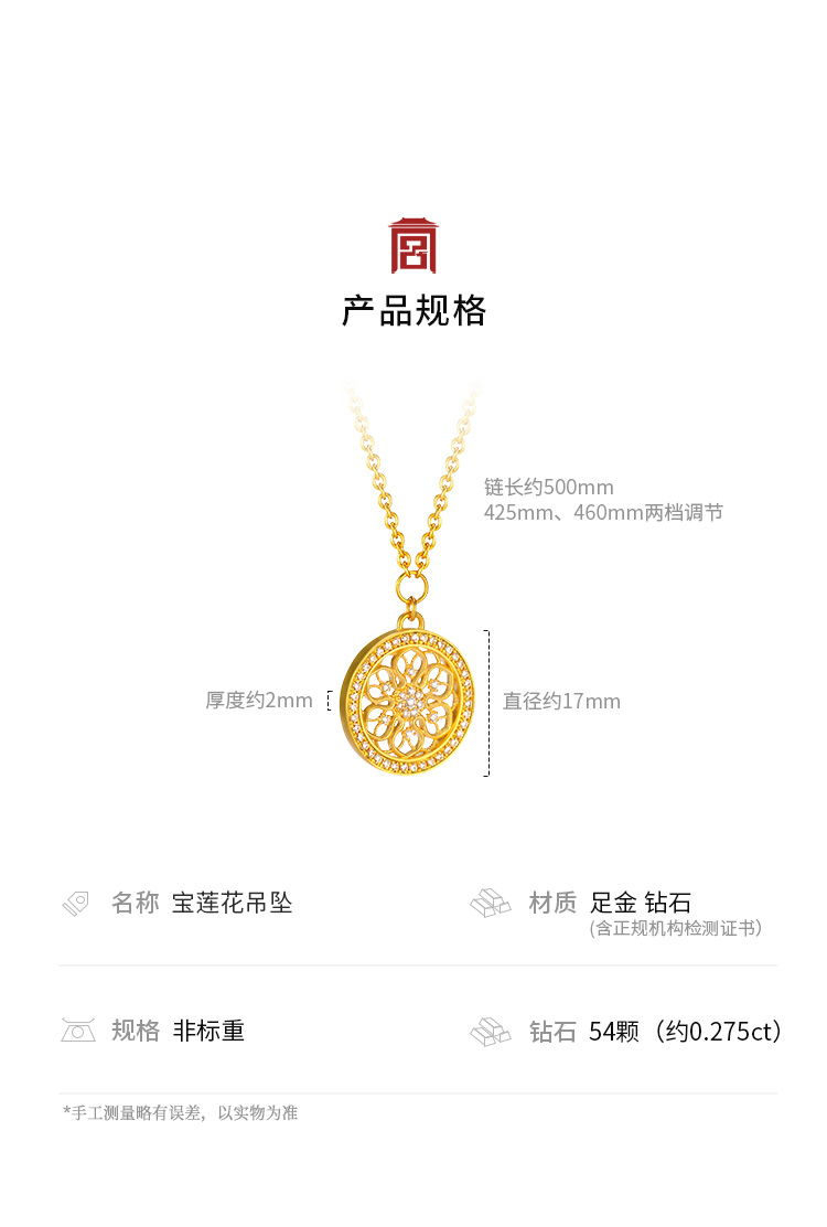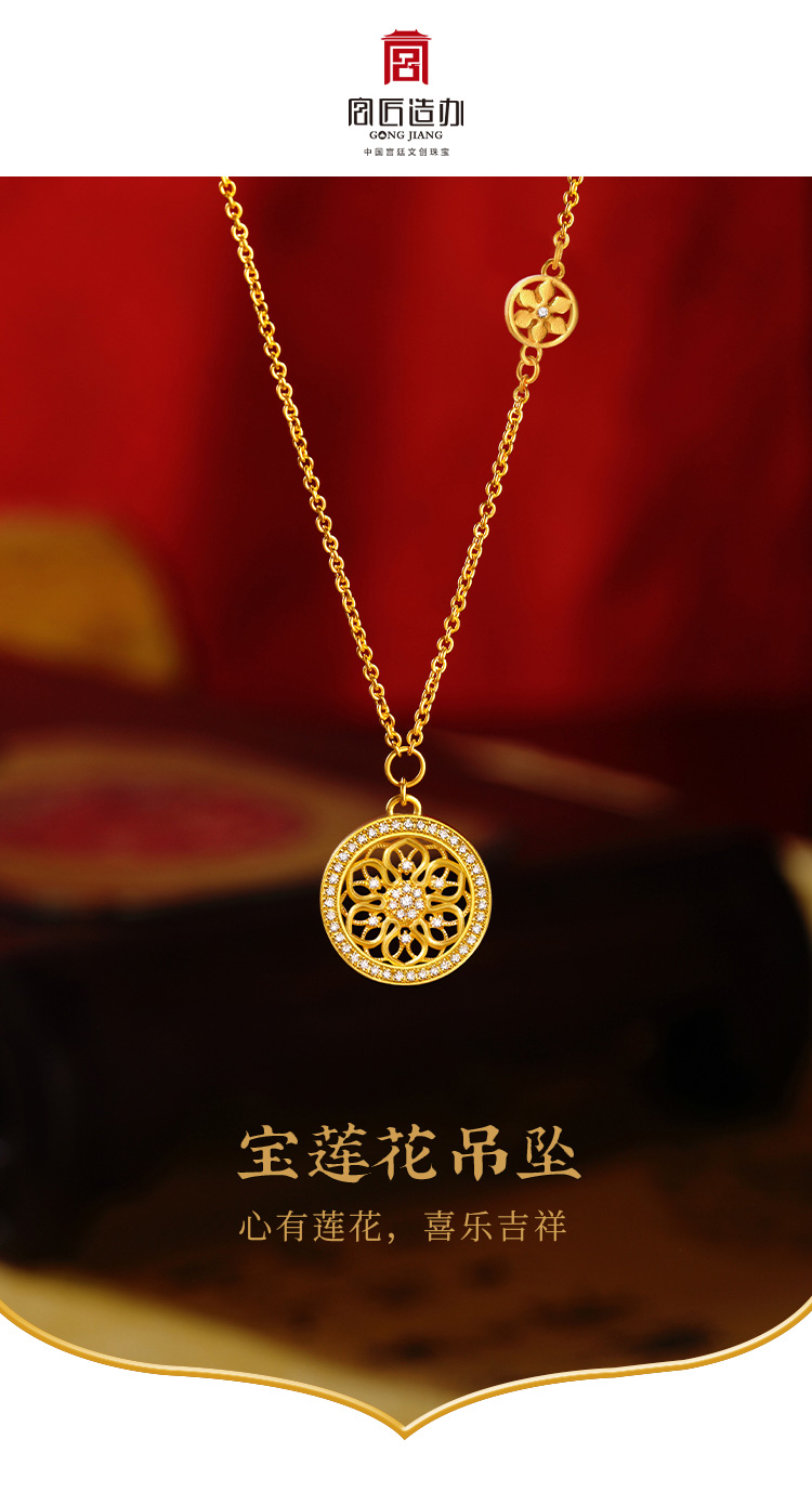 宫匠造办 宝莲花吊坠 黄金镶钻