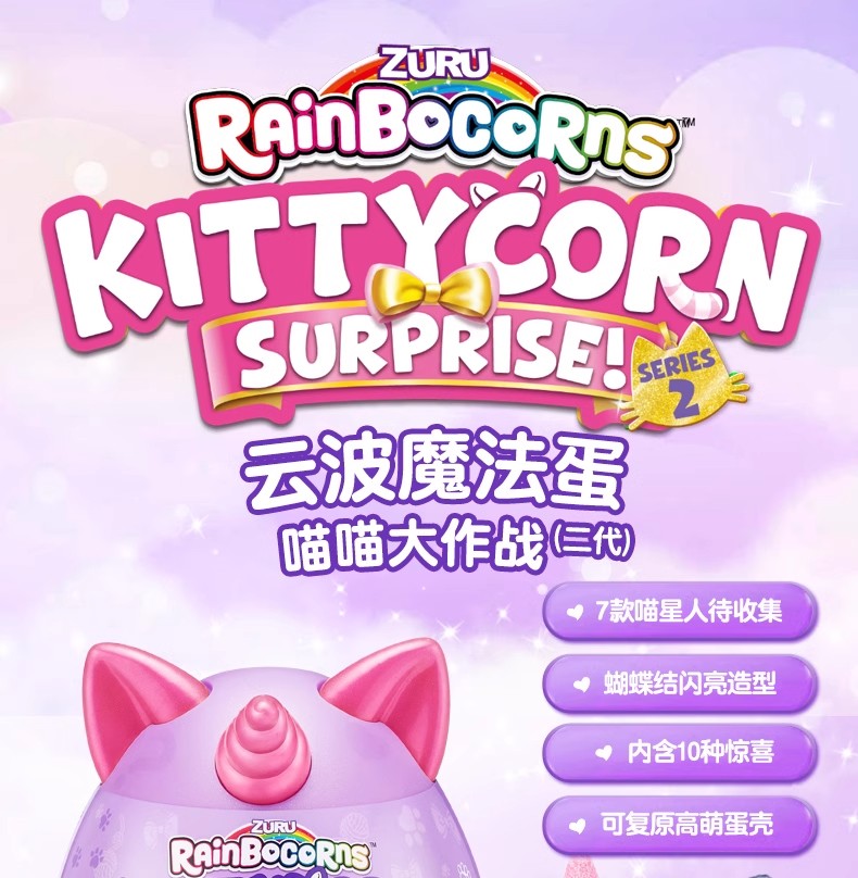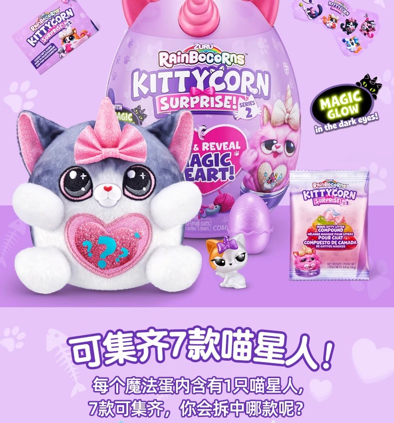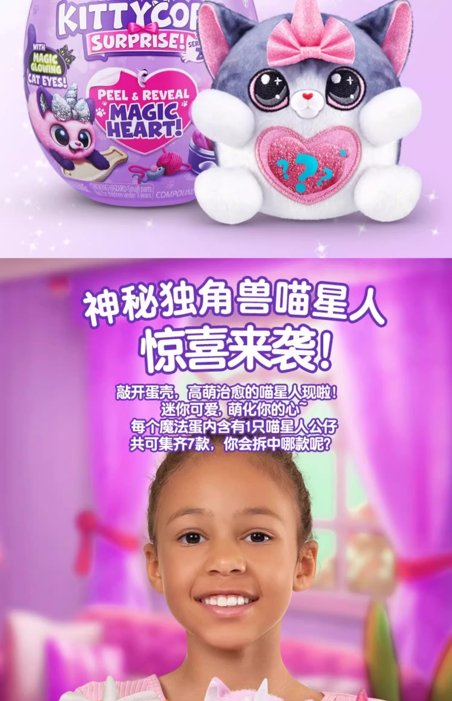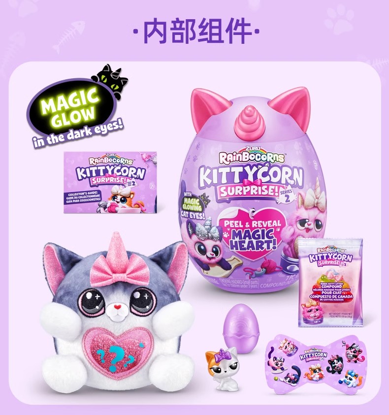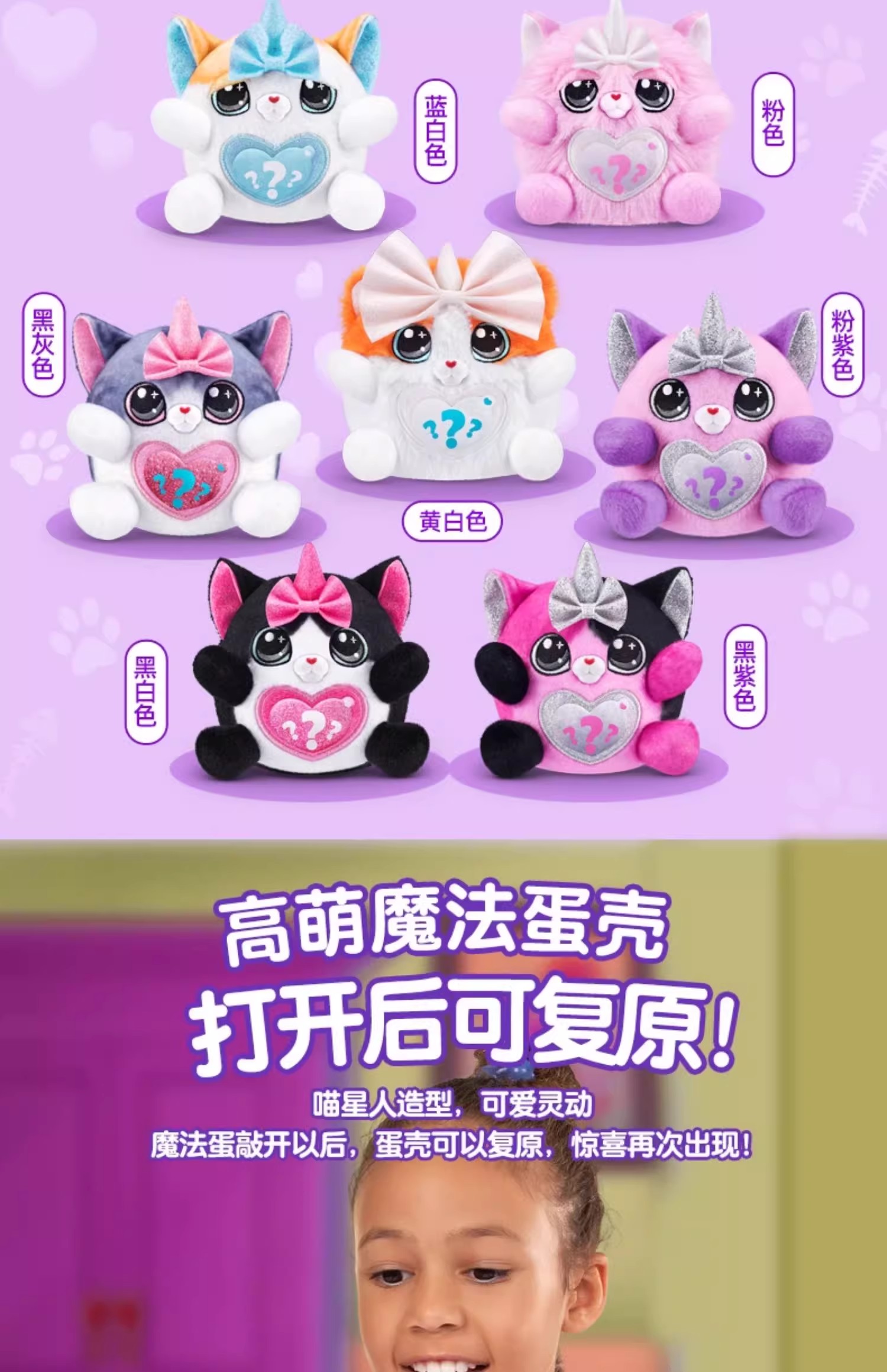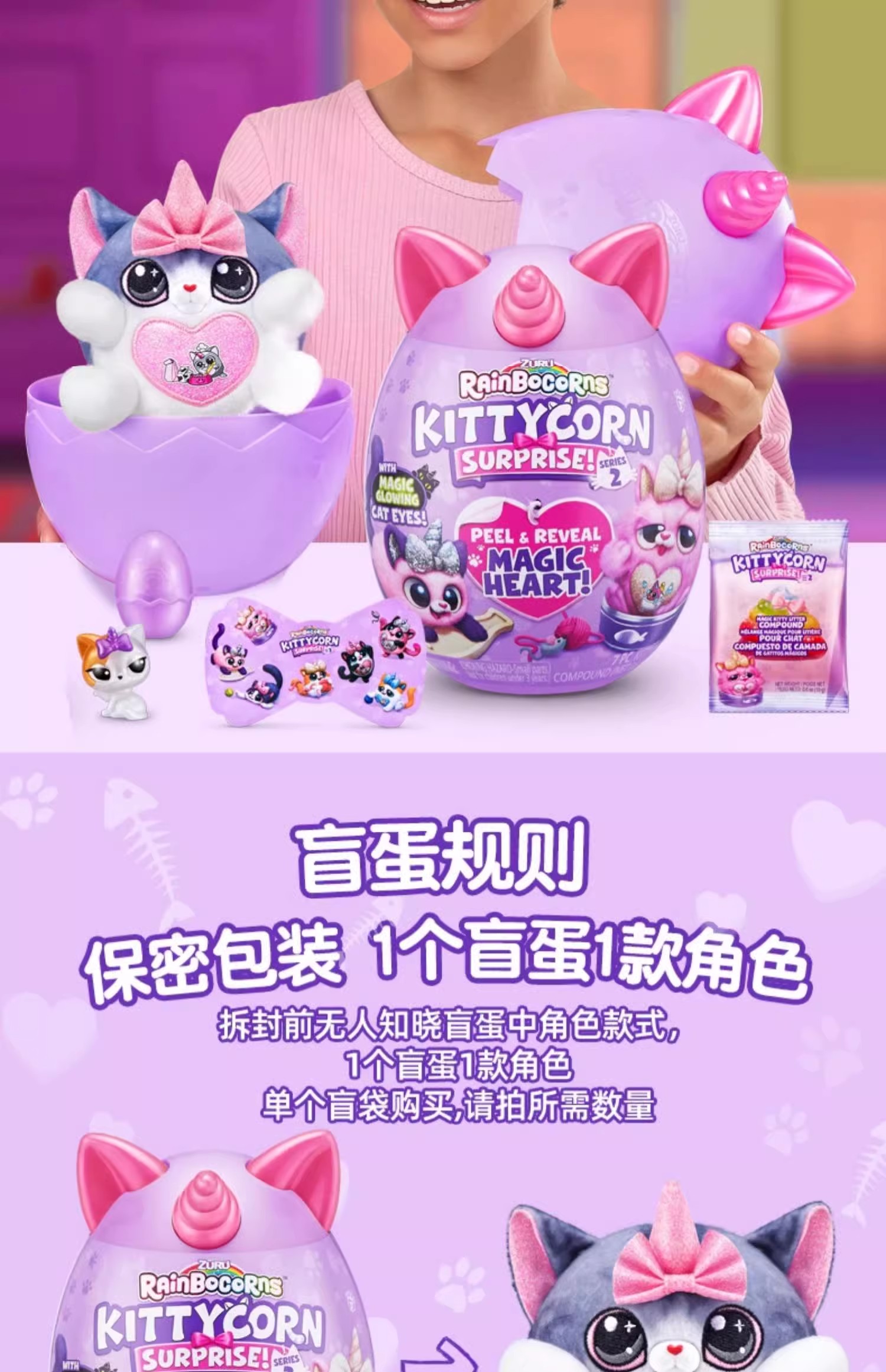 ZURU 云波独角魔法蛋喵喵大作战(二代)盲盒儿童玩具女孩毛绒公仔礼物 8岁+