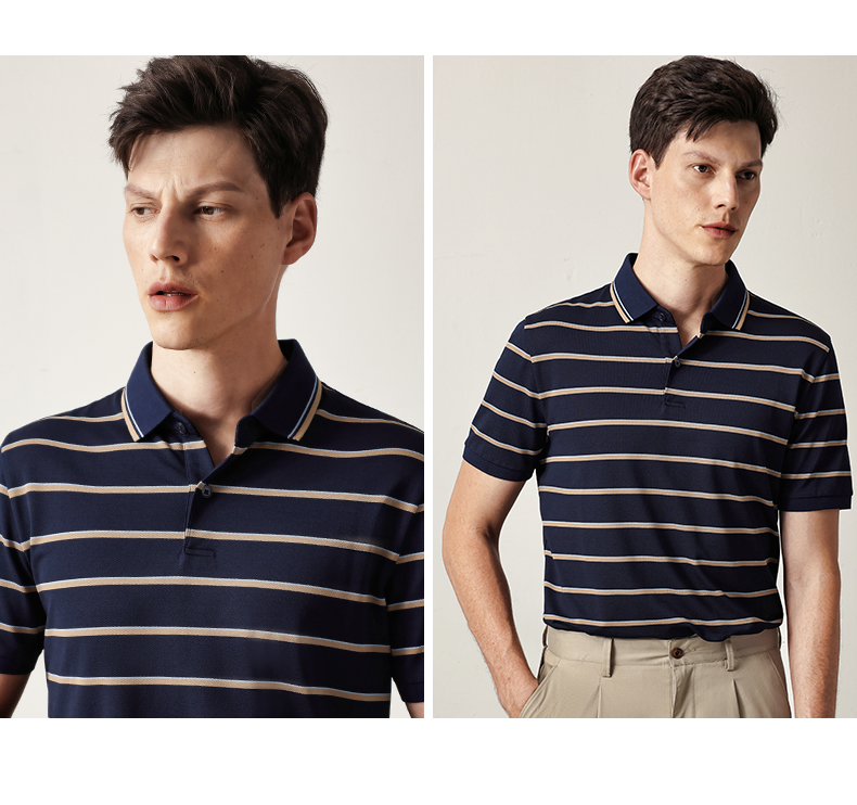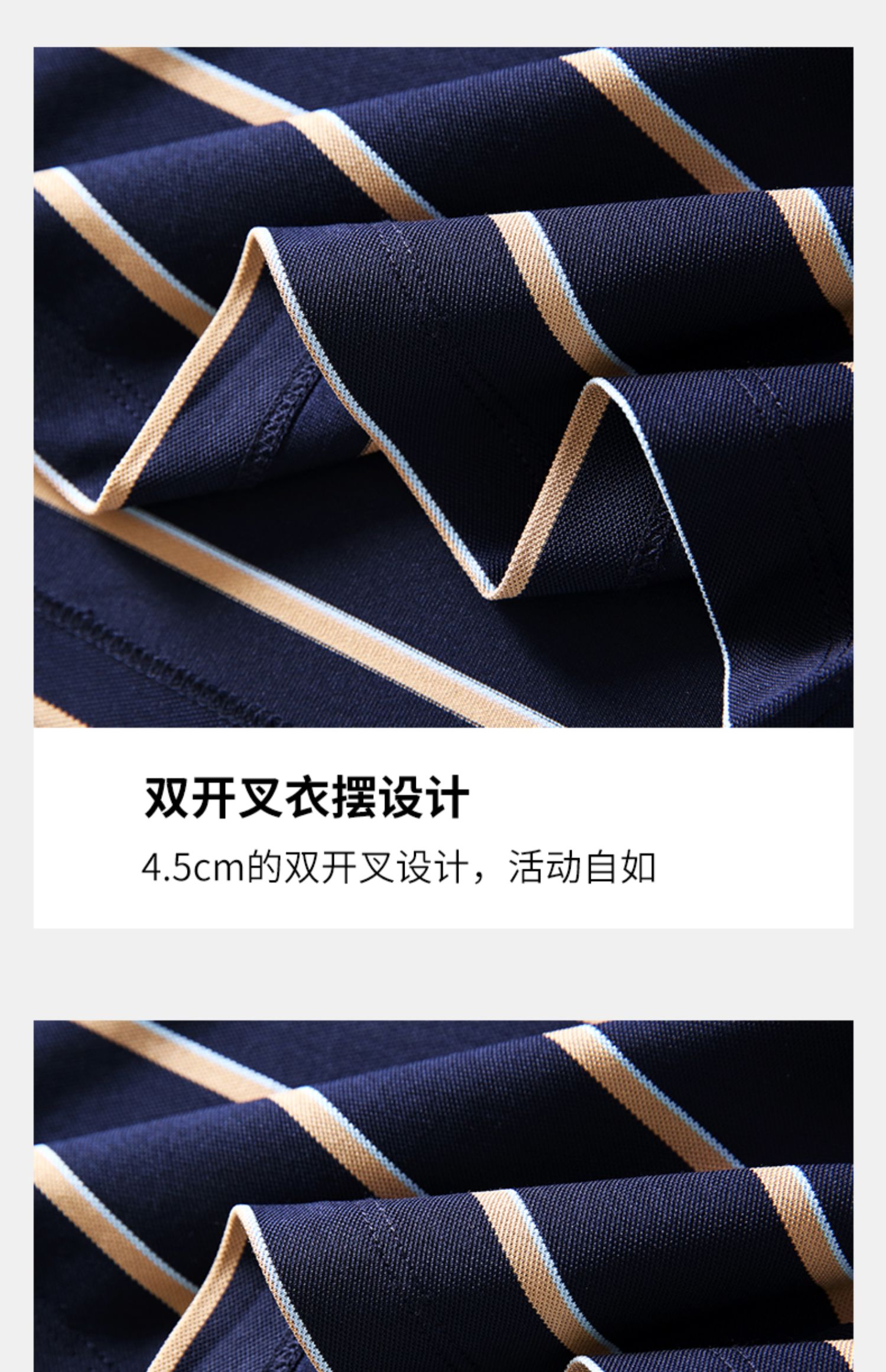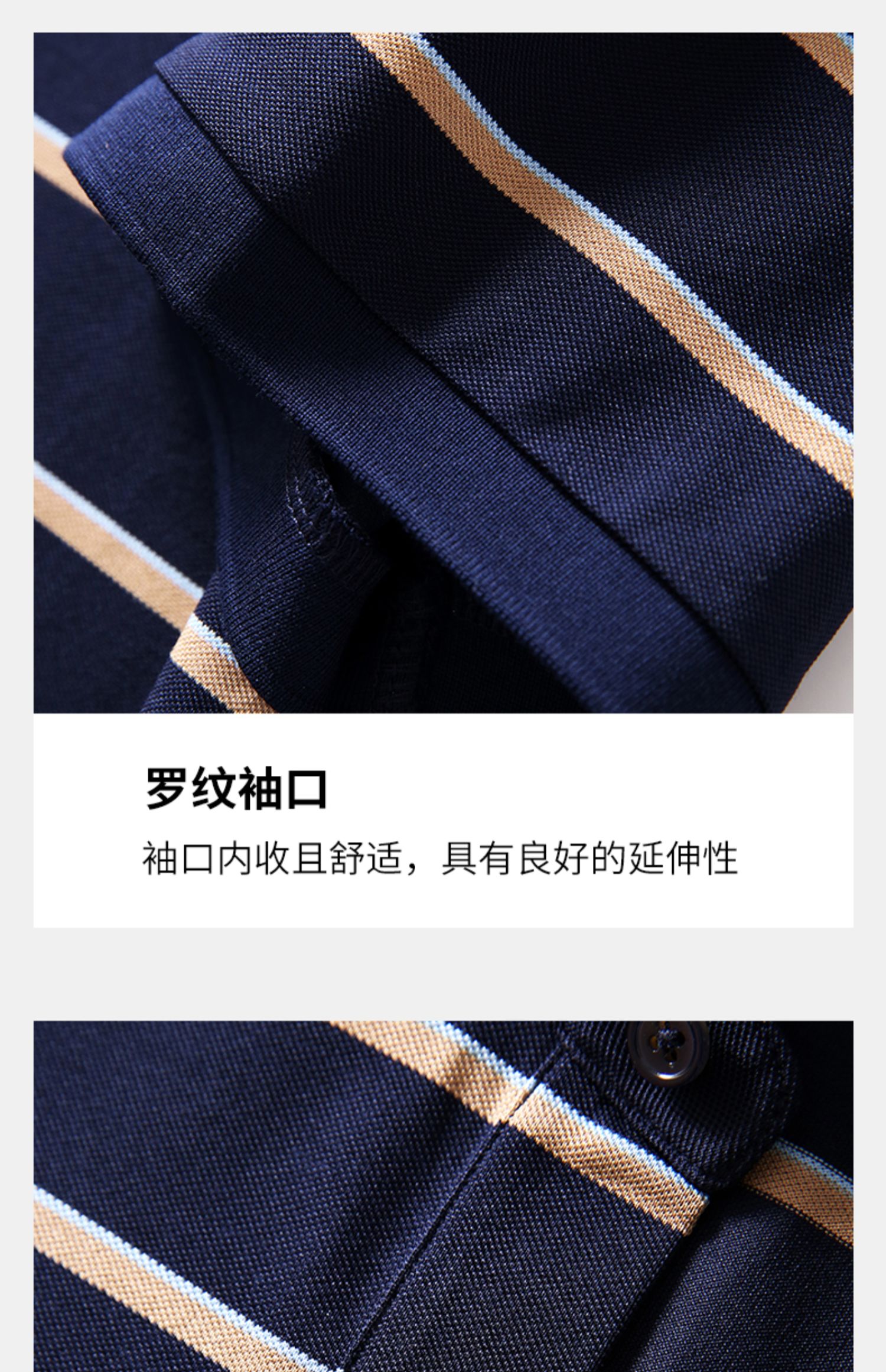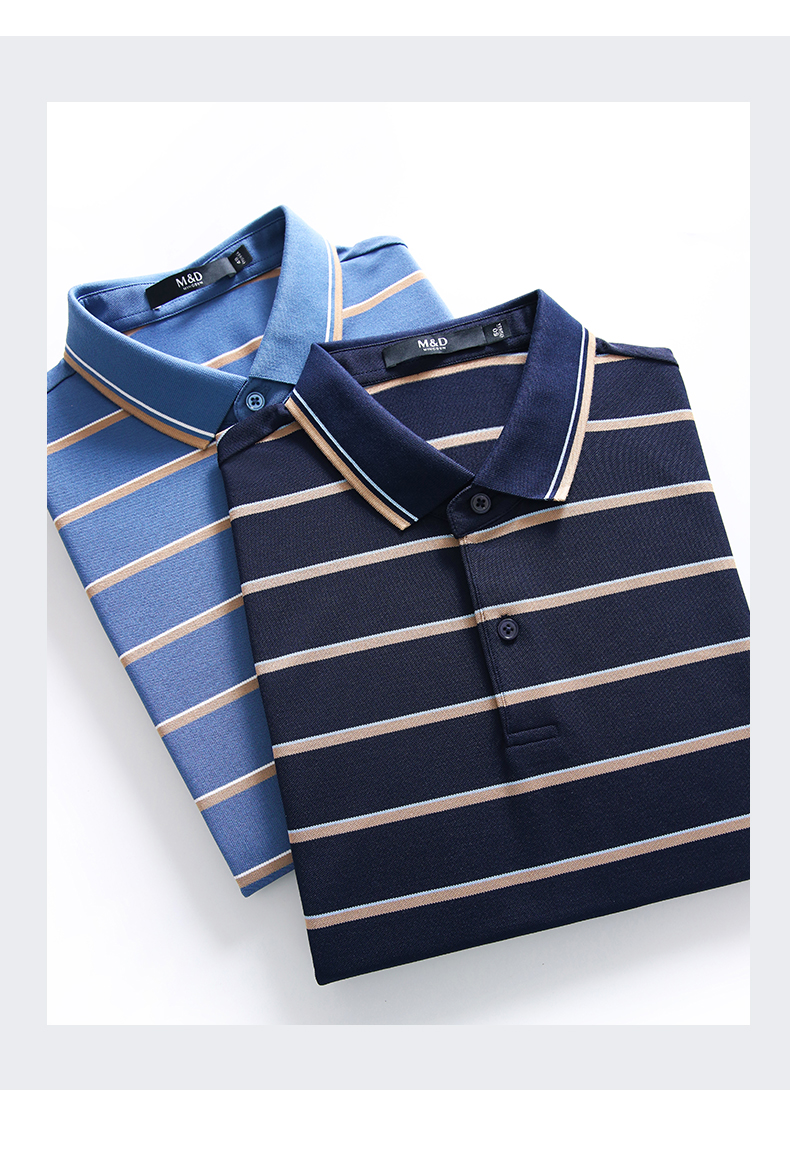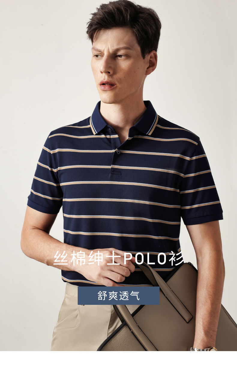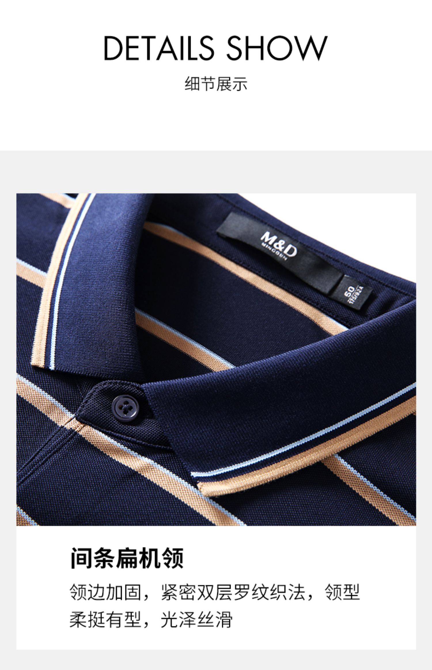 M&D/名盾POLO衫男秋季新款条纹撞色桑蚕丝真丝男装翻领T恤