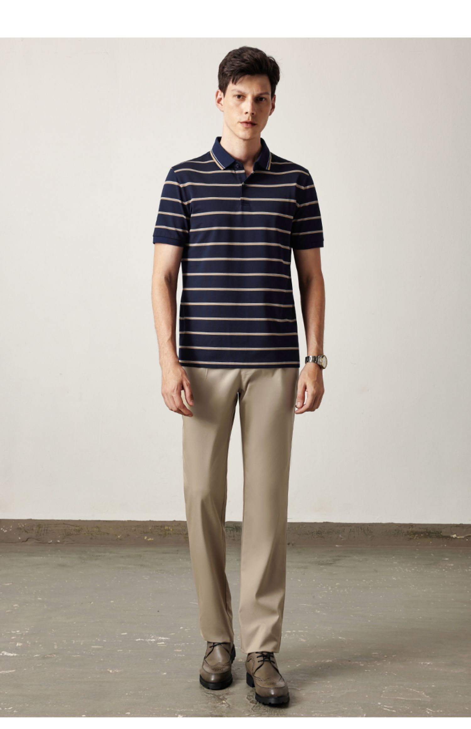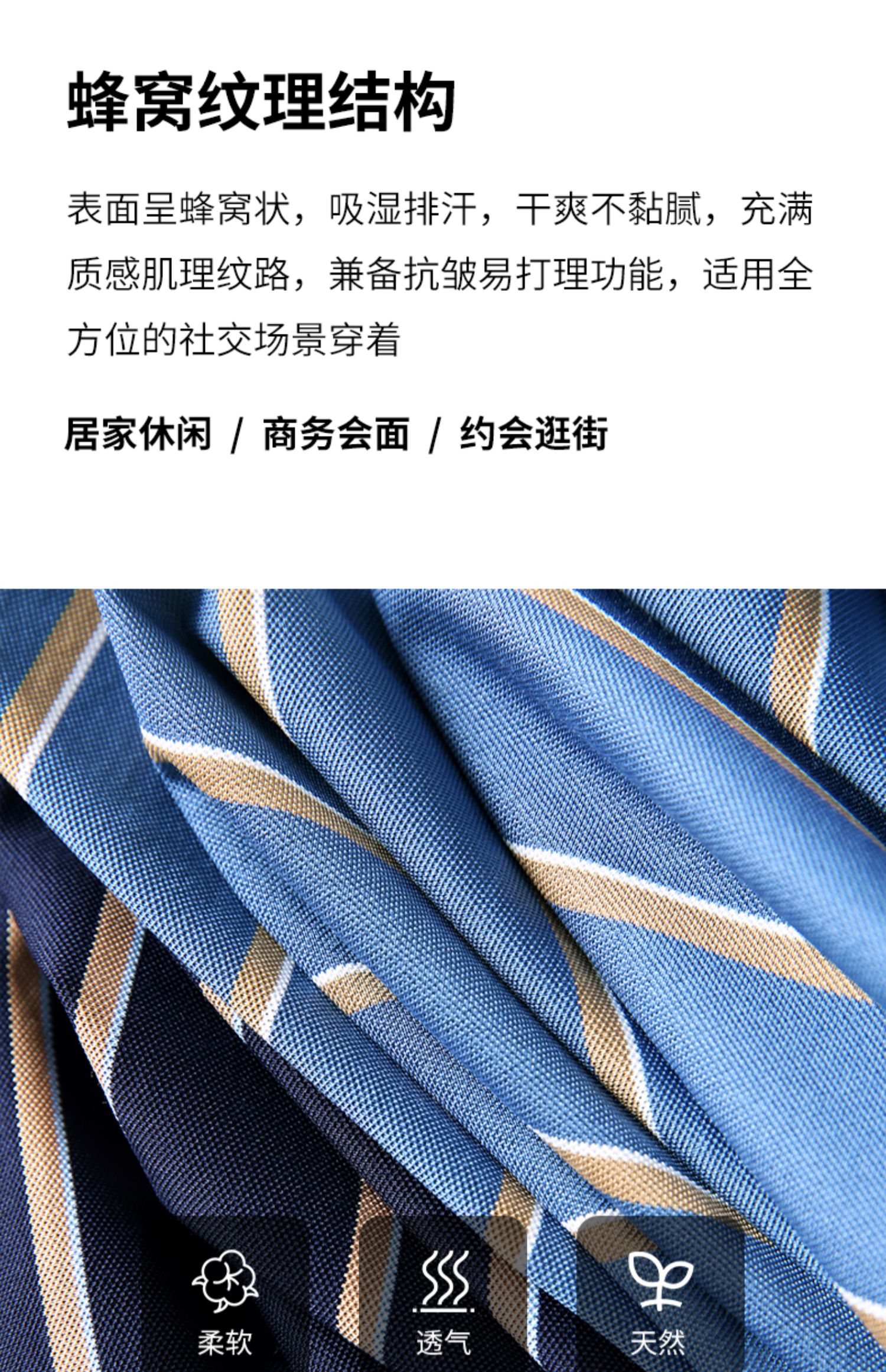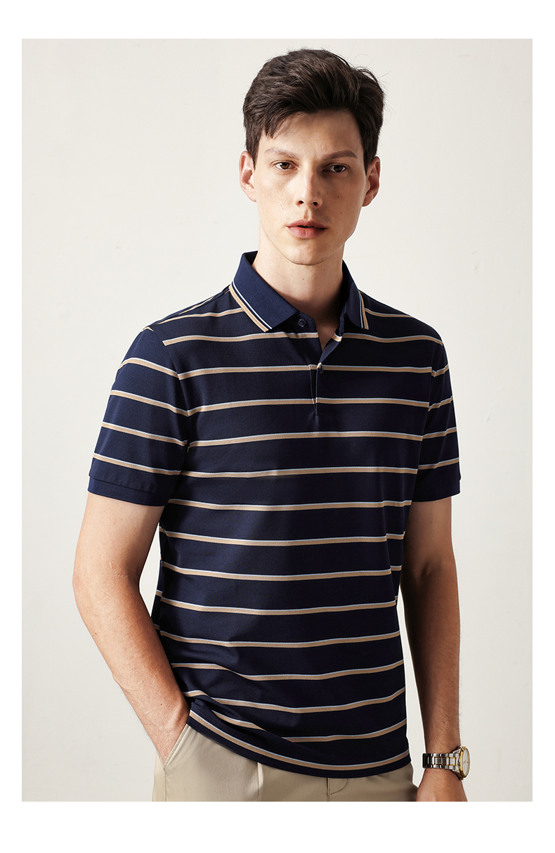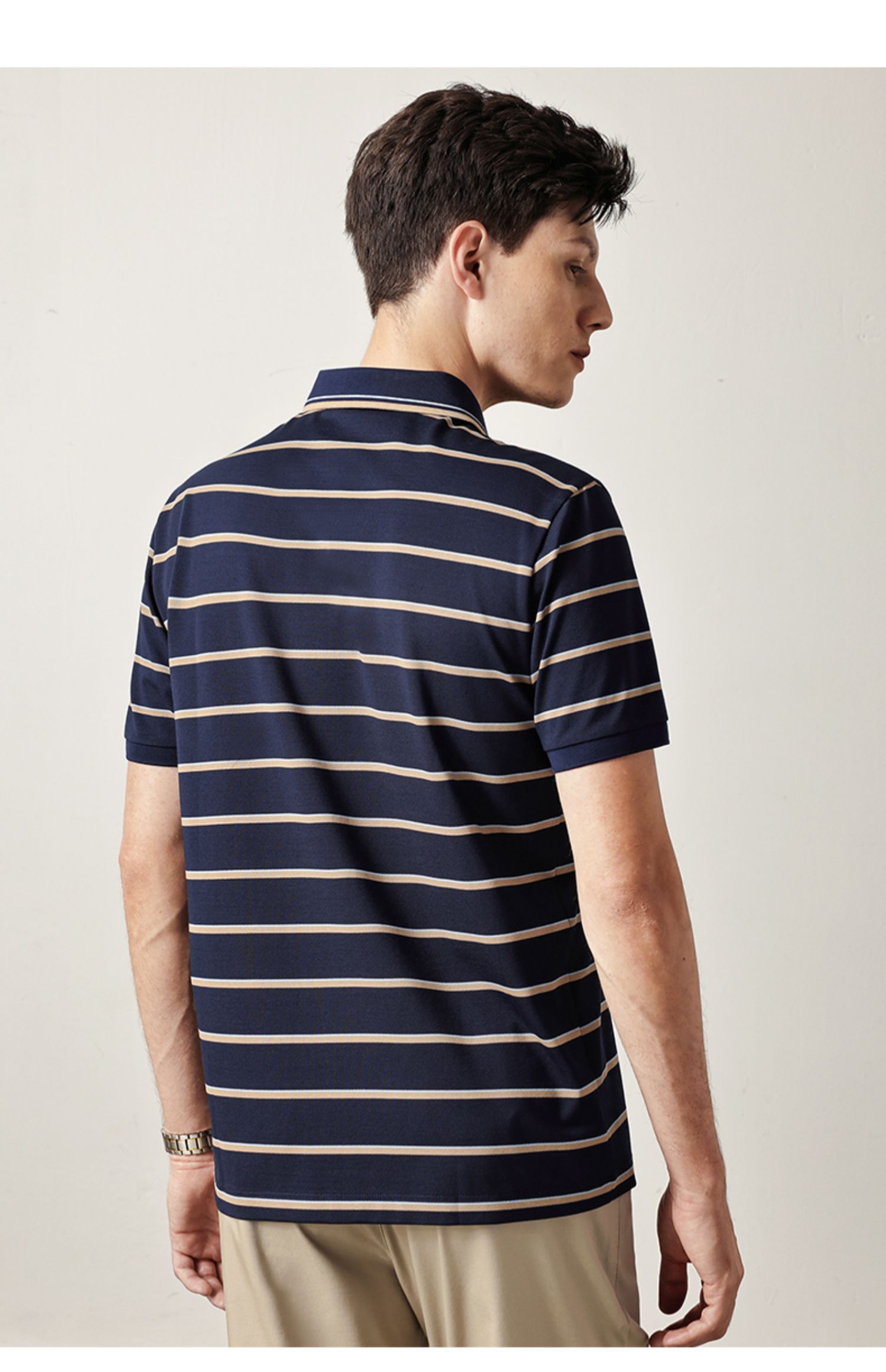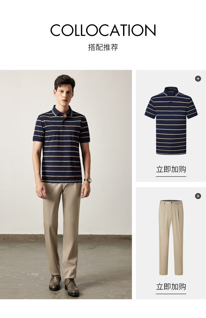 M&D/名盾POLO衫男秋季新款条纹撞色桑蚕丝真丝男装翻领T恤
