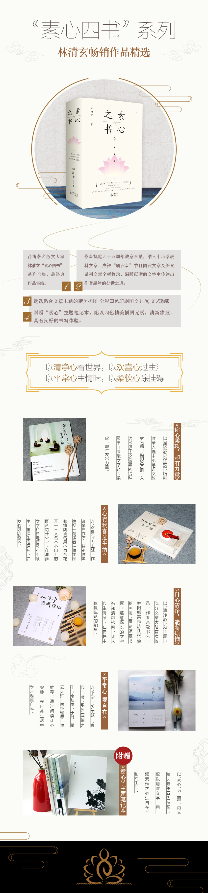 《素心四书》林清玄4册——以清净心看世界,以欢喜心过生活,以平常心生情味,以柔软心除挂碍。