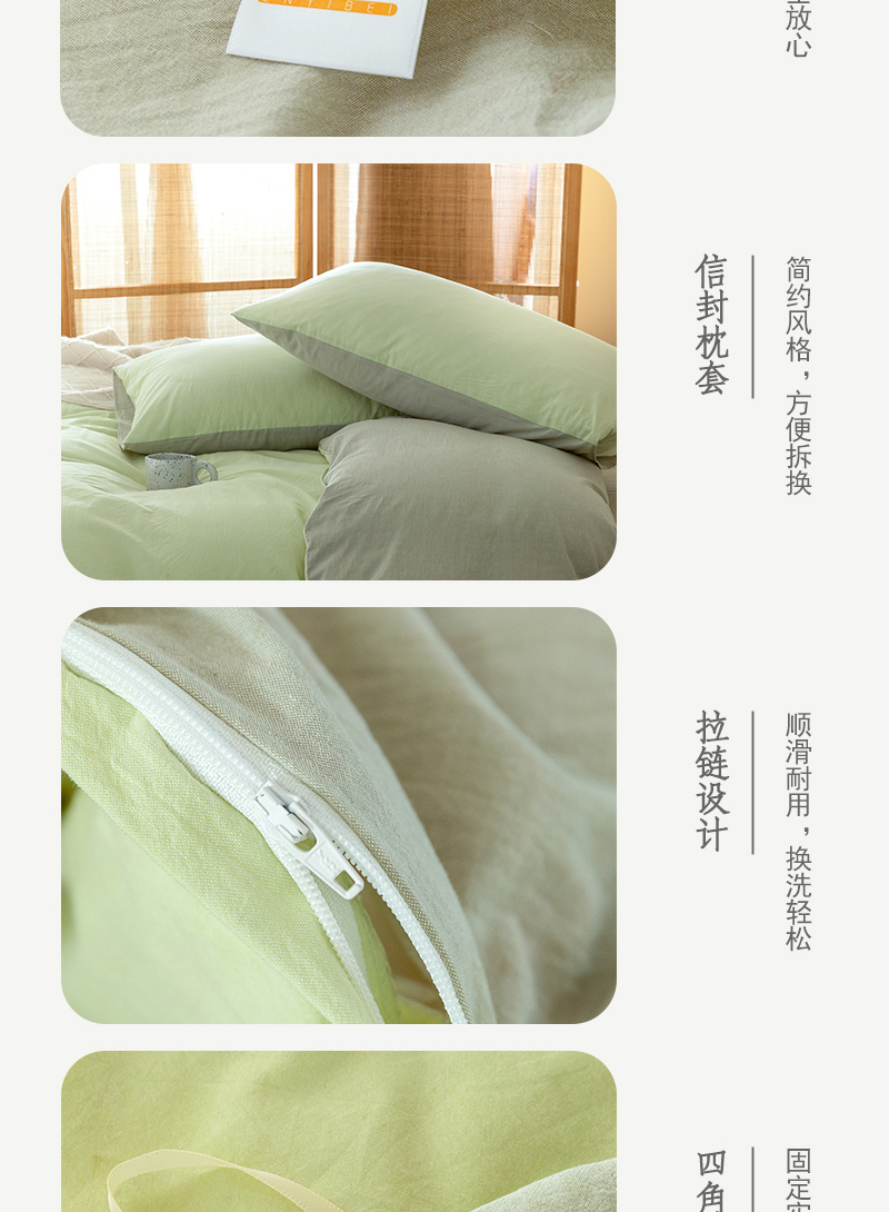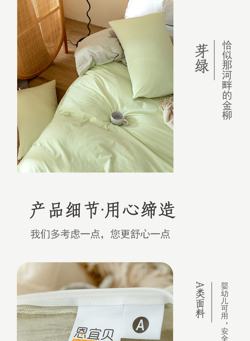 【品名】【恩宜贝】莫兰迪拼色系列水洗棉四件套