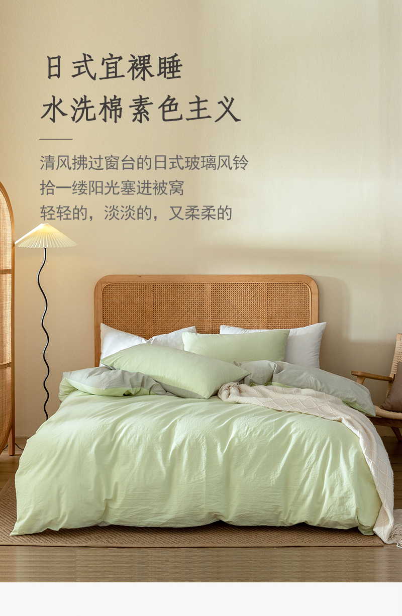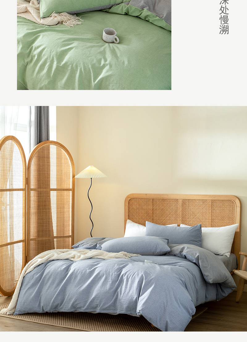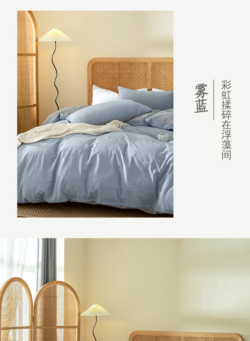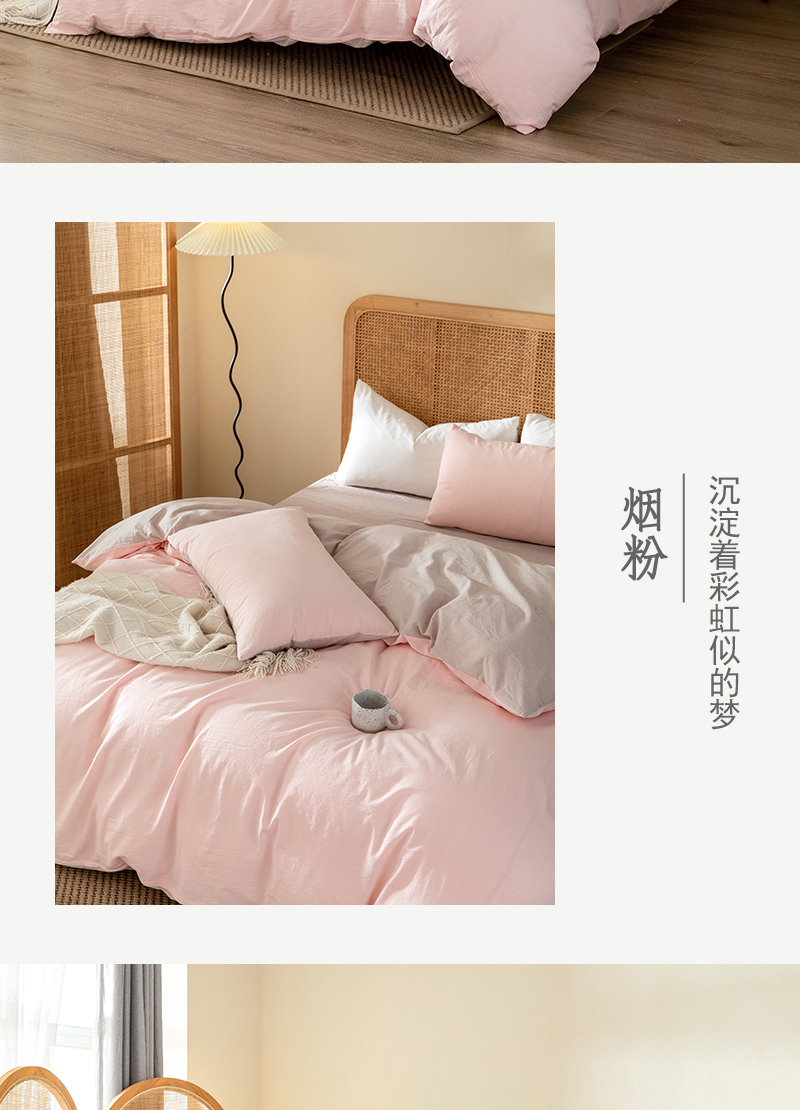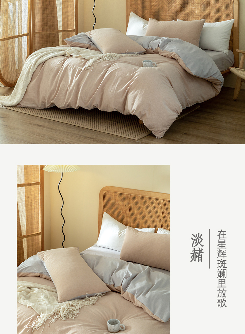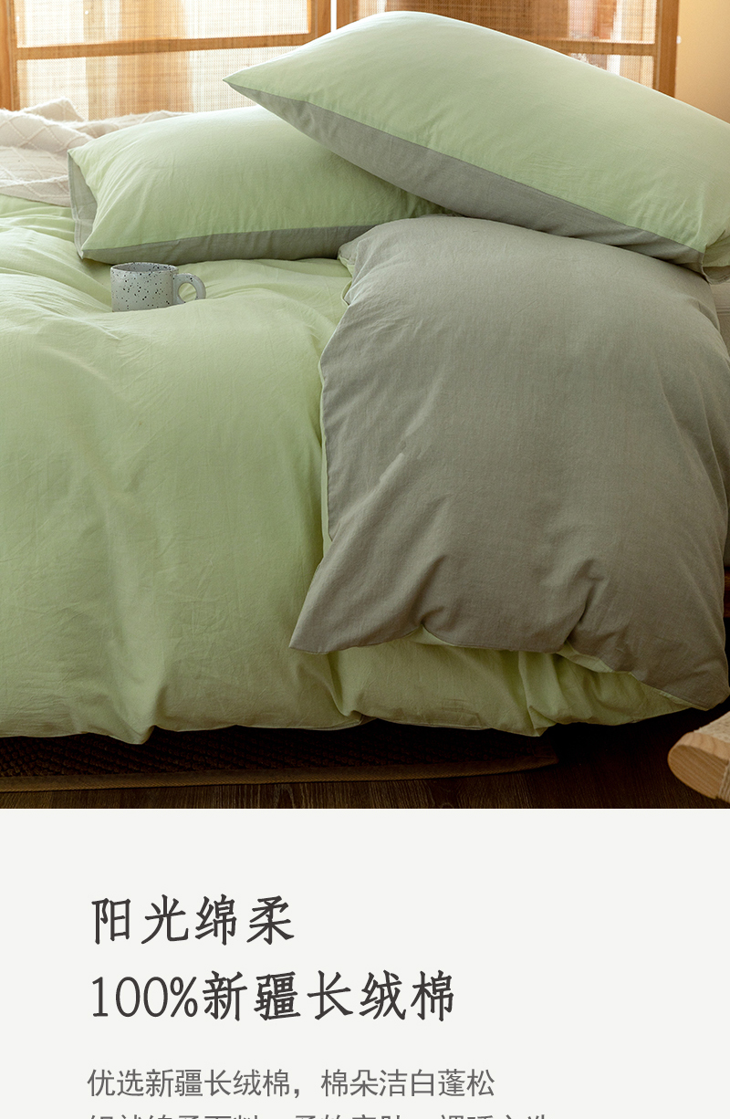 新疆长绒棉【恩宜贝】水洗棉四件套 莫兰迪拼色系列 睡在云端的舒适