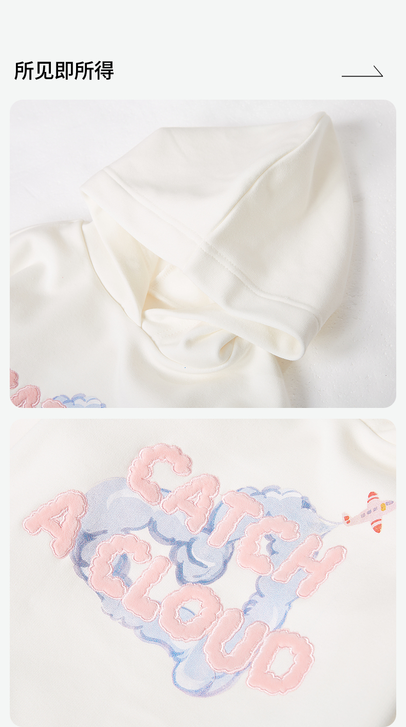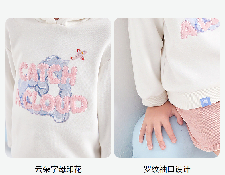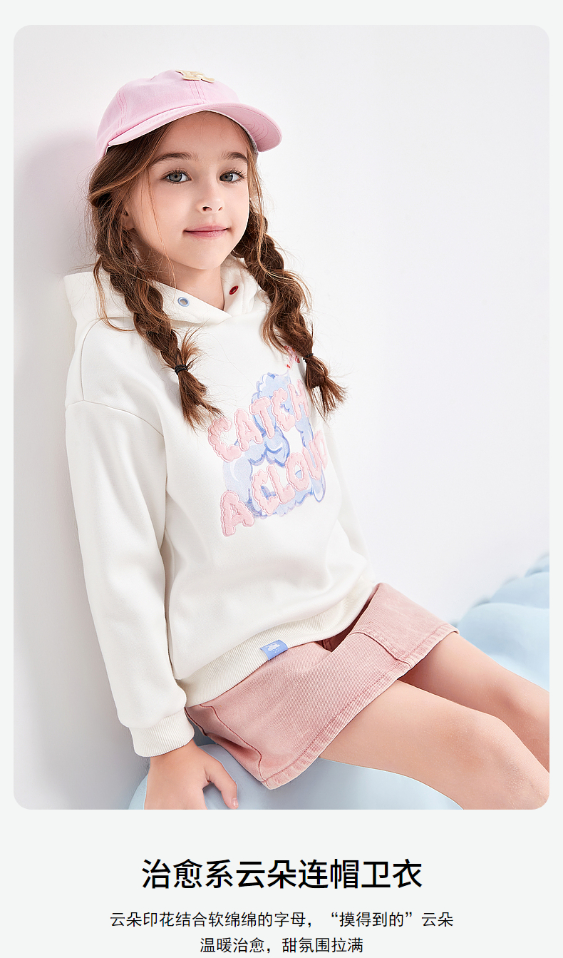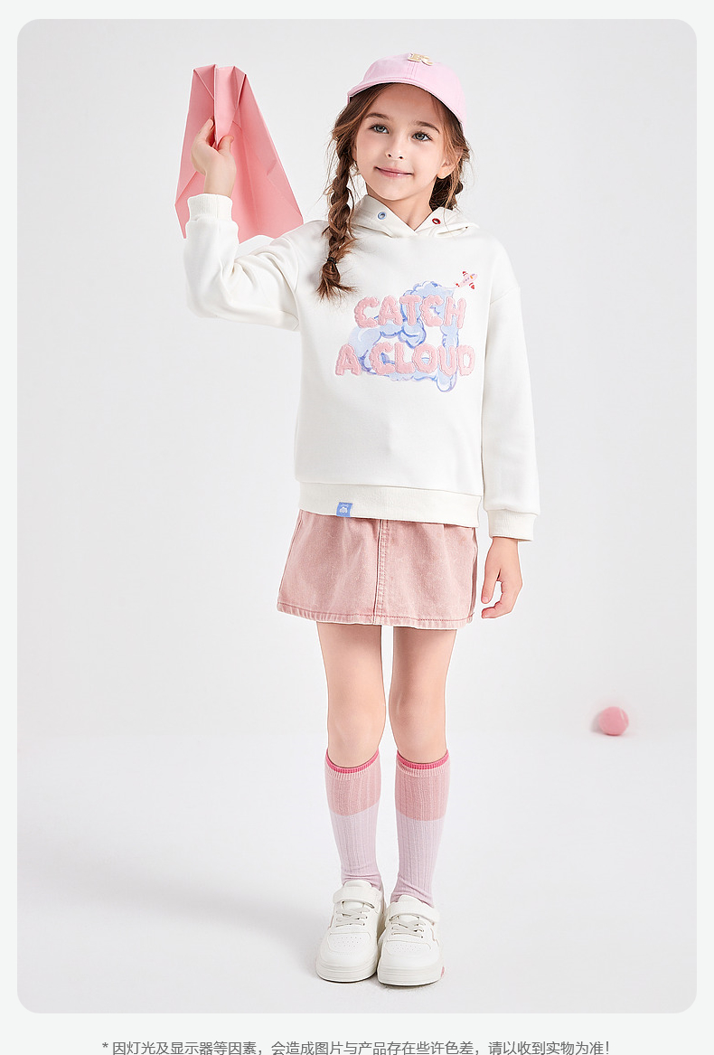 笛莎Deesha 童装女童卫衣2023冬季新款治愈系云朵连帽卫衣