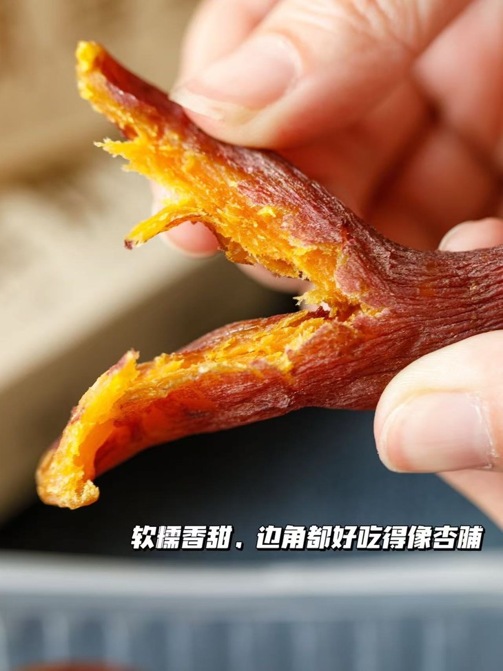 做出的地瓜干,口感也绝,软糯 Q 弹,嚼劲十足,不干不腻,像杏脯一样糯叽叽。