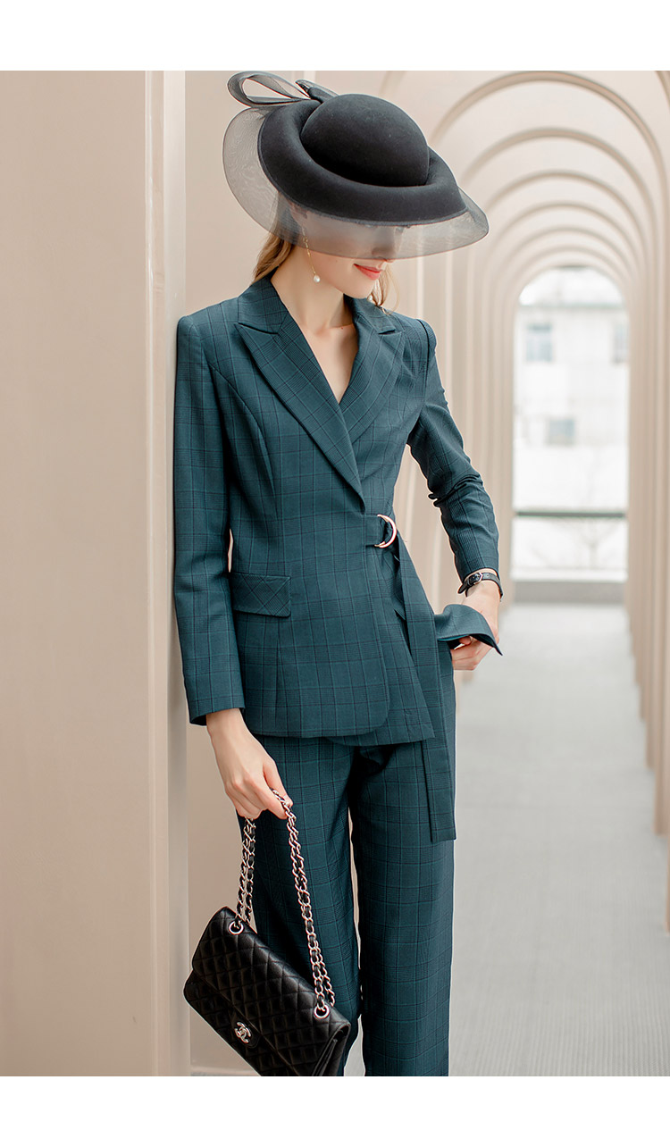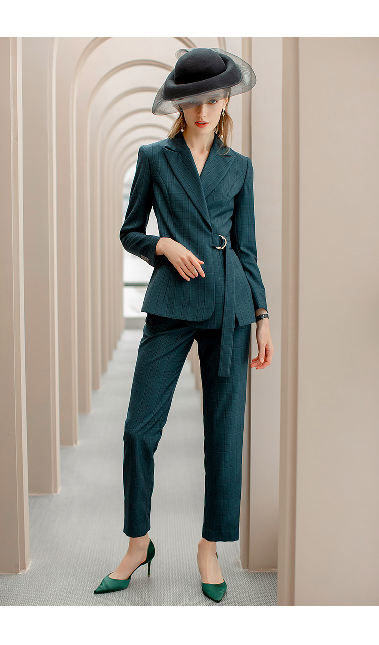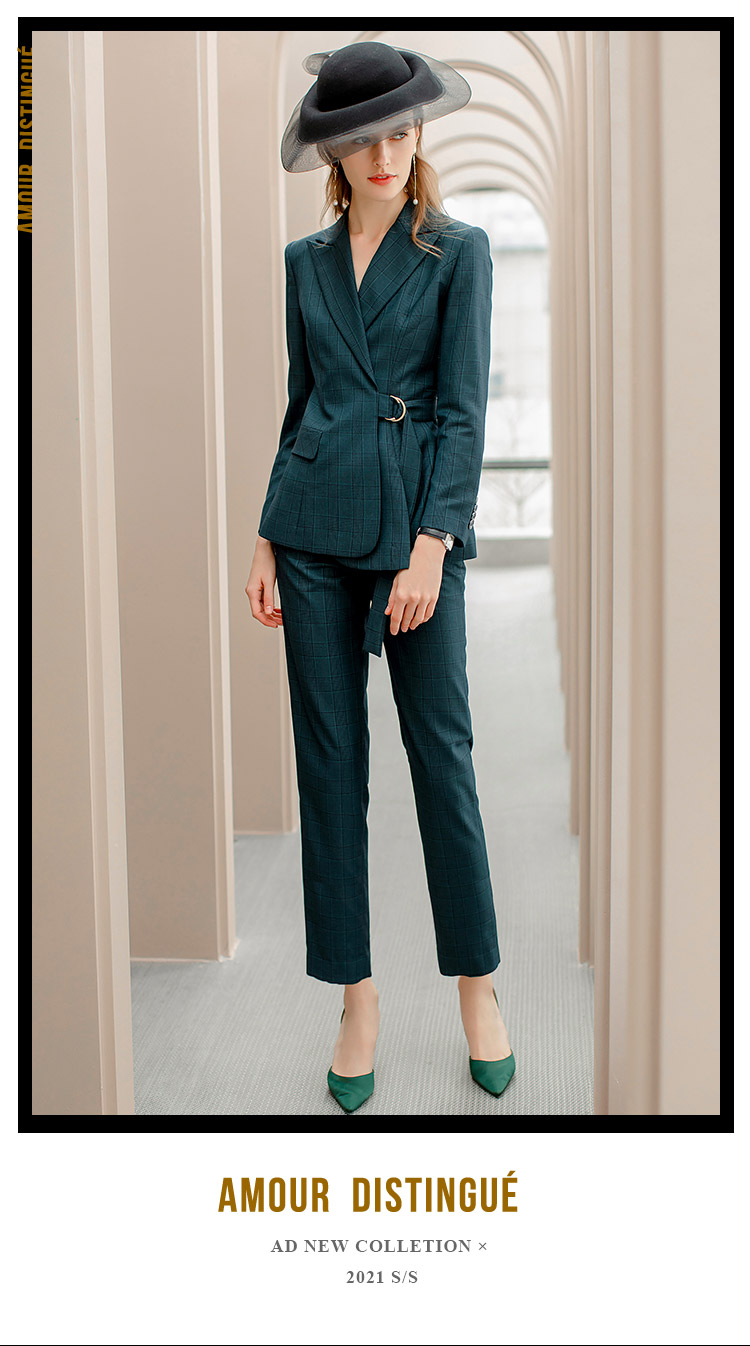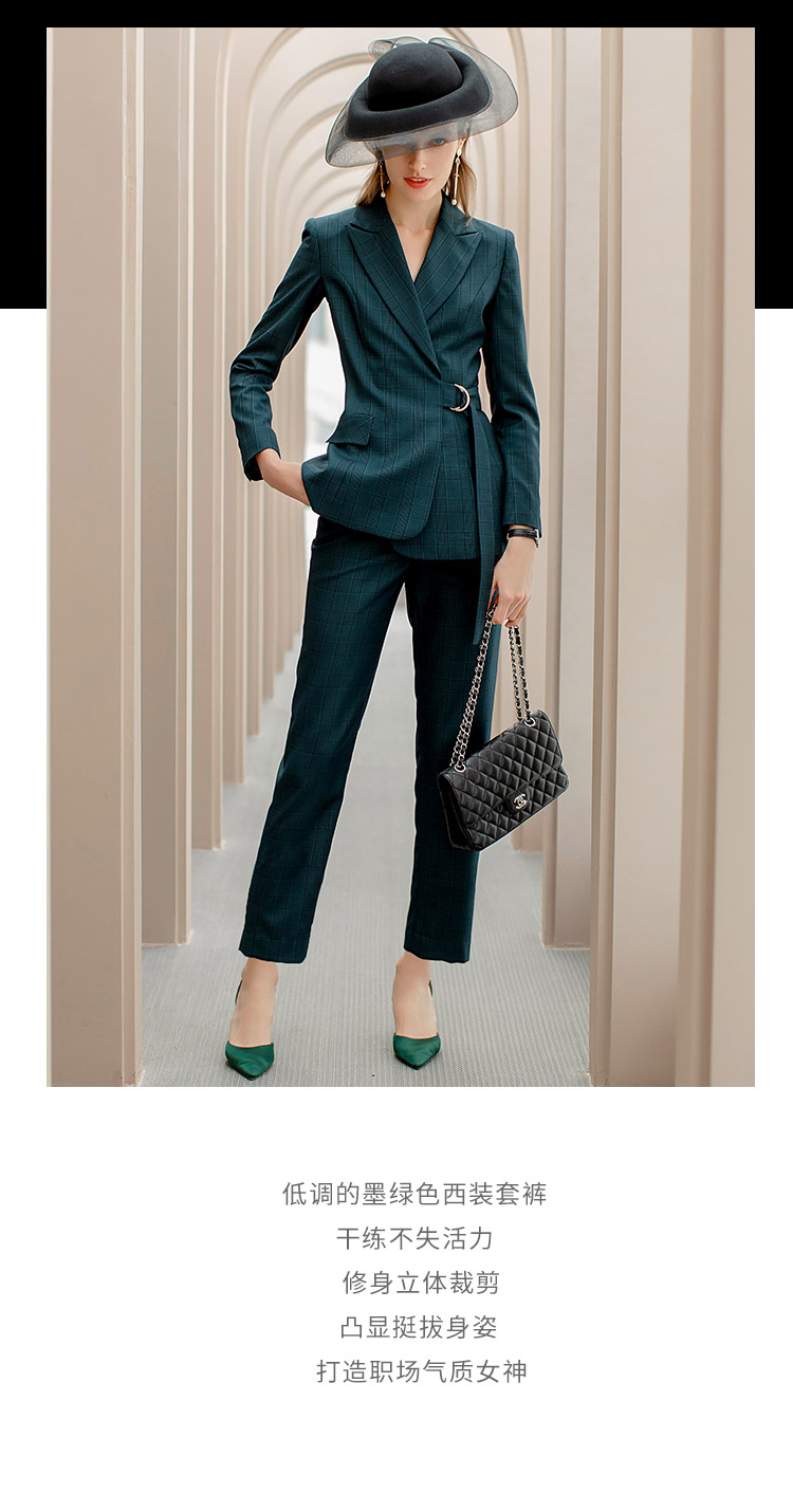 IWY/墨绿色格纹西装系带西服套装女修身显瘦收腰时尚气质女神商务正装CP1091