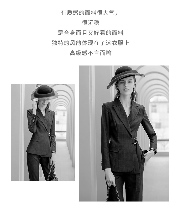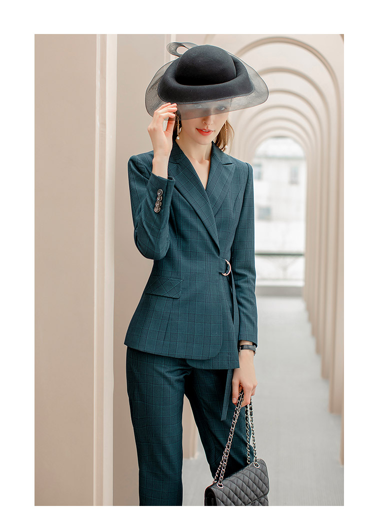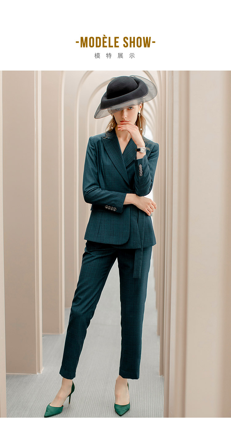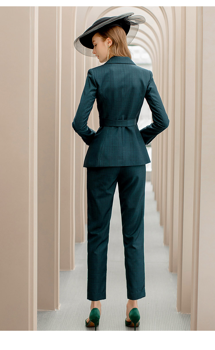 IWY/墨绿色格纹西装系带西服套装女修身显瘦收腰时尚气质女神商务正装CP1091