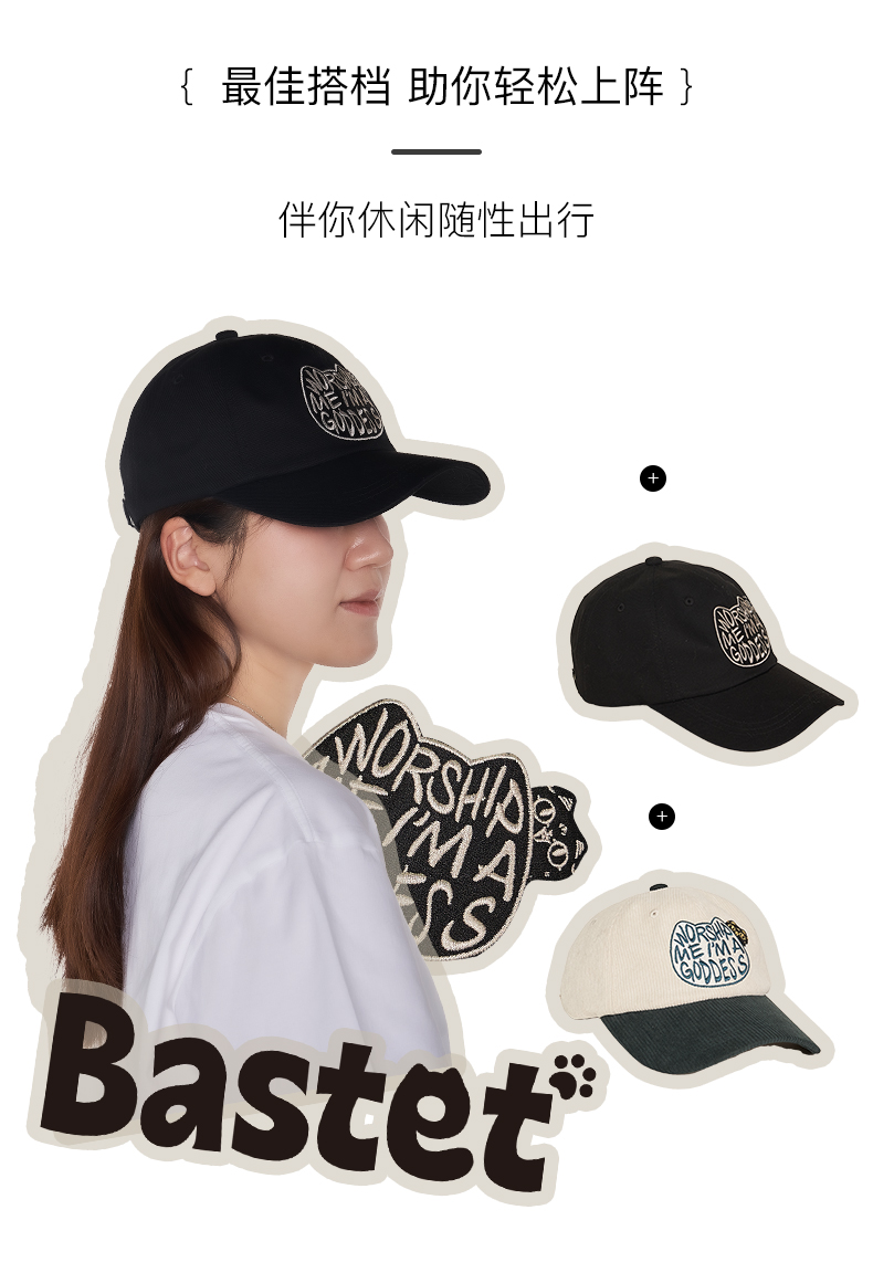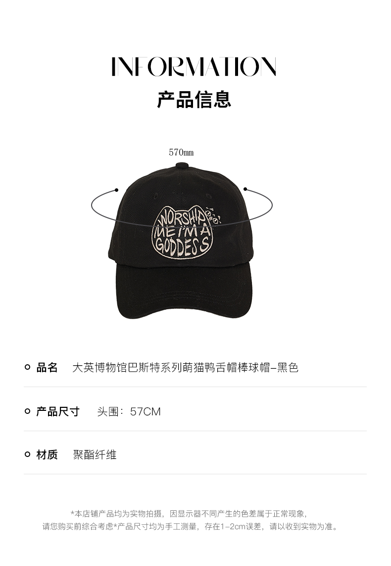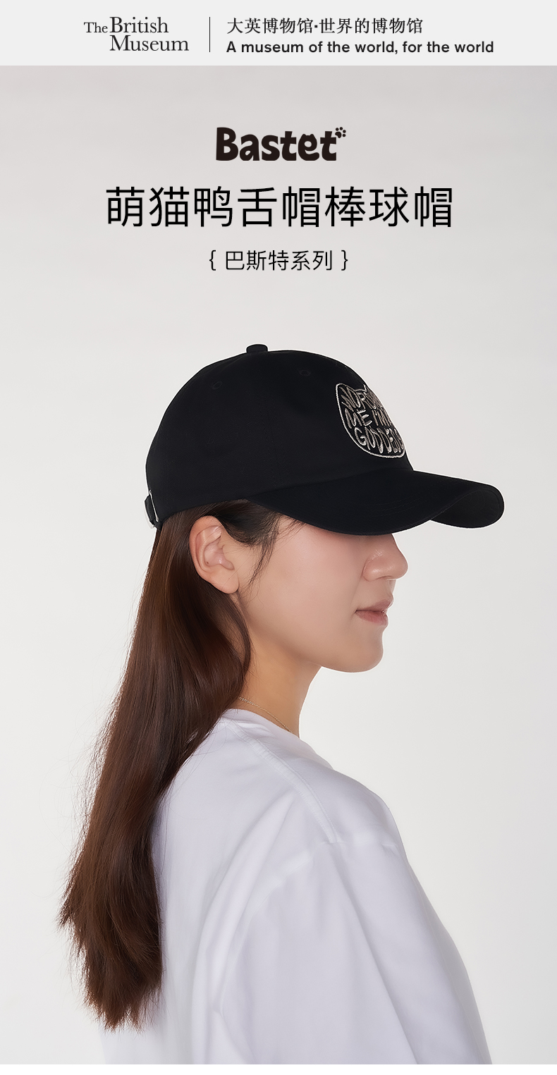 大英博物馆 巴斯特系列 萌猫鸭舌帽棒球帽 黑色