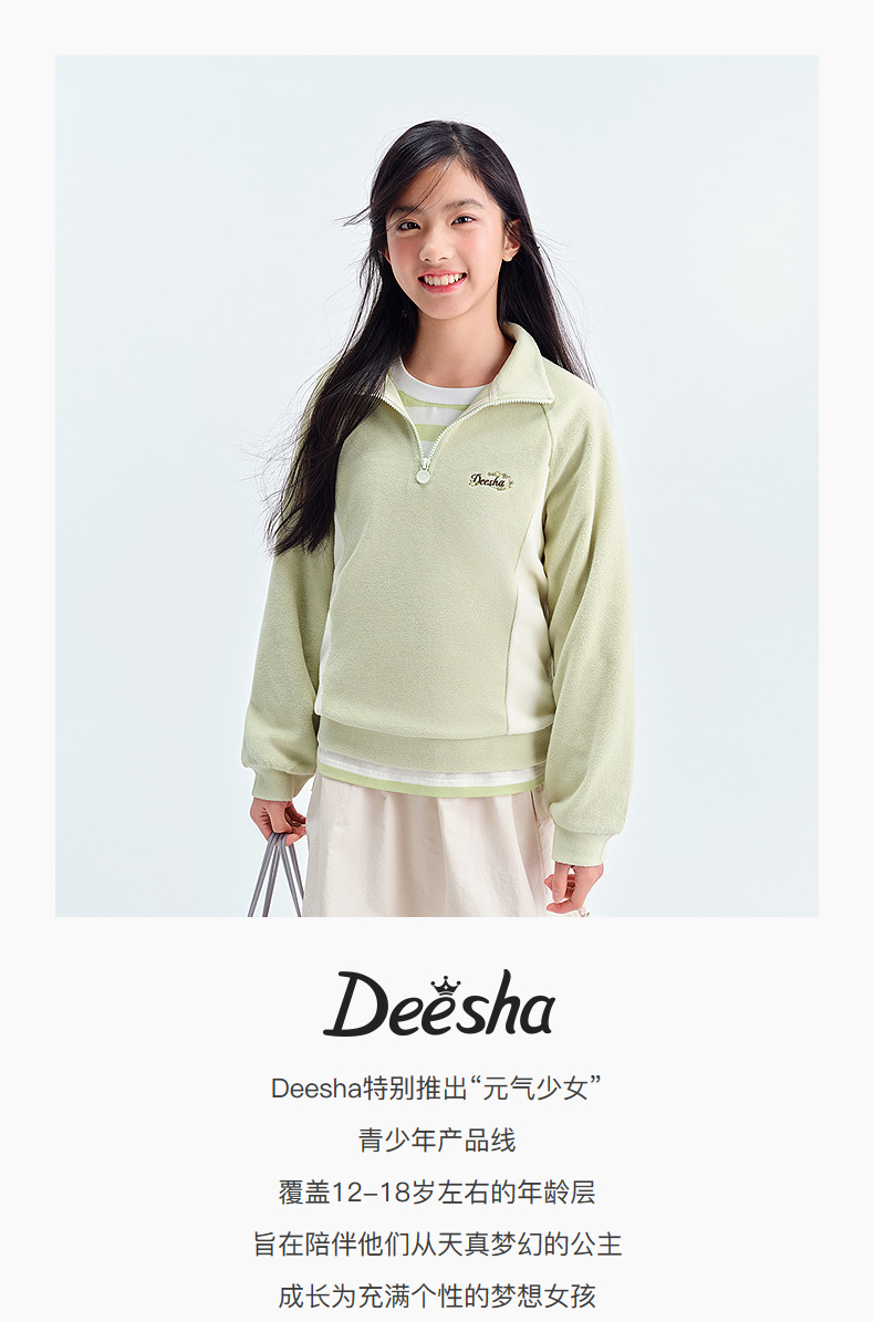 笛莎Deesha青少年女童卫衣2025春季女童单面摇粒绒卫衣