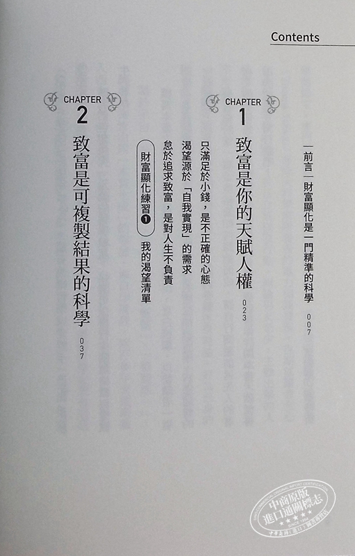 為幫助讀者實踐致富法則,編輯部新增【財富顯化練習】單元,例如:我的渴望清單、「未來空間設計藍圖」練習、「睡前感恩」練習、「理想工作心智圖像」練習、「一週雜訊排毒」練習⋯⋯藉由這些練習,與至高無上的力量連結,形塑豐盛富足的人生。