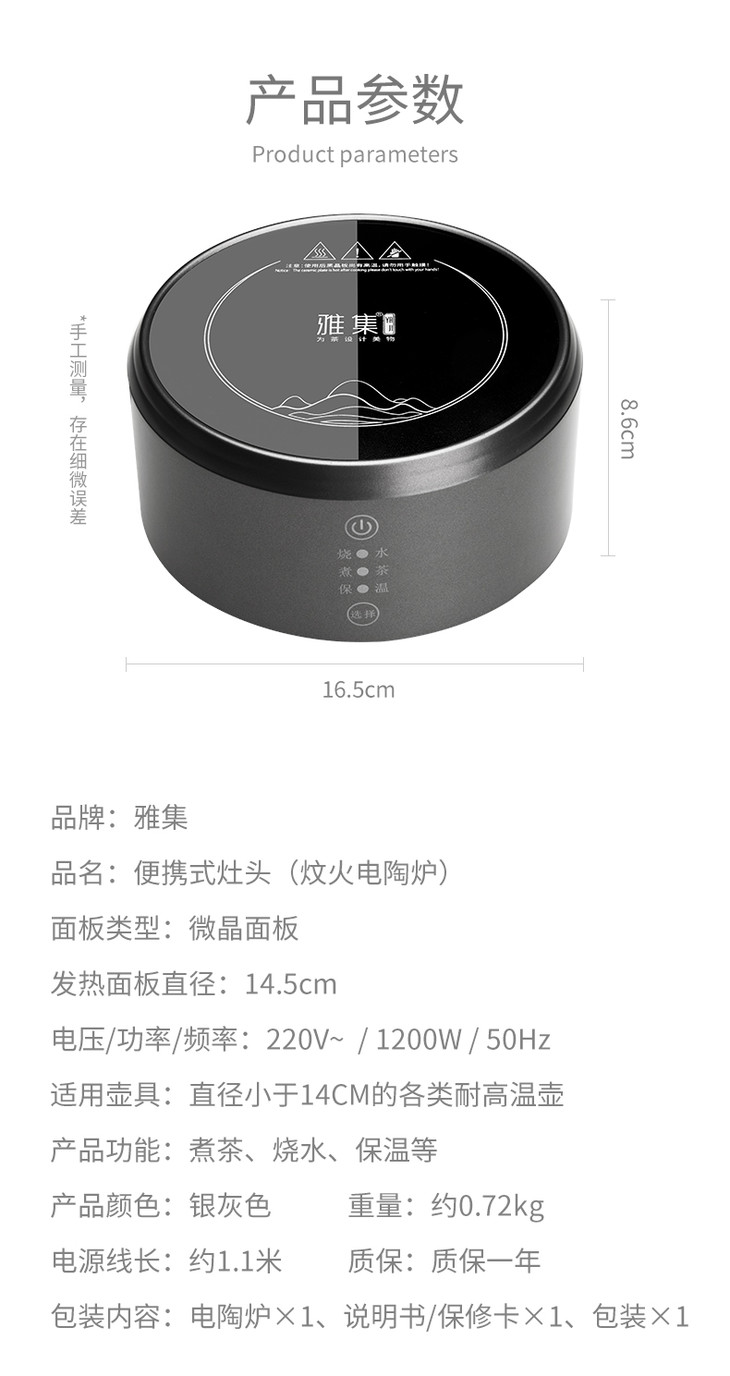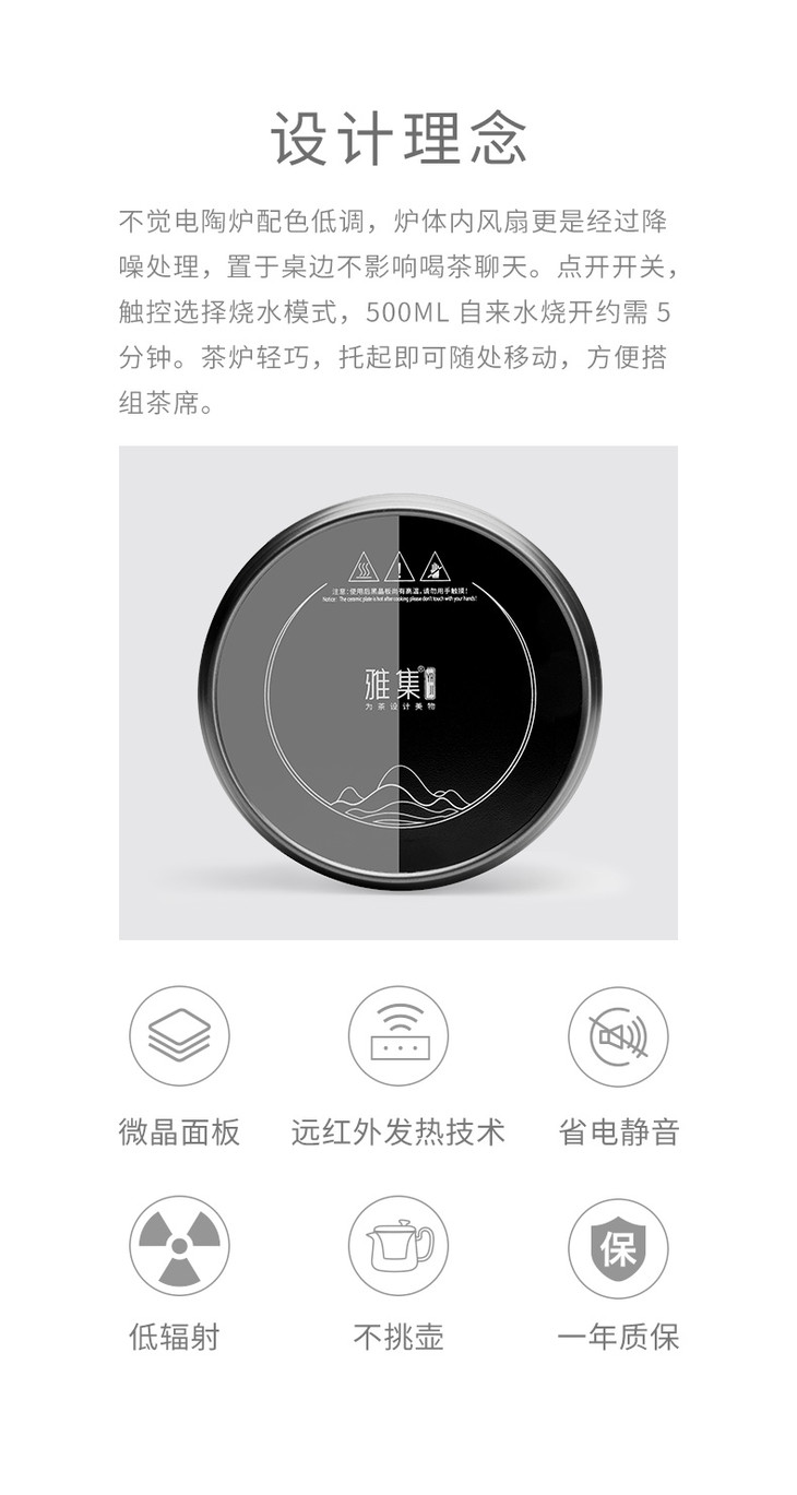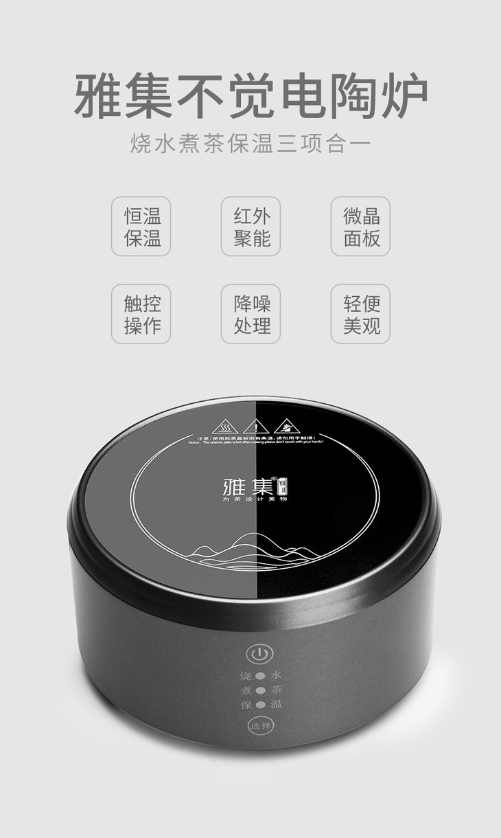 雅集 不觉电陶炉家用煮茶器茶炉烧水壶炉小型白茶普洱茶泡茶炉