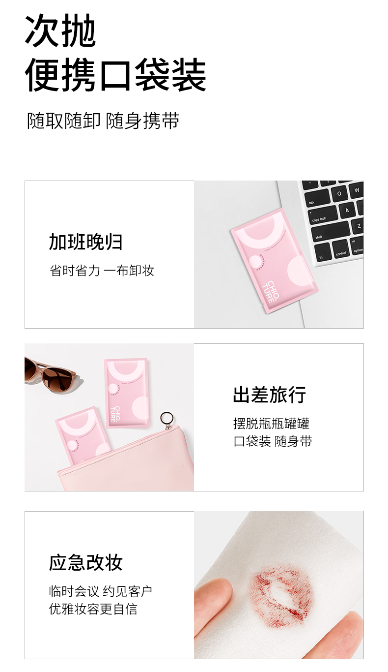 【新品】稚优泉卸妆湿巾纸单片装眼唇脸卸妆巾一次性便携卸妆水油棉