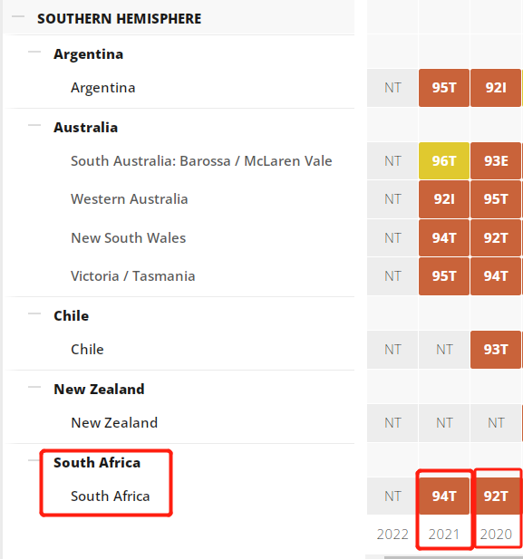 2020、2021 年是南非非常好的年份,获得帕克官网 92、94 分好评。