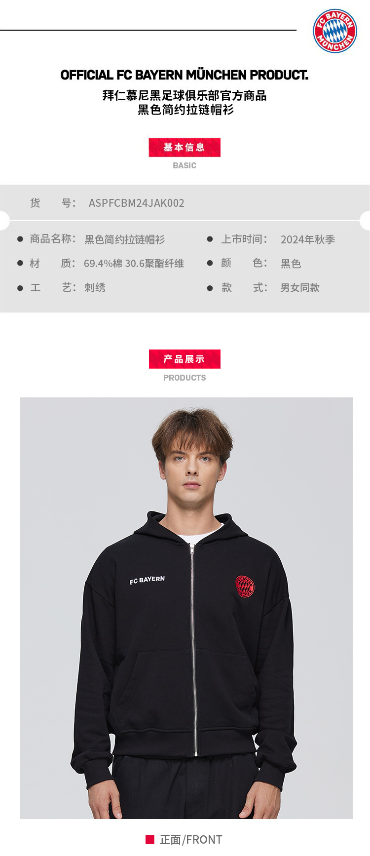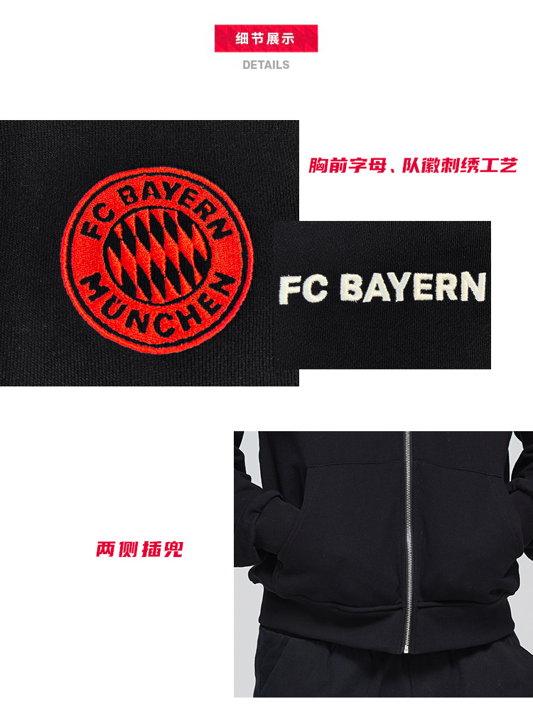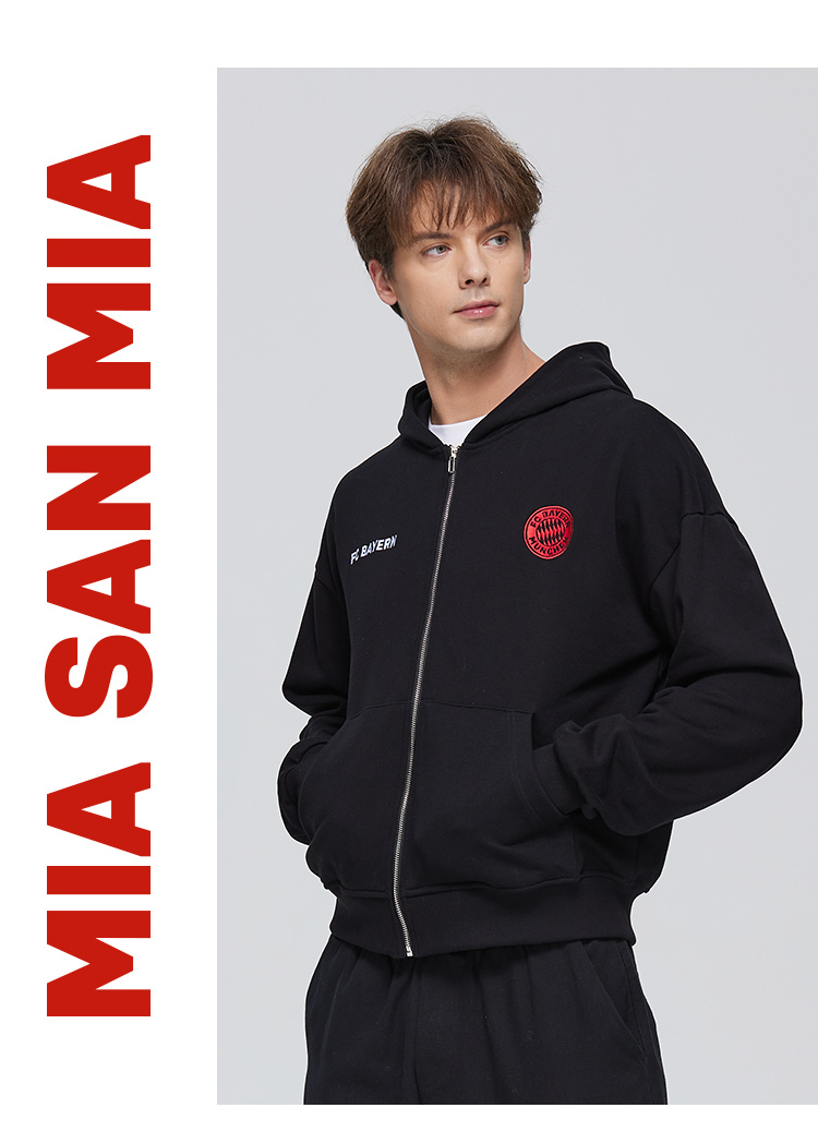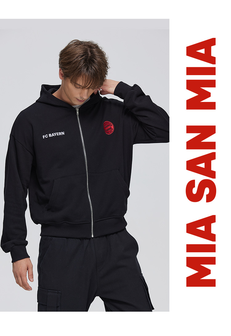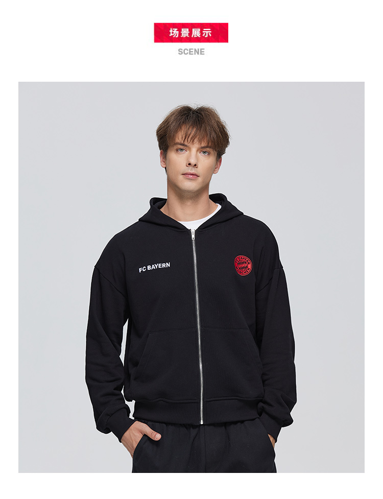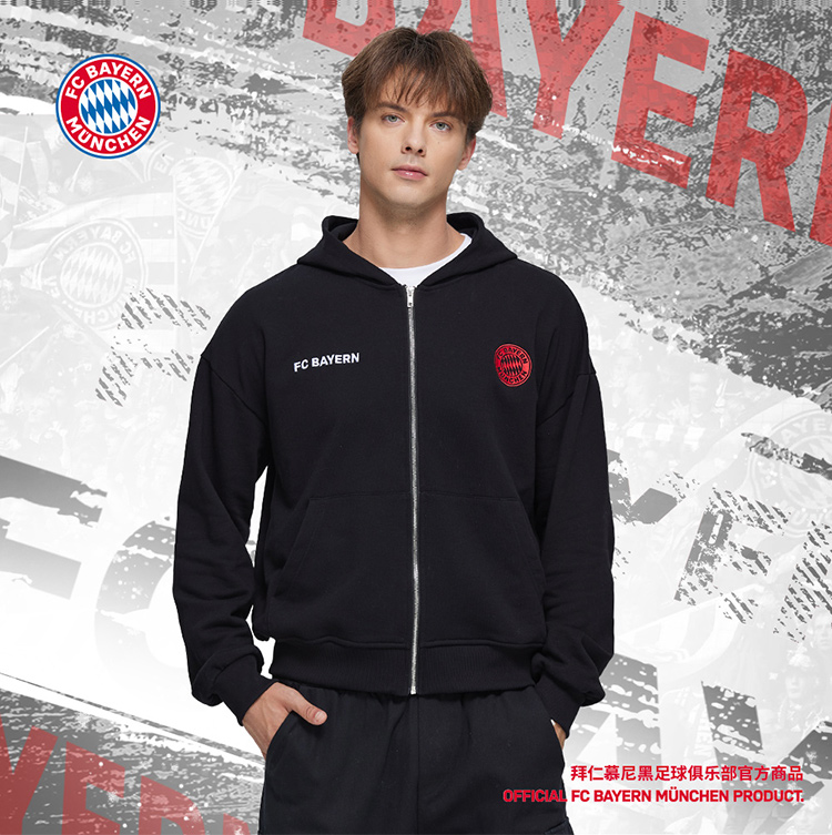 【官方正版】拜仁慕尼黑足球俱乐部|秋冬球迷黑色简约拉链帽衫
