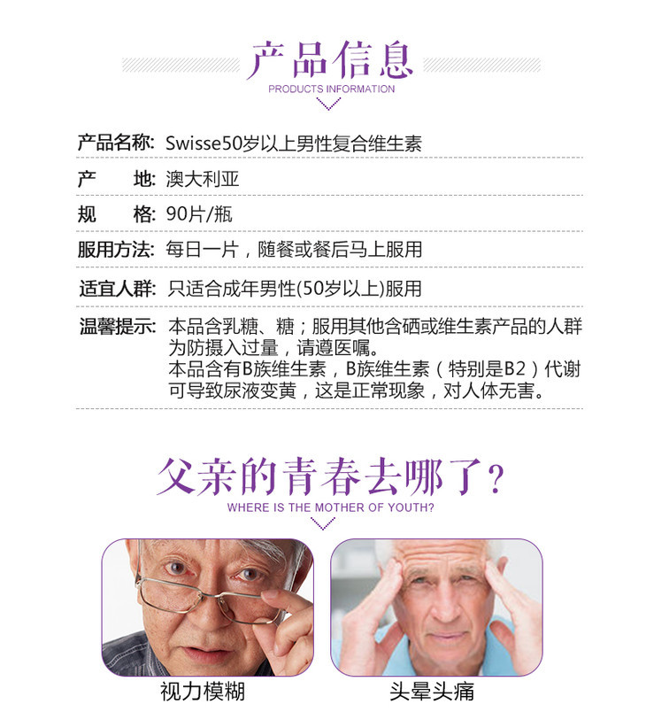 【现货】Swisse中老年男士50岁以上专用复合维生素90粒