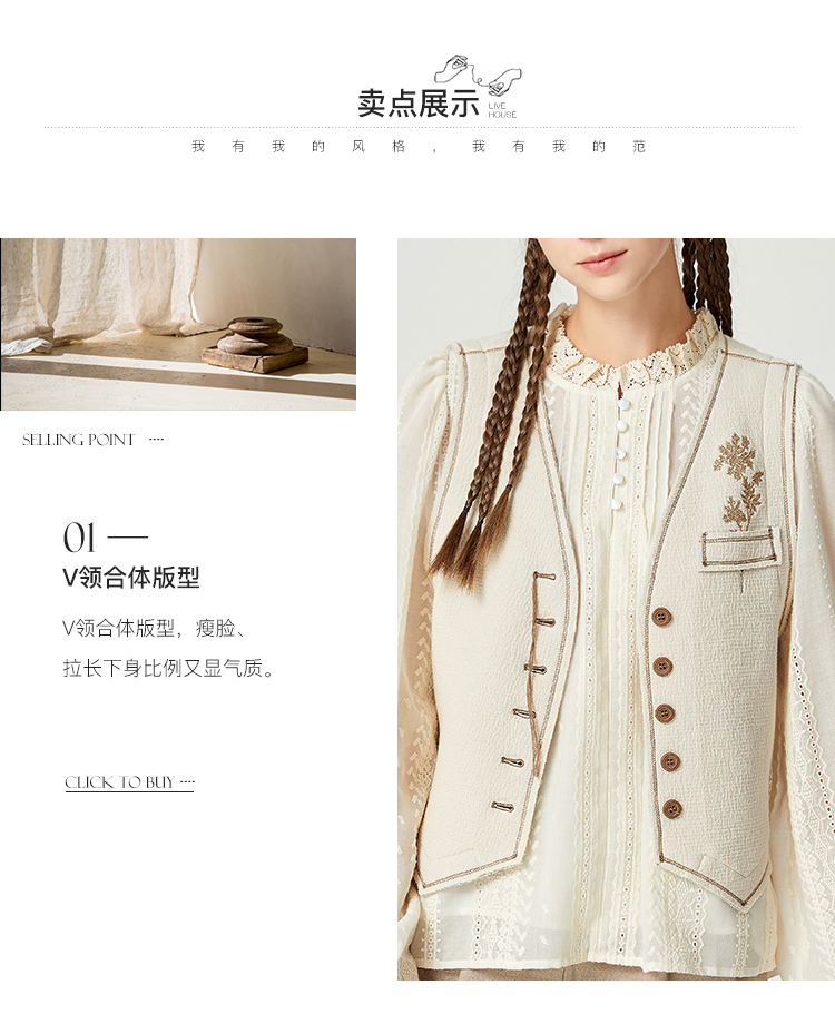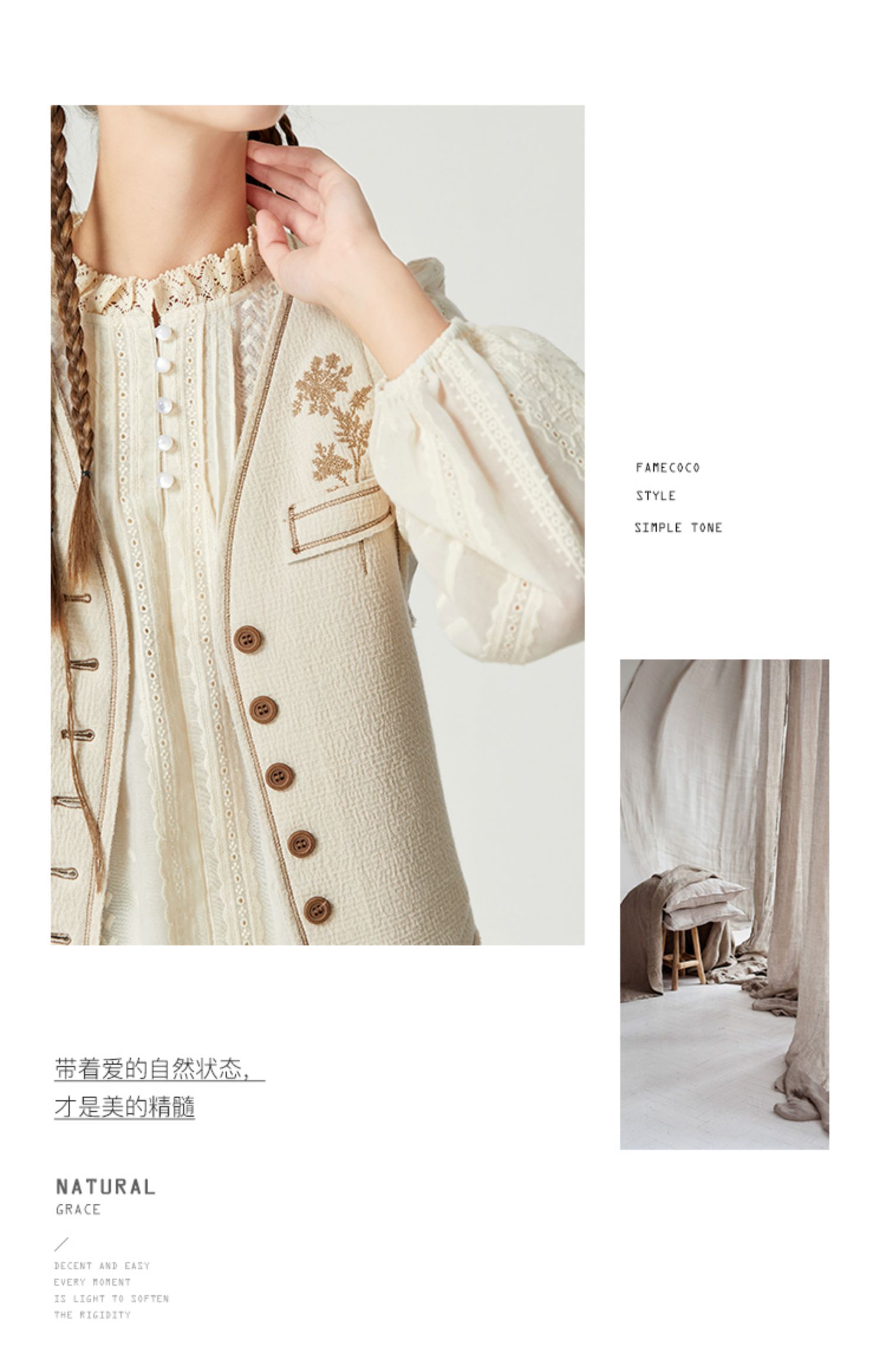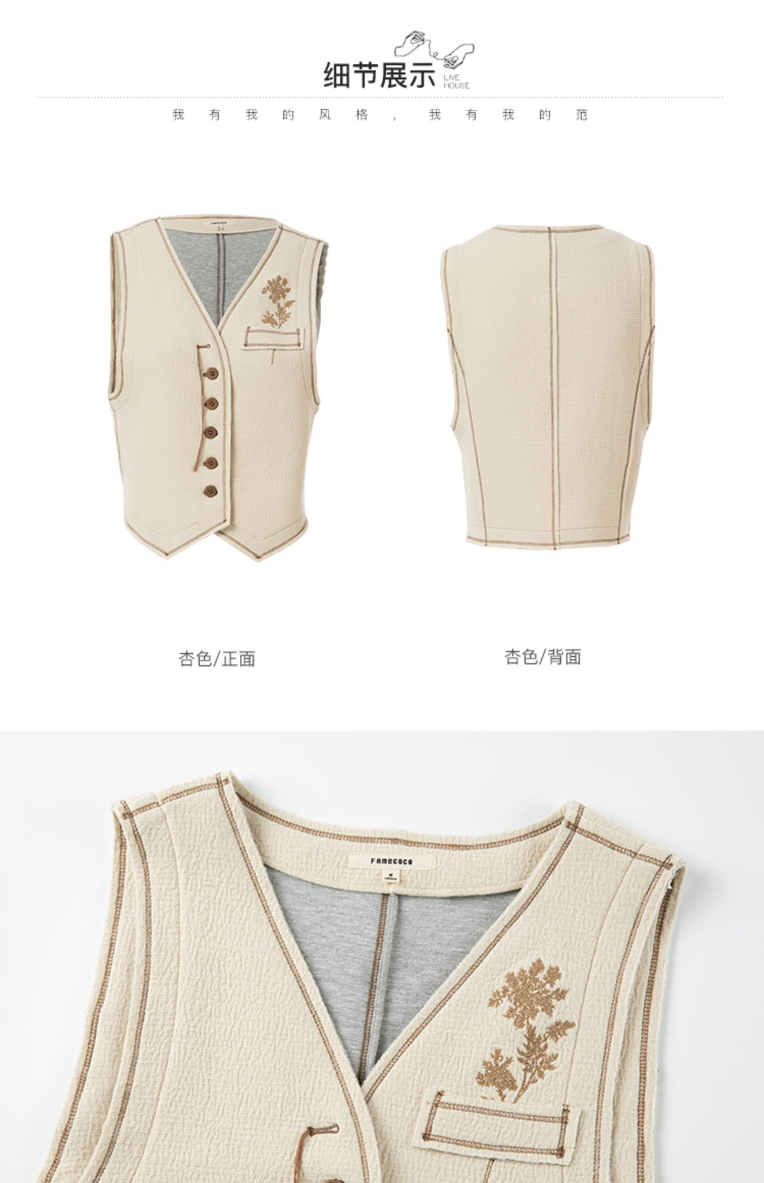 famecoco范可儿重工刺绣无袖马甲女款秋季新品复古风坎肩上衣F225CA029