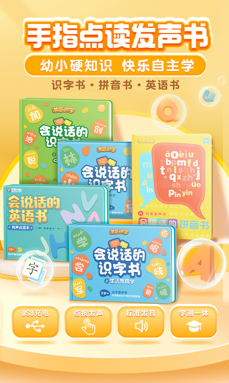 会说话的有声书 识字书·拼音书·英语书 涵盖5000+汉语知识 手指点读 适合3岁+孩子