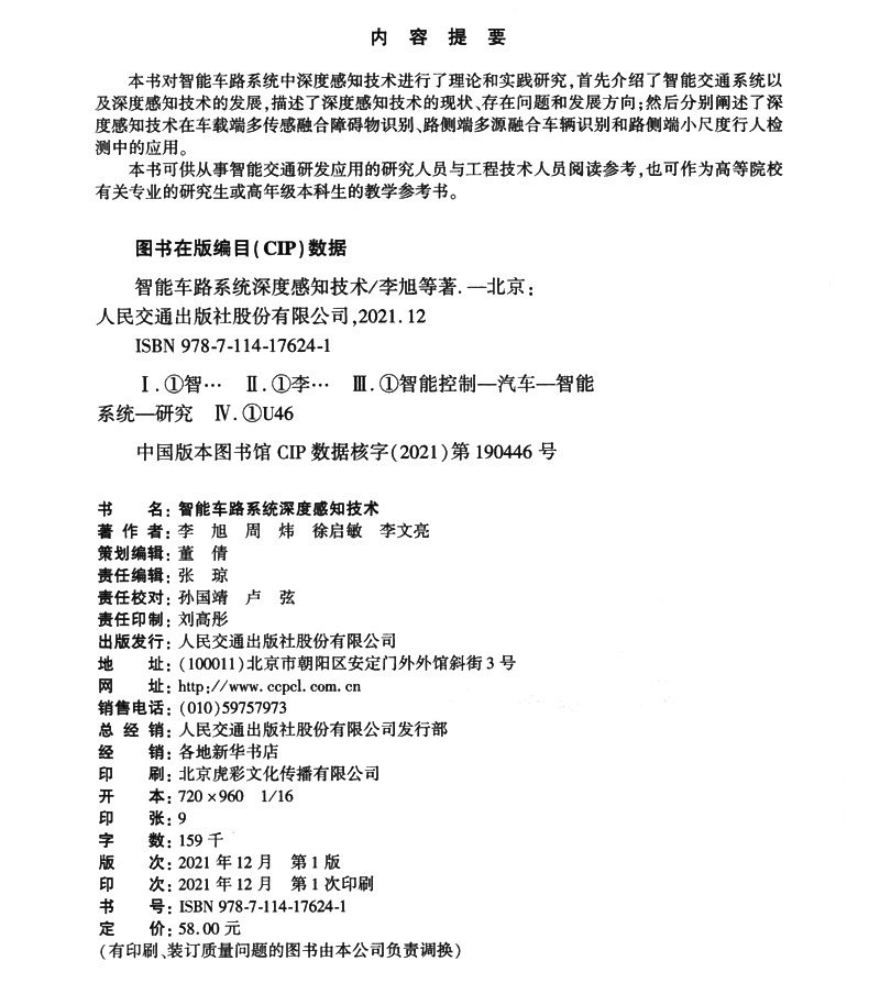 书名:智能车路系统深度感知技术