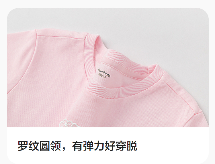【balaOne】巴拉巴拉童装短袖t恤女童2026新款夏儿童简约精致上衣