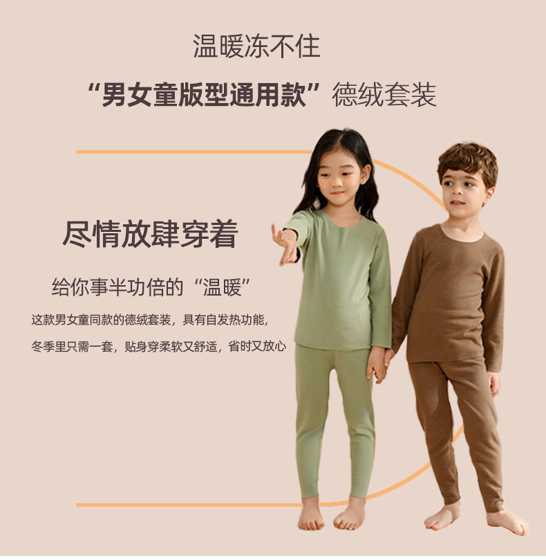 【德国拜耳德绒】儿童发热无痕保暖内衣 羊绒蛋白+玻尿酸+抗菌滋养润肤无骨秋衣秋裤