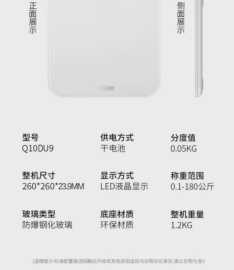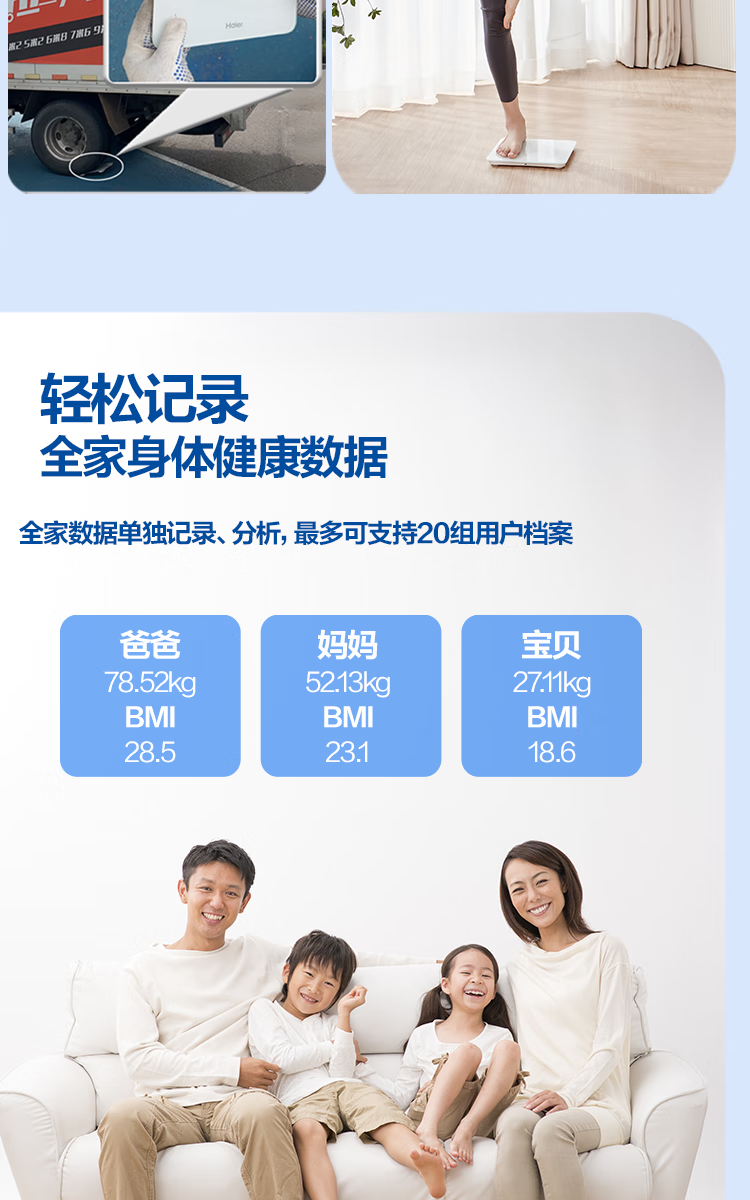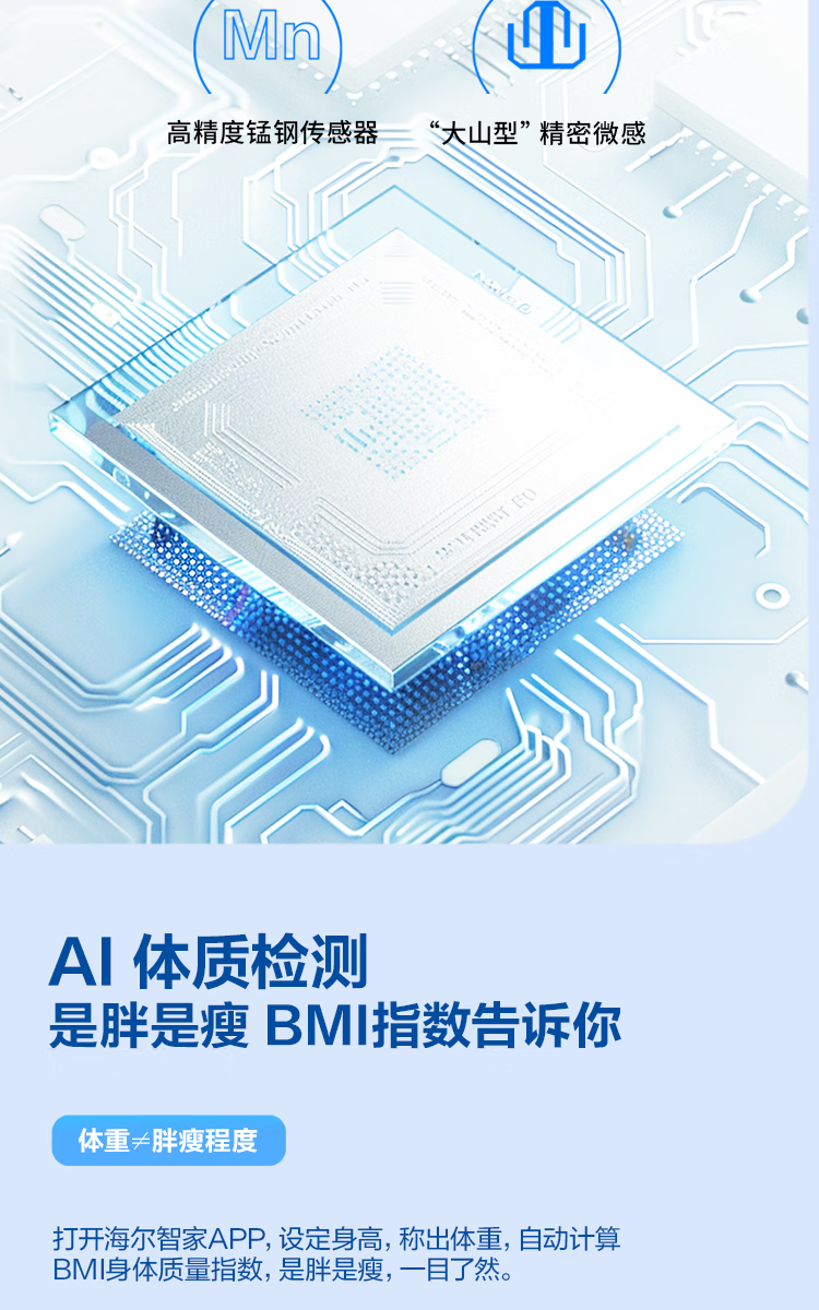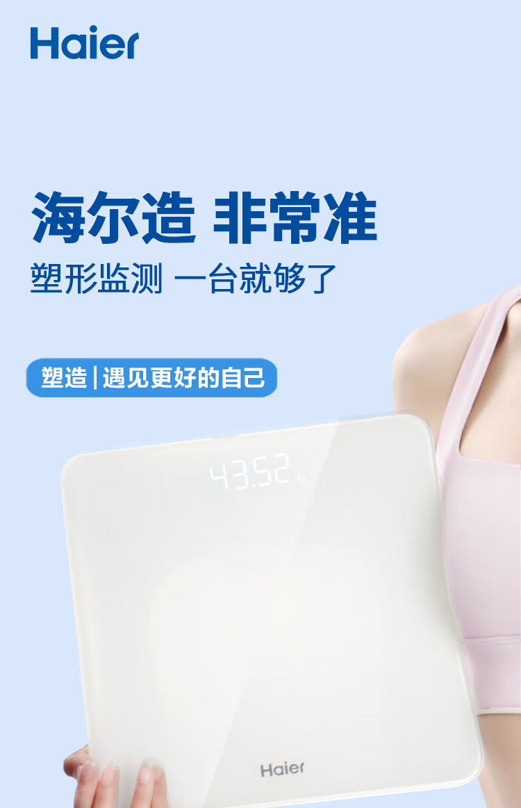 海尔电子秤体重秤 高精度人体称重BMI分析蓝牙APP 家用智能秤运动健身减肥称重专用Q10DU9
