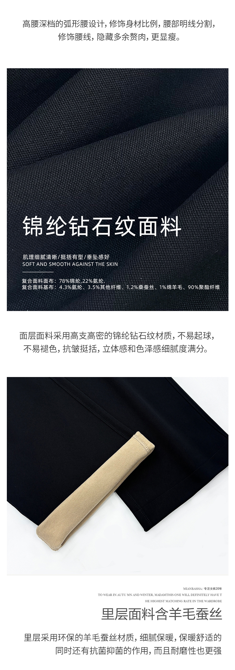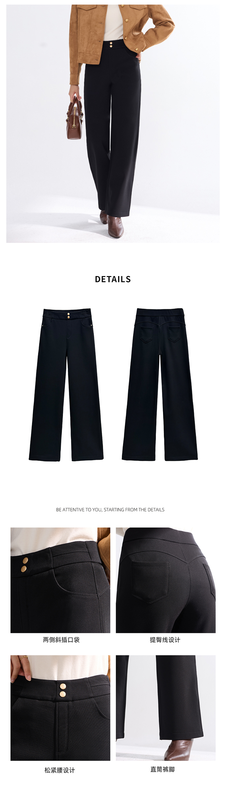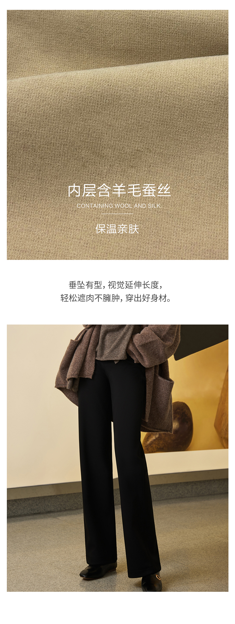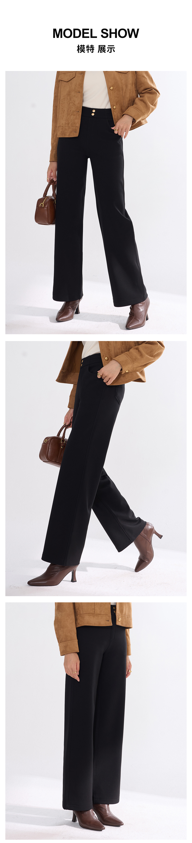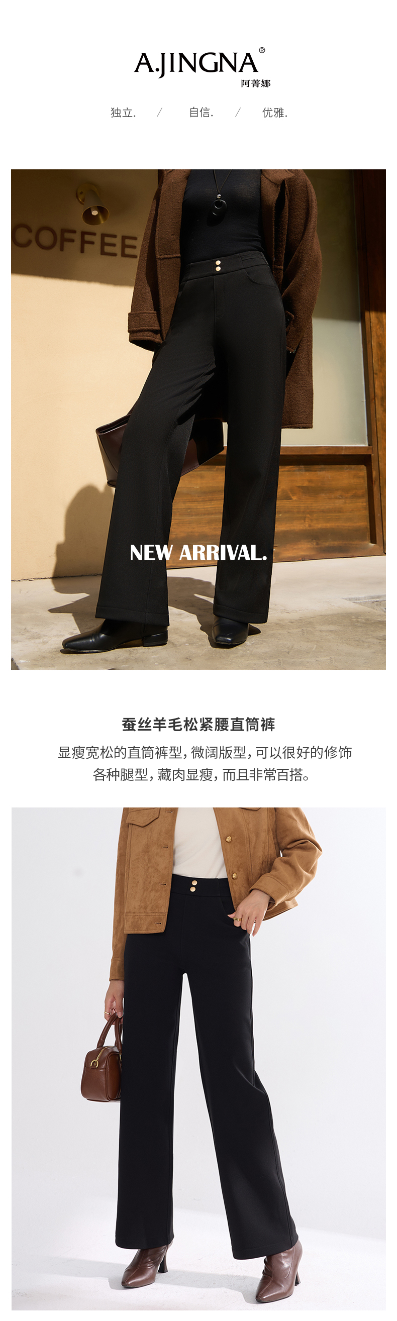 【藏肉显瘦】阿菁娜蚕丝羊毛松紧腰直筒裤F30D210028