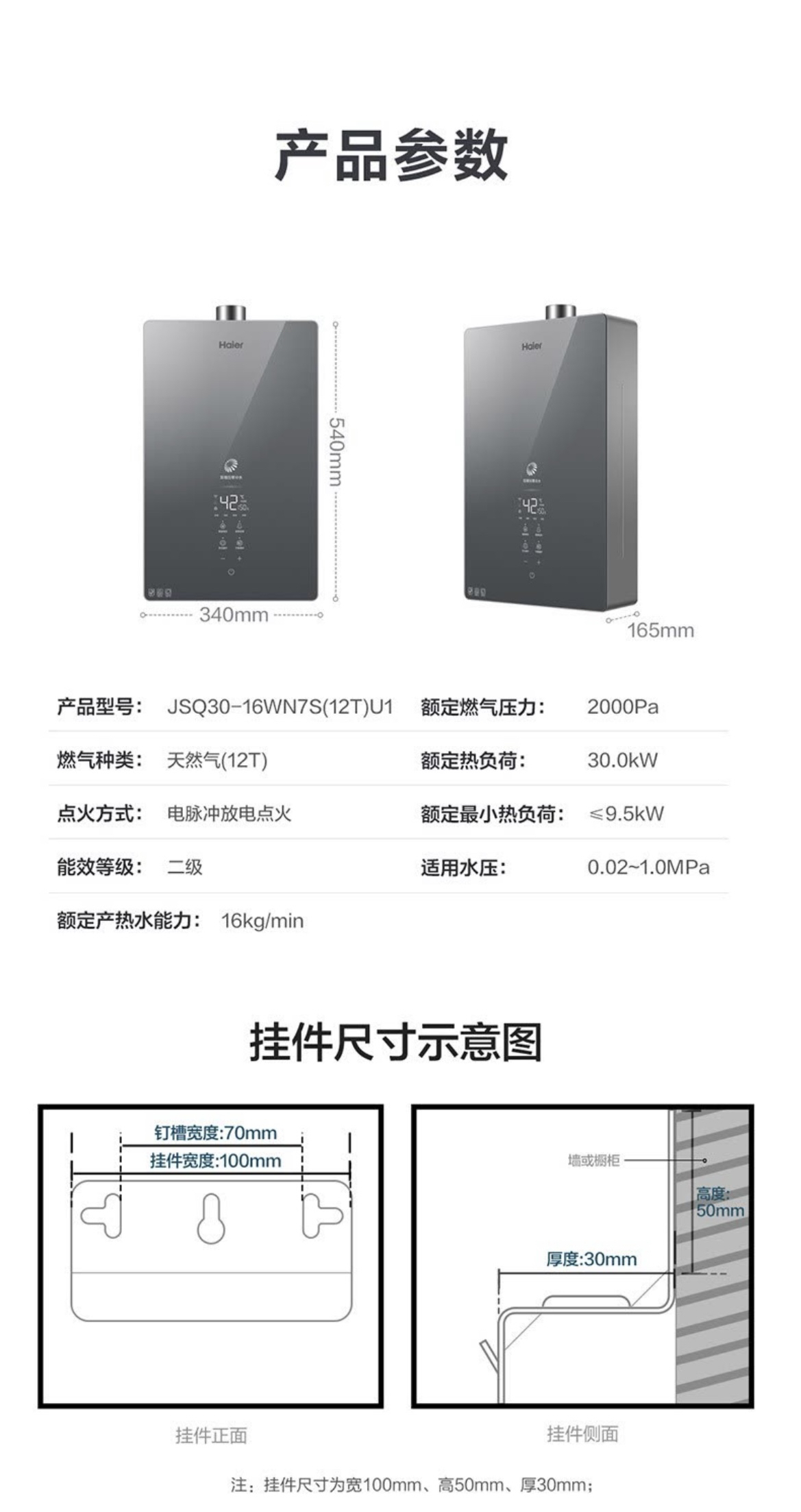海尔(Haier)热水器JSQ30-16WN7S(12T)U1