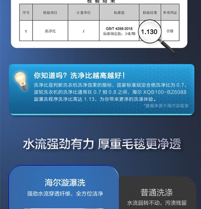 海尔(Haier)10KG波轮洗衣机全自动家用大容量直驱变频一级能效桶自洁智洗+旋暴洗1.13+除螨洗6088
