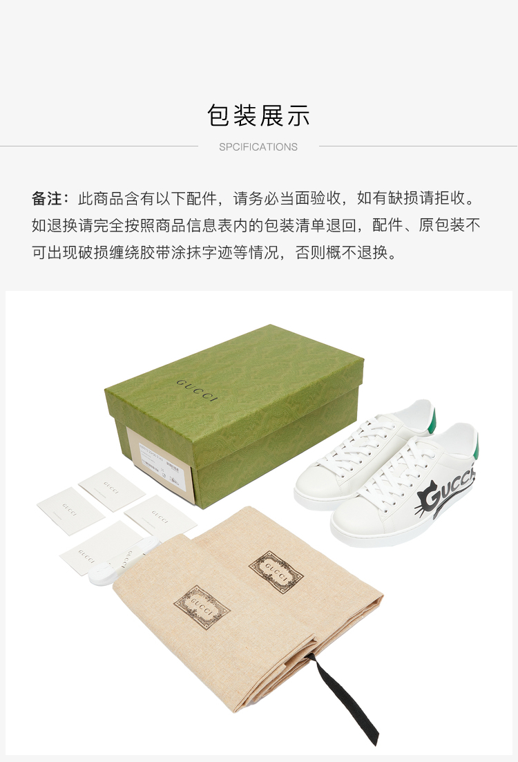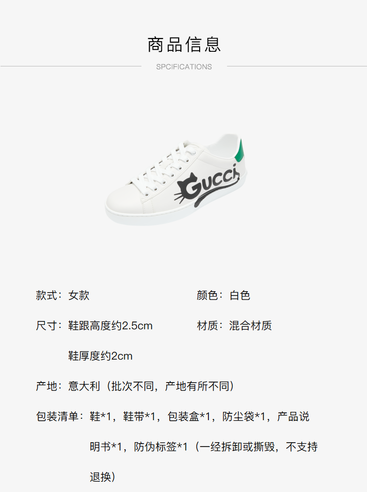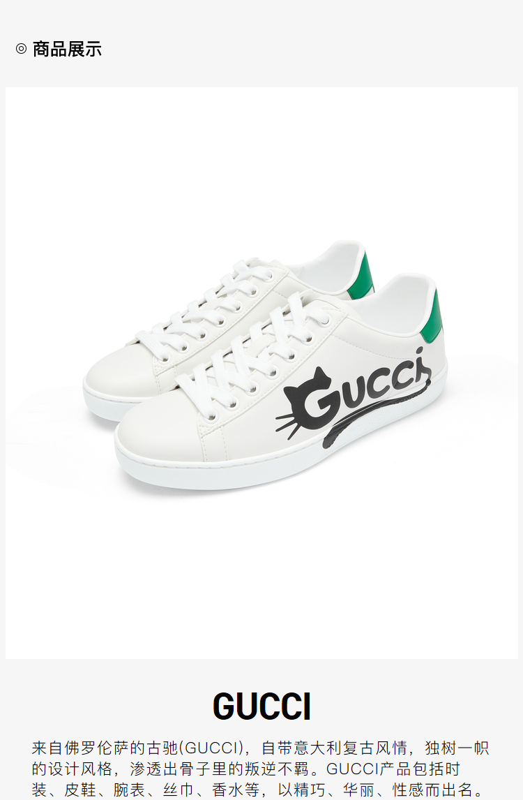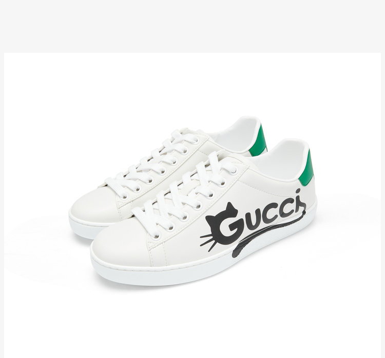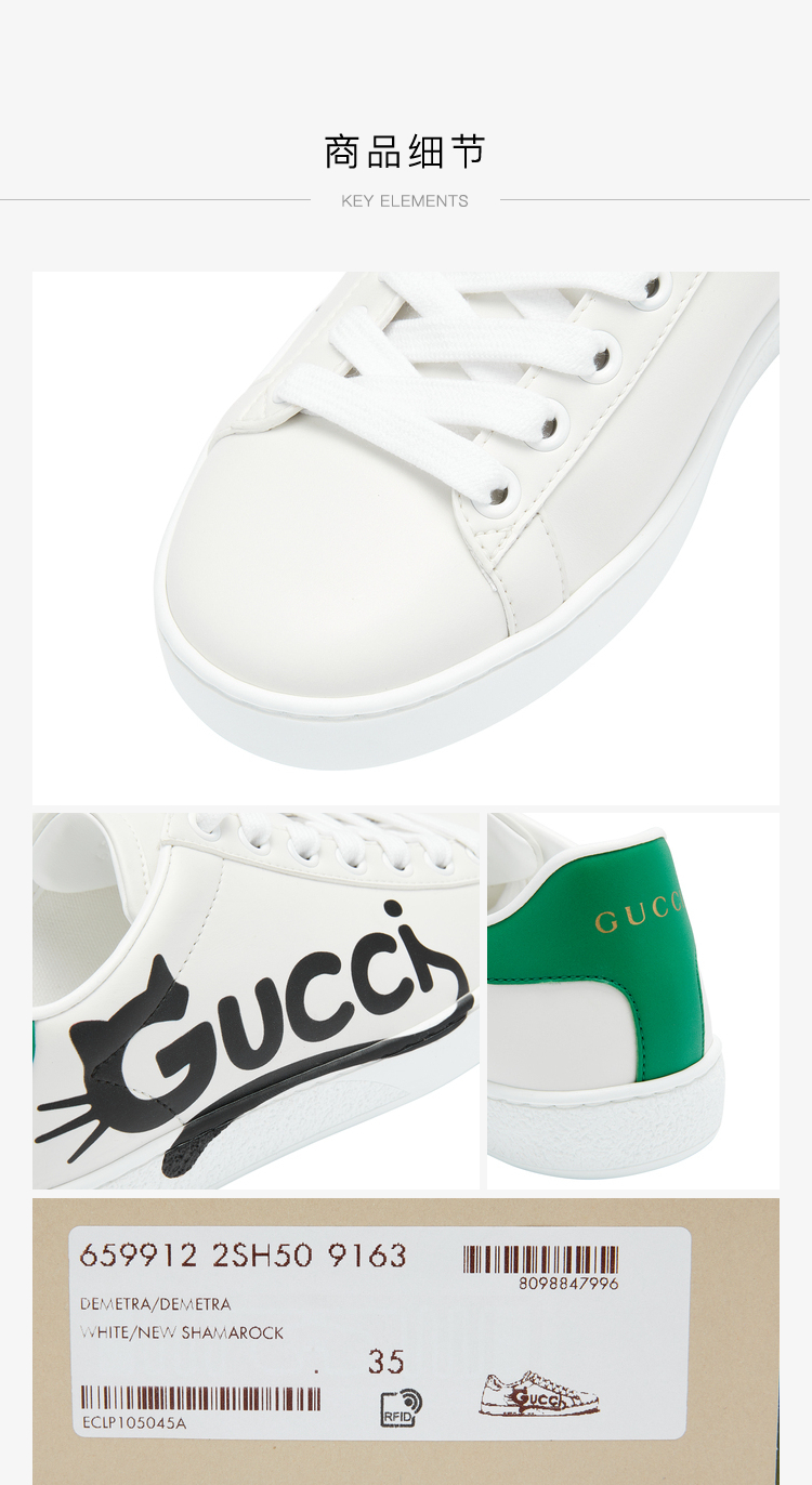 GUCCI 古驰 GUCCI女鞋 女士Ace系列Gucci猫咪印花休闲运动鞋 白色 659912