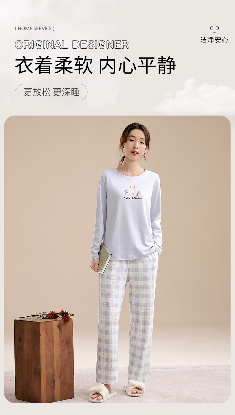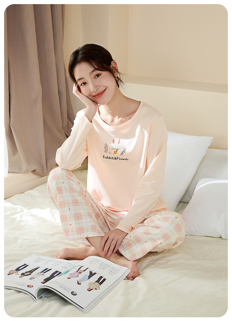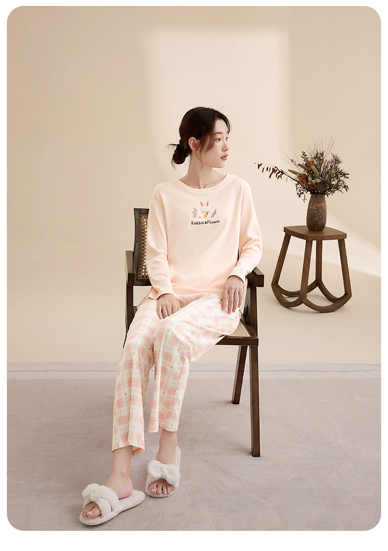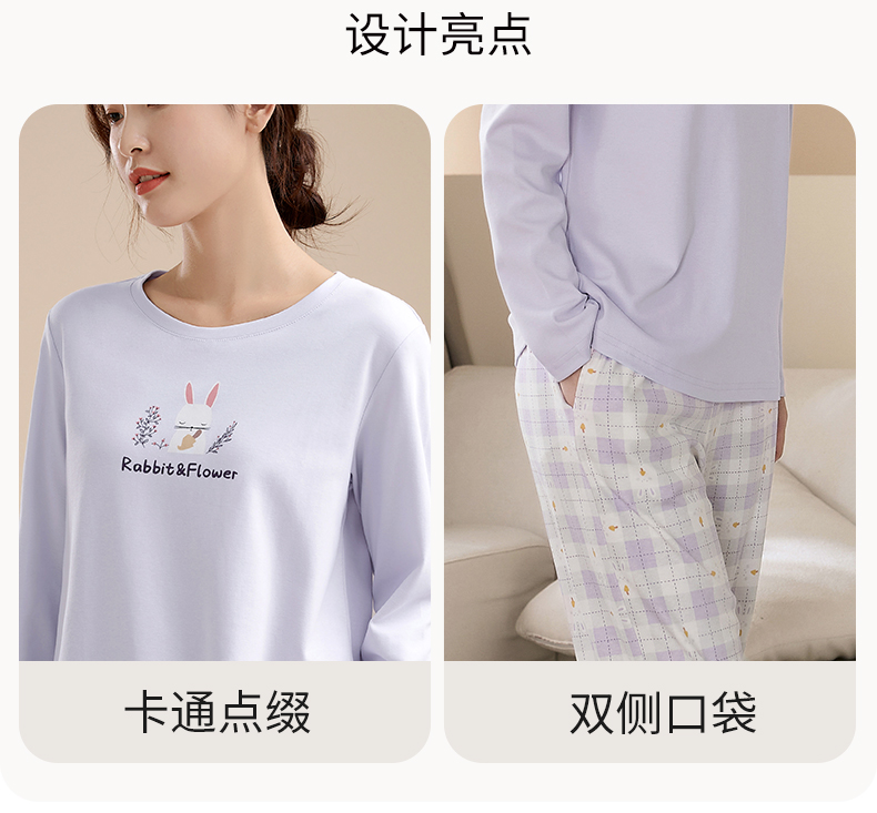 康妮雅睡衣女式长袖长裤套头套装