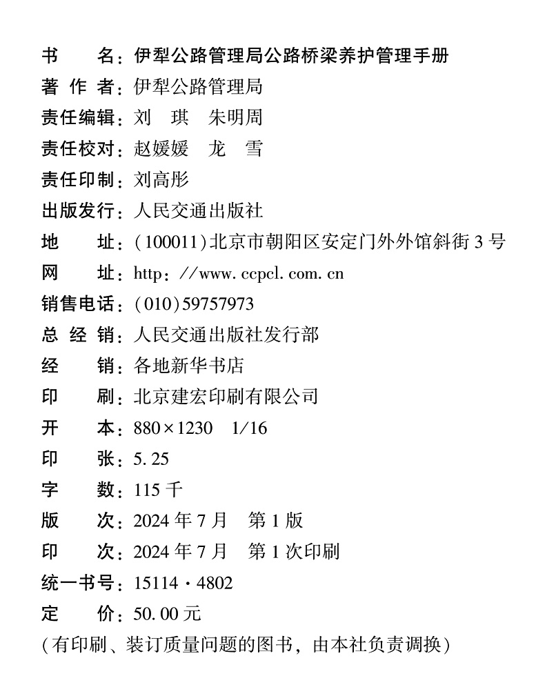 书名:伊犁公路管理局公路桥梁养护管理手册