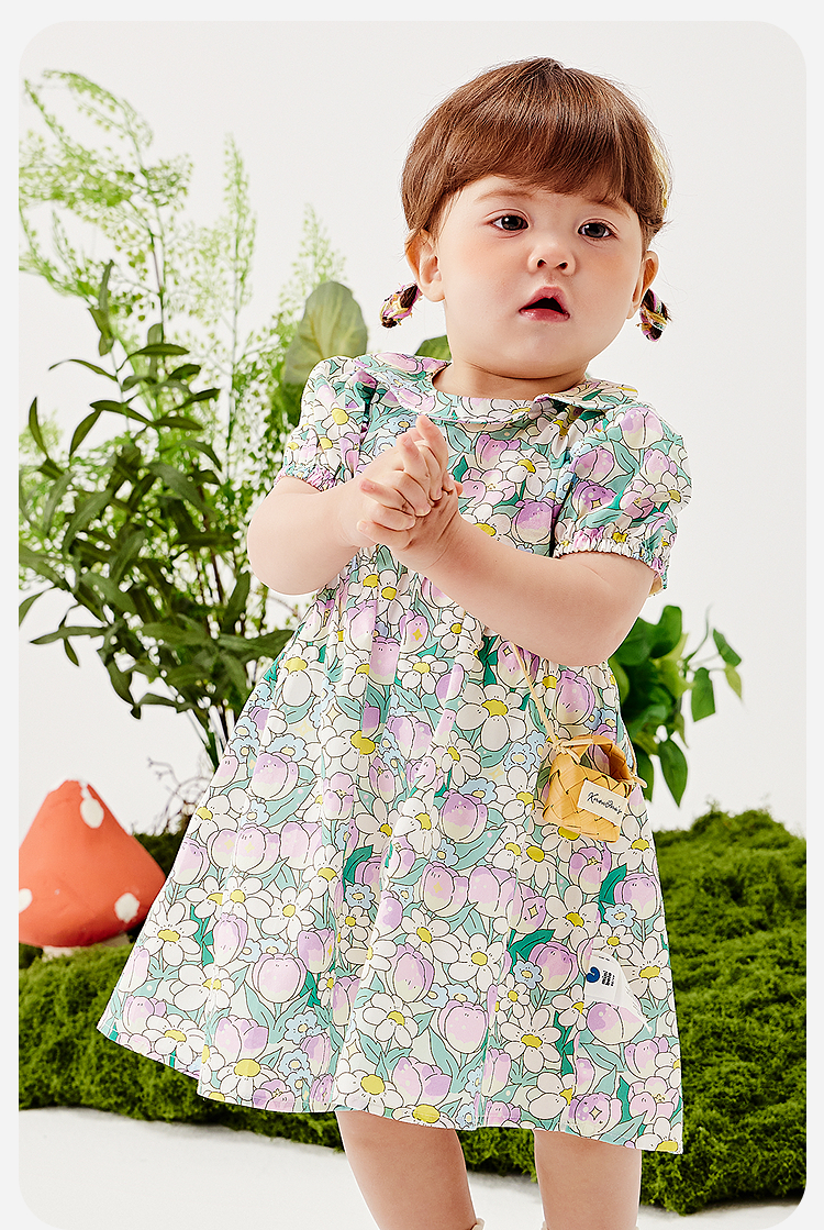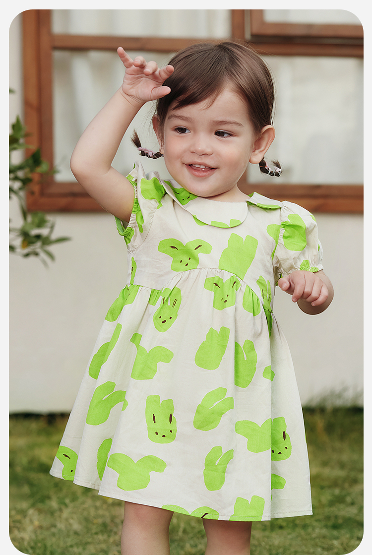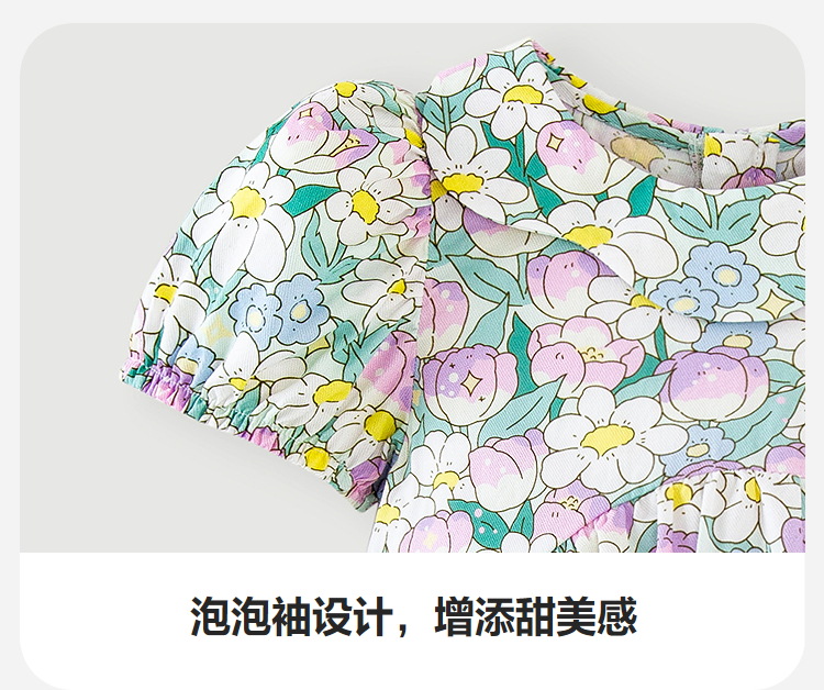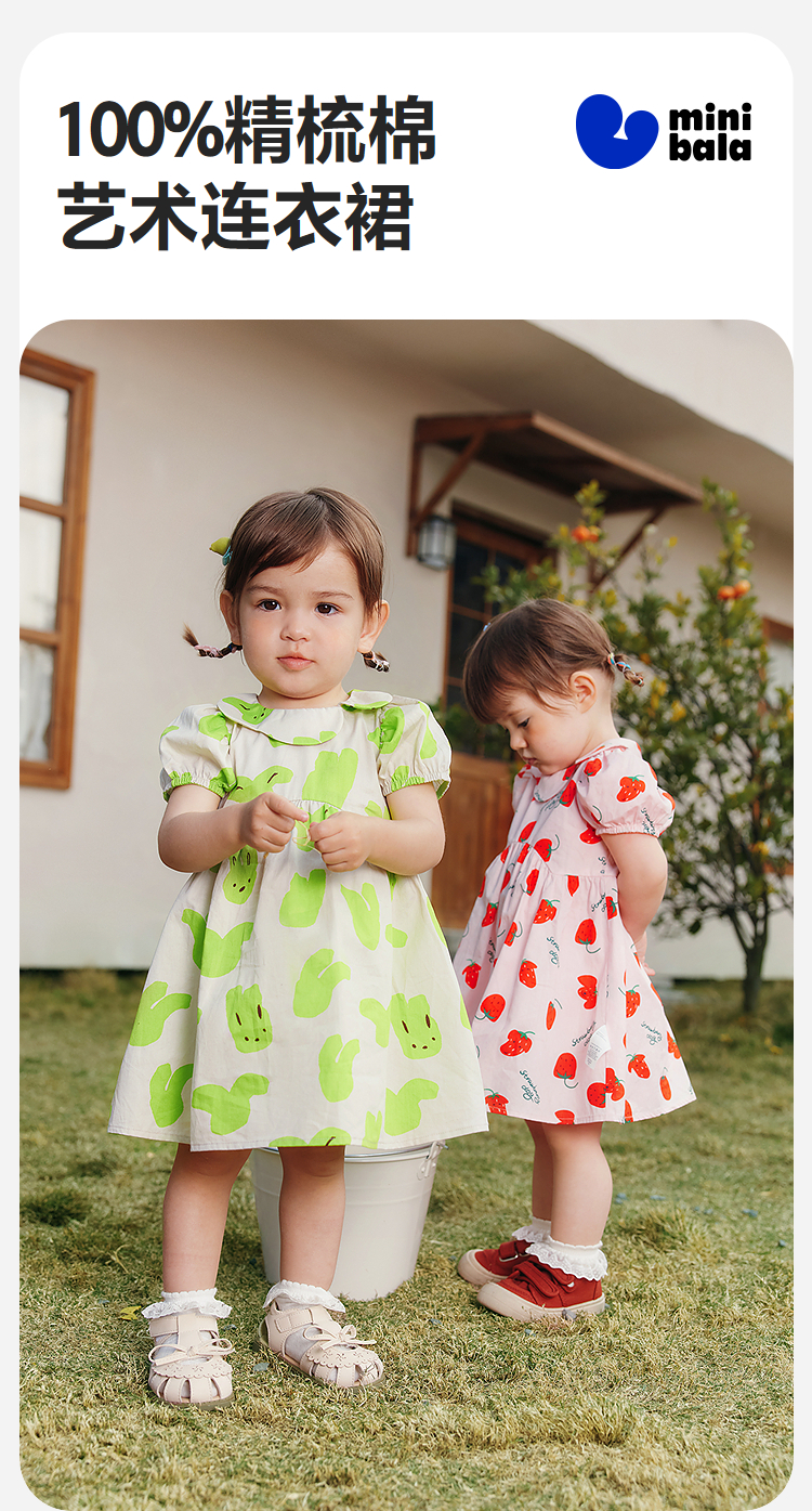 迷你巴拉纯棉连衣裙女童儿童亲肤透气甜美泡泡袖2025夏季新款