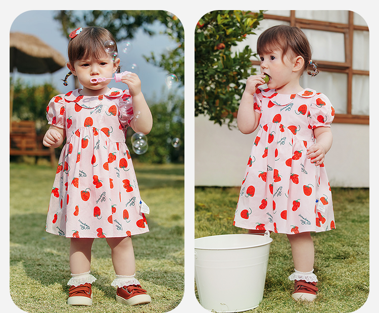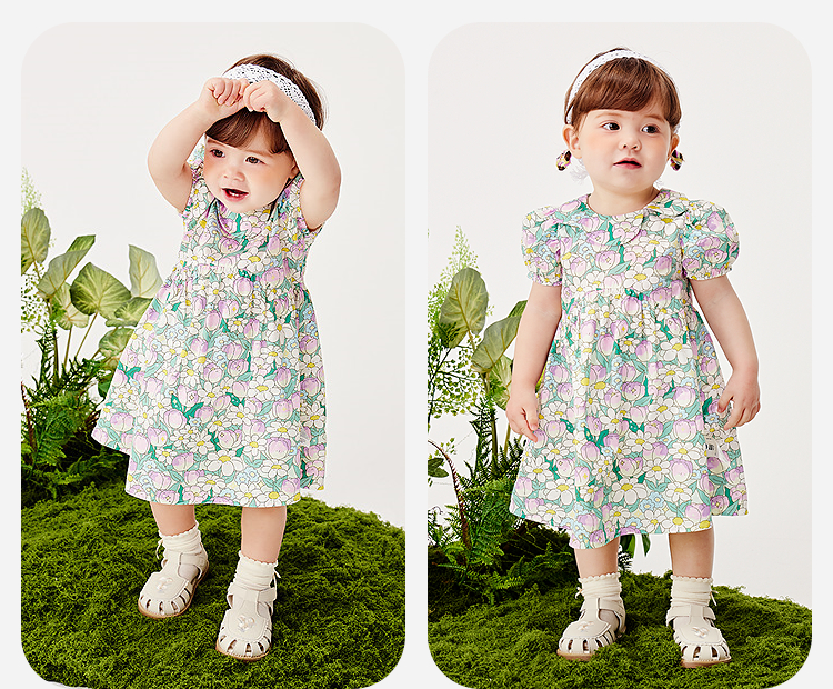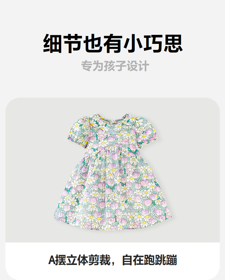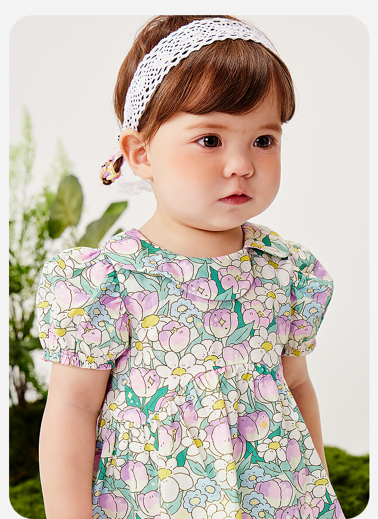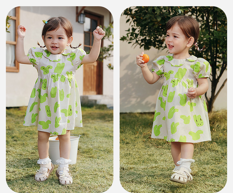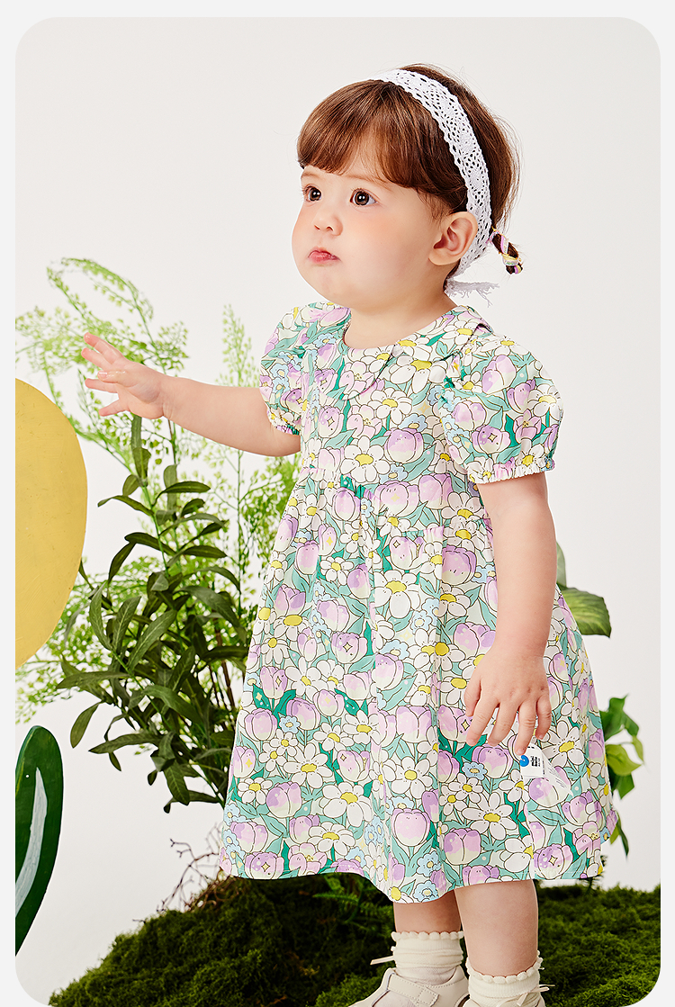 迷你巴拉纯棉连衣裙女童儿童亲肤透气甜美泡泡袖2025夏季新款