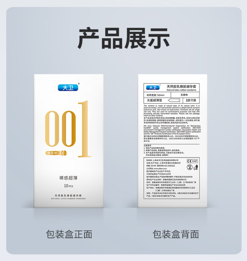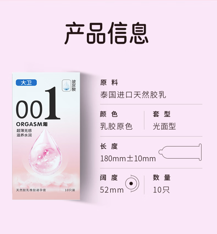 大卫避孕套0.01超薄裸入安全套玻尿酸水润免洗byt成人情趣用品40只