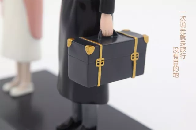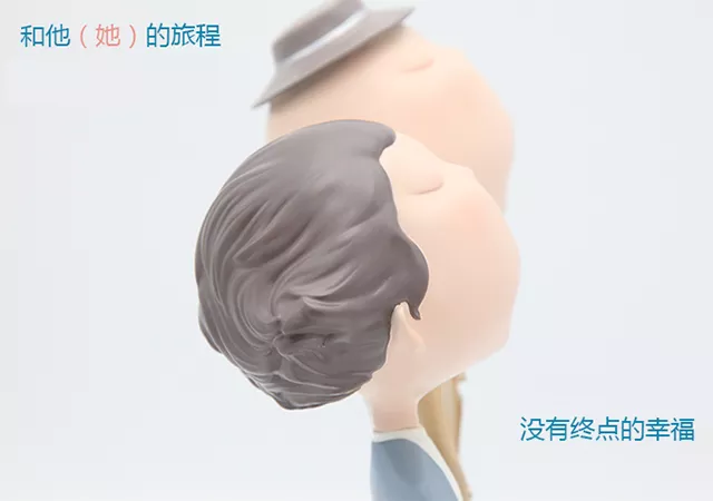 吴琼的作品辨识度很高,风格明显。双目闭合、微微上扬的面庞、半张的嘴唇,女孩挽着男孩的手臂,男孩提着他们的行李,就这样,眺望远方。简单的幸福,就是和爱的人一起哪里都无所谓。