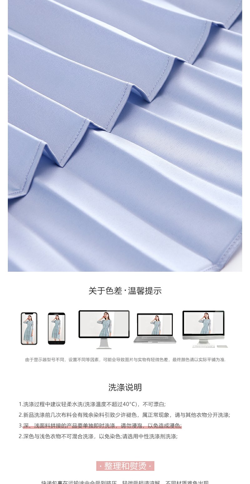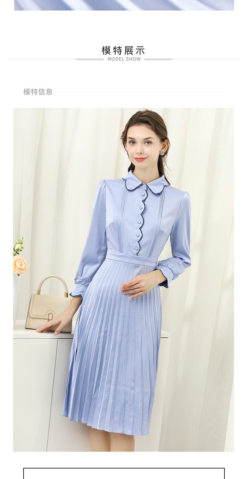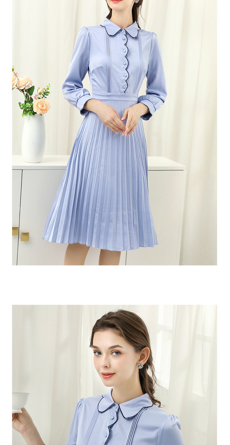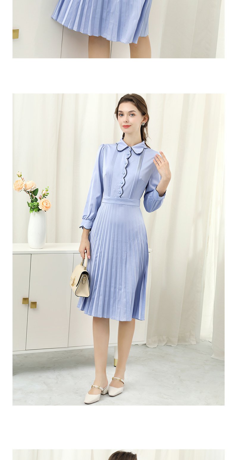 未风蓝色显瘦连衣裙女春2025年春季新款女装气质修身长袖百褶裙子