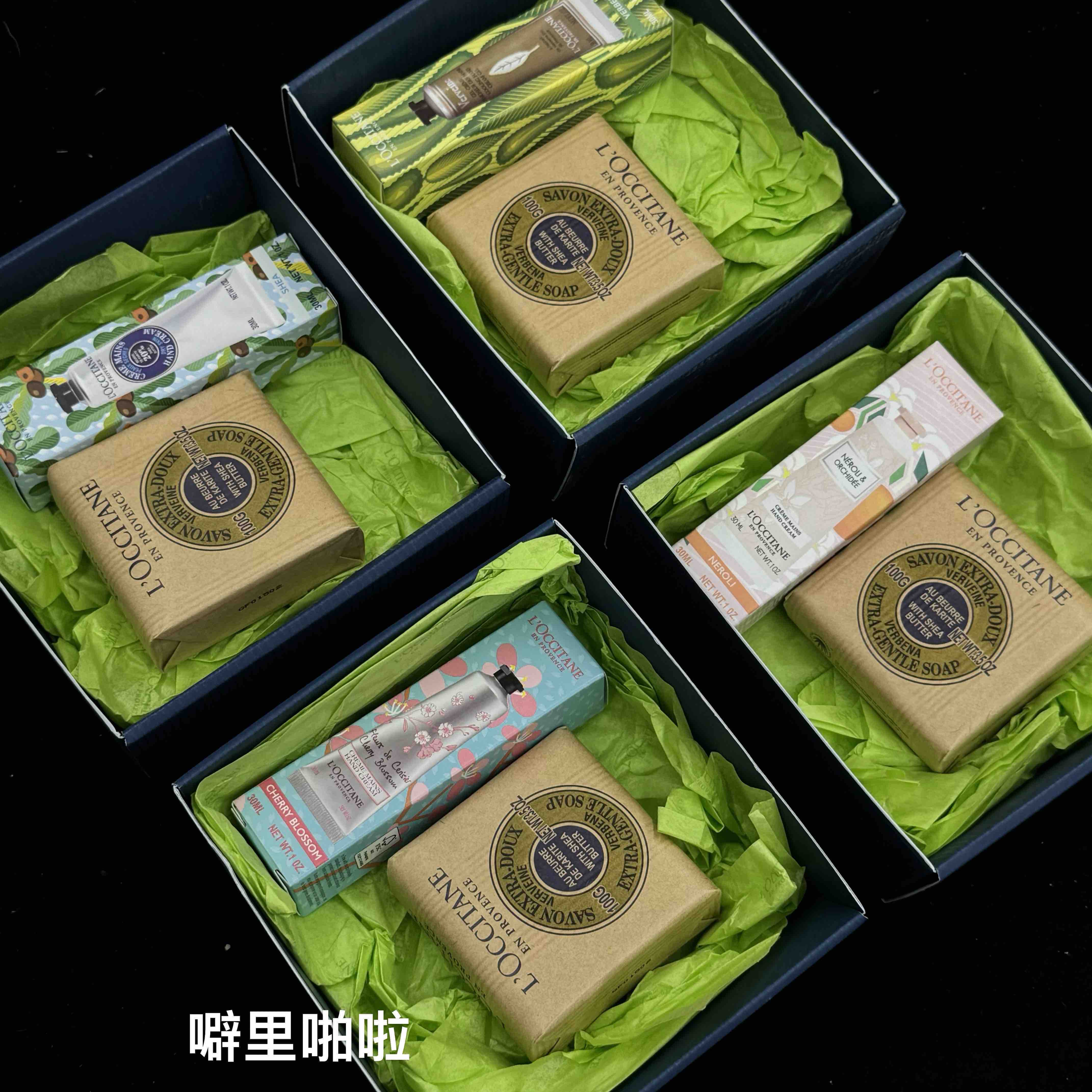 节日提前拍!漂漂亮亮的小礼盒 欧舒丹马鞭草香皂➕护手霜(随机)
