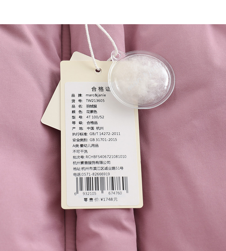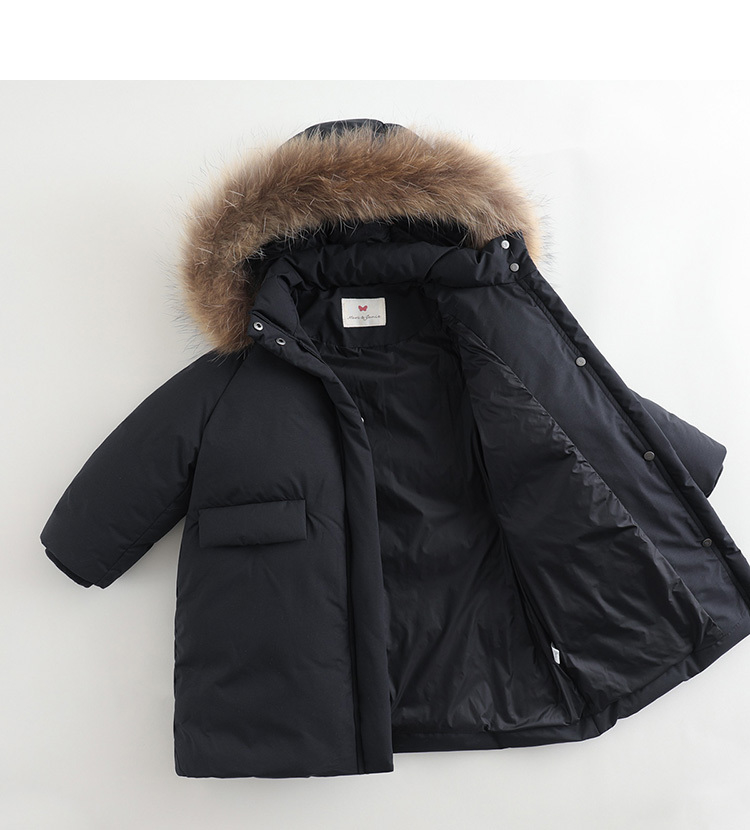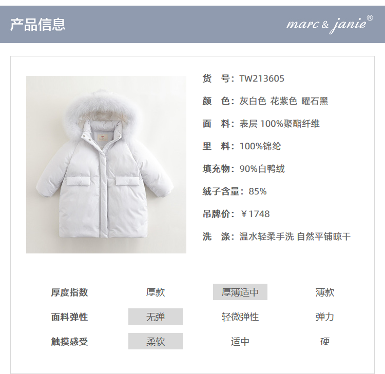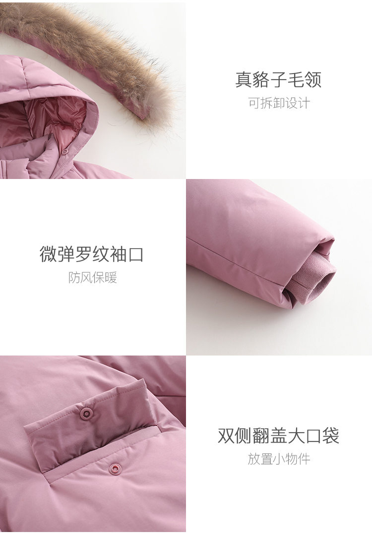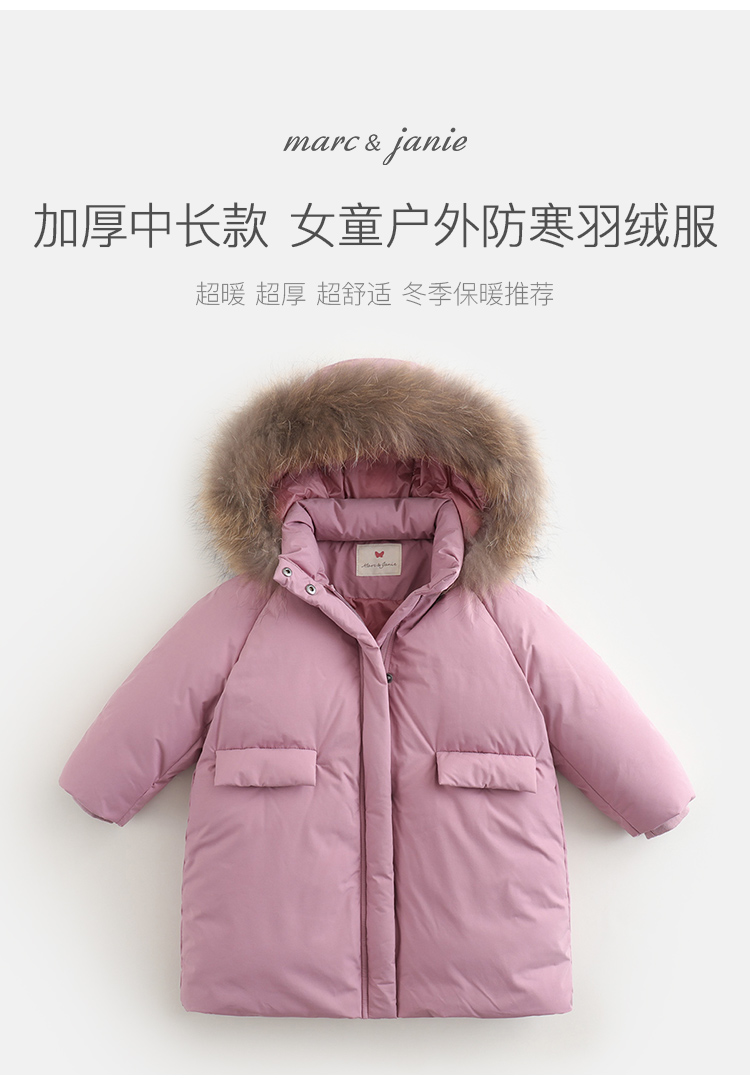 【户外防寒】马克珍妮新款冬装女童中长款加厚羽绒服213605