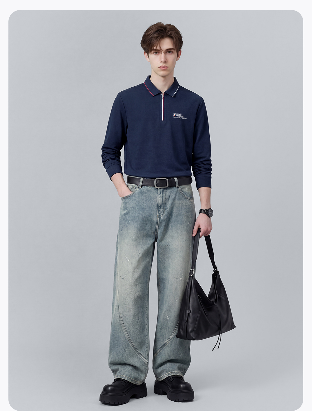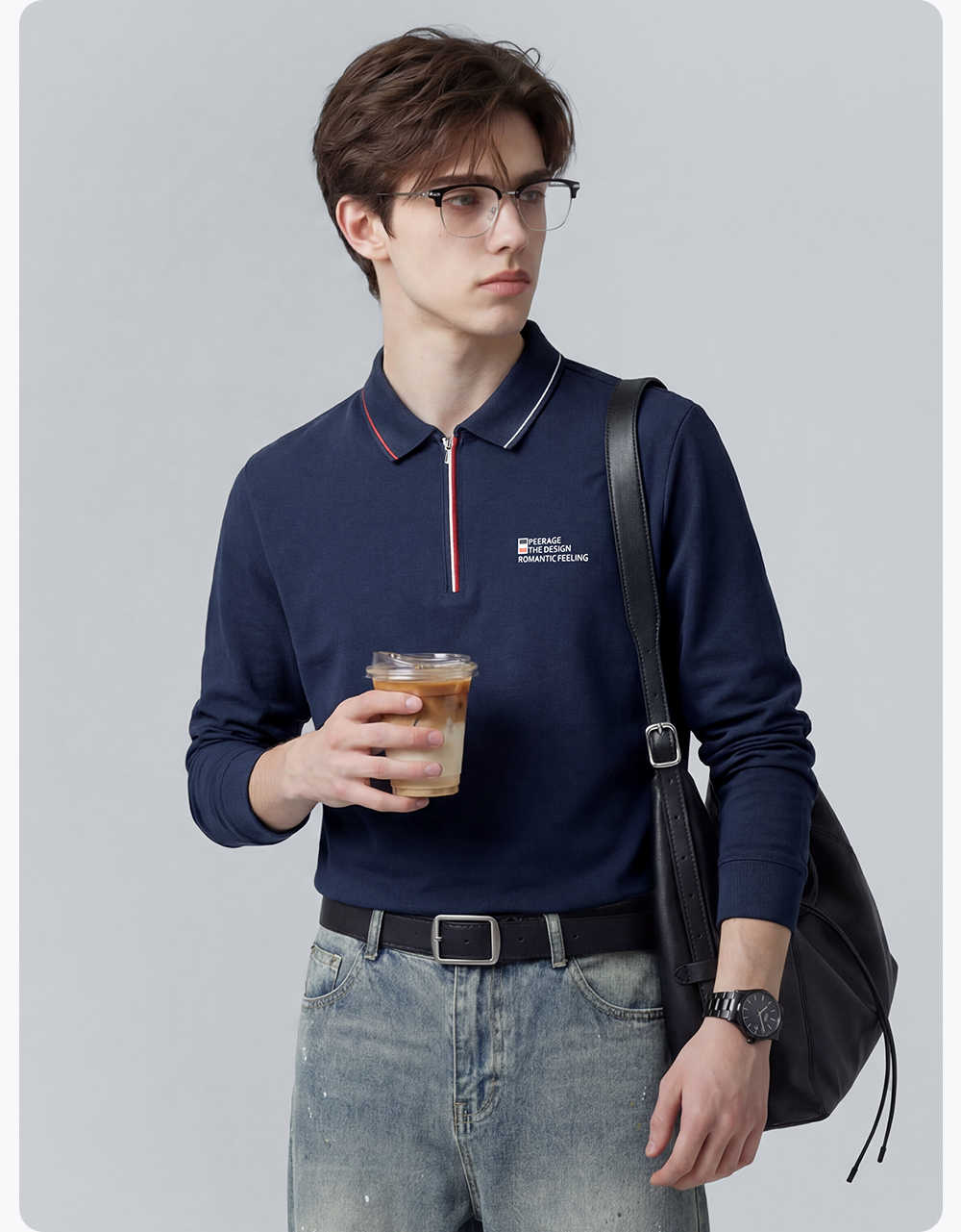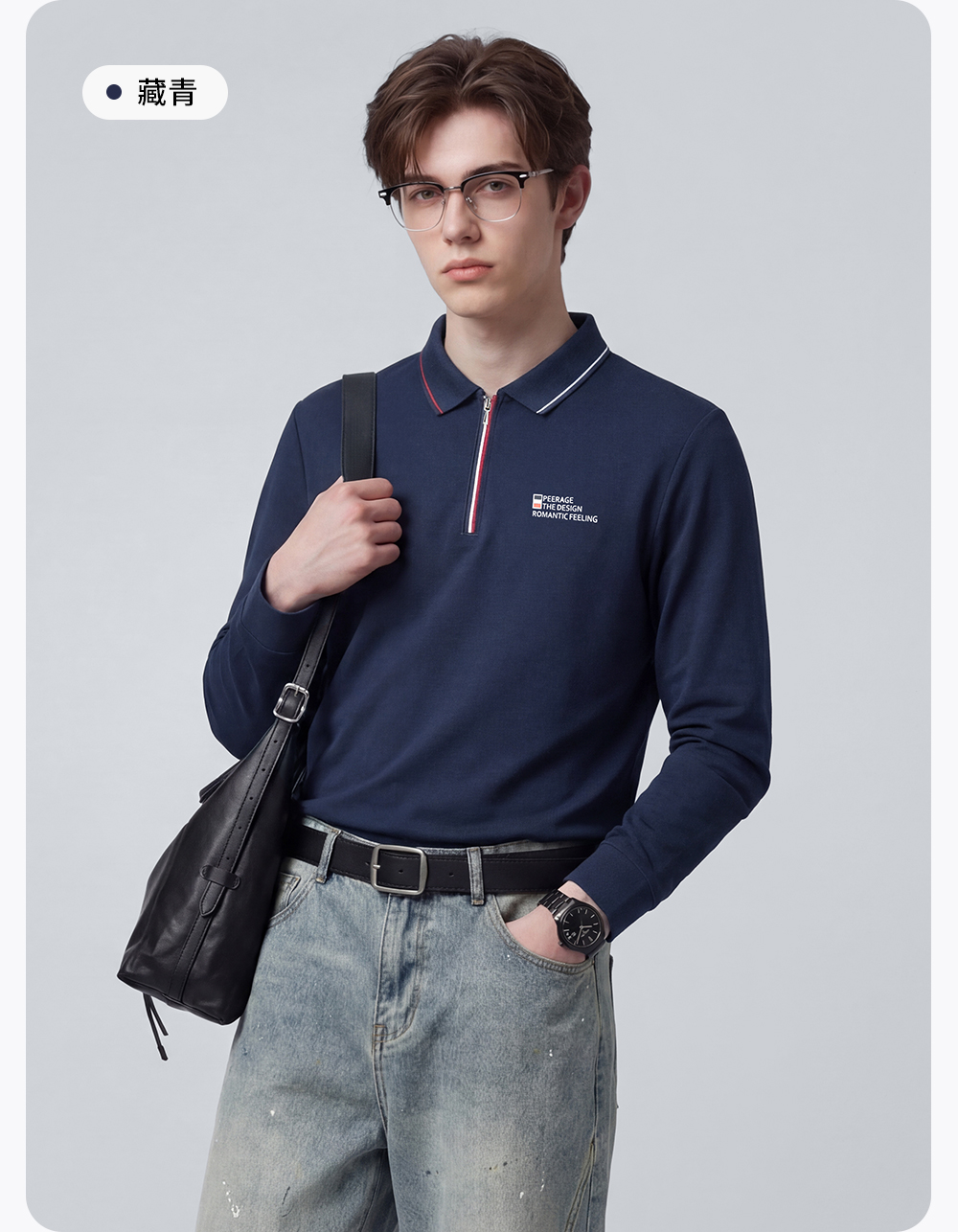 【含棉】圣得西男士长袖t恤2026新款春季通勤商务休闲Polo衫上衣