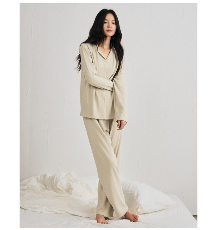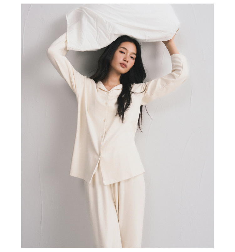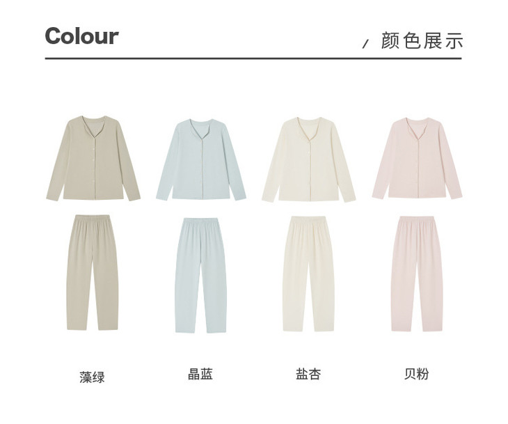 秋冬海藻纤维家居服女防螨保湿纯色纽扣开衫长袖高端舒适外穿睡衣