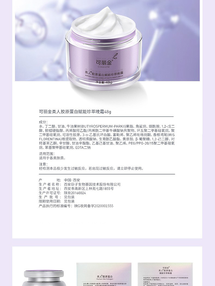【品牌直发 拒绝假货】可丽金Human-like重组胶原蛋白赋能晚霜50g
