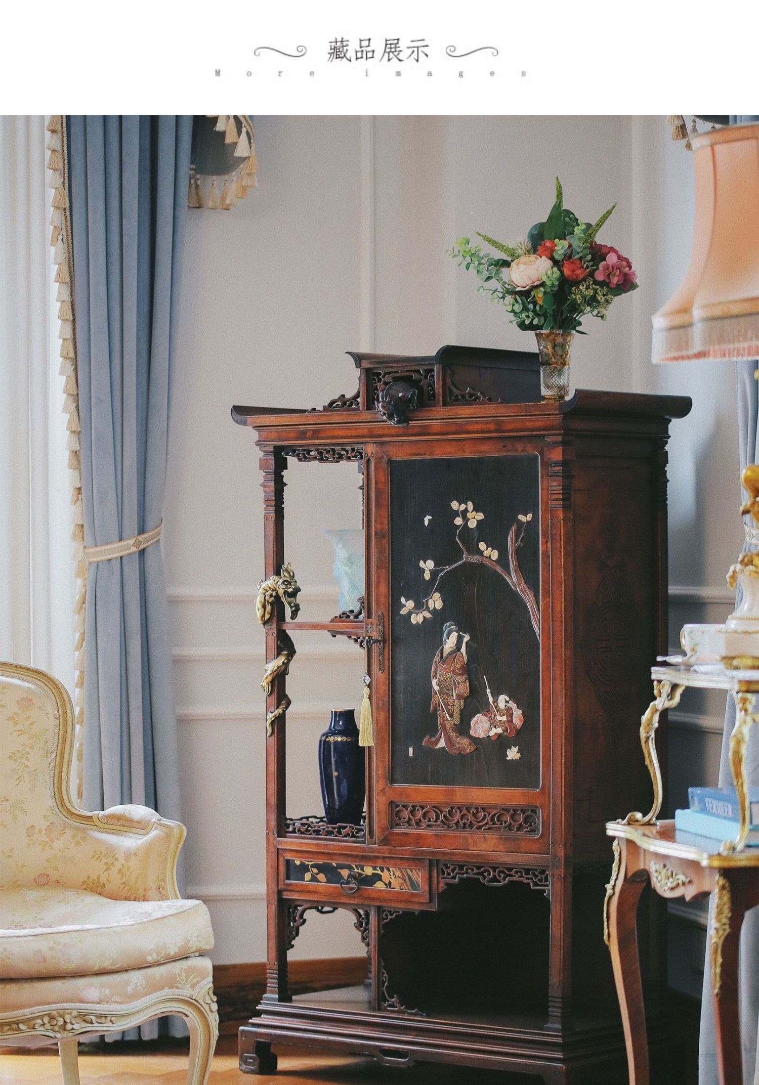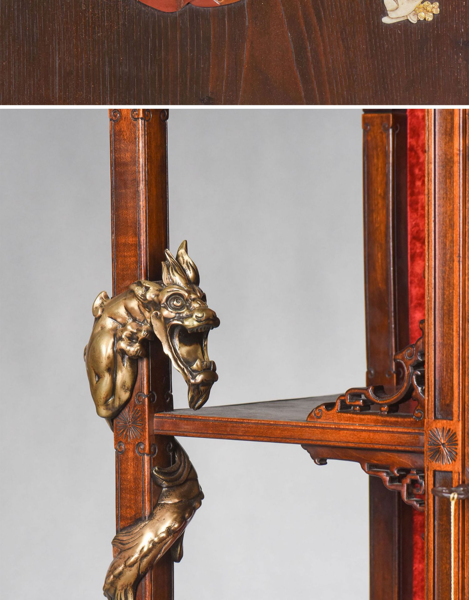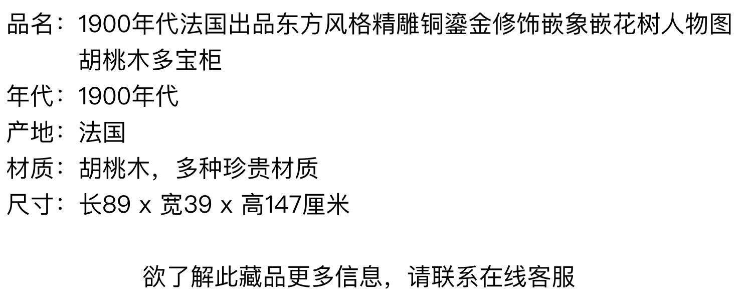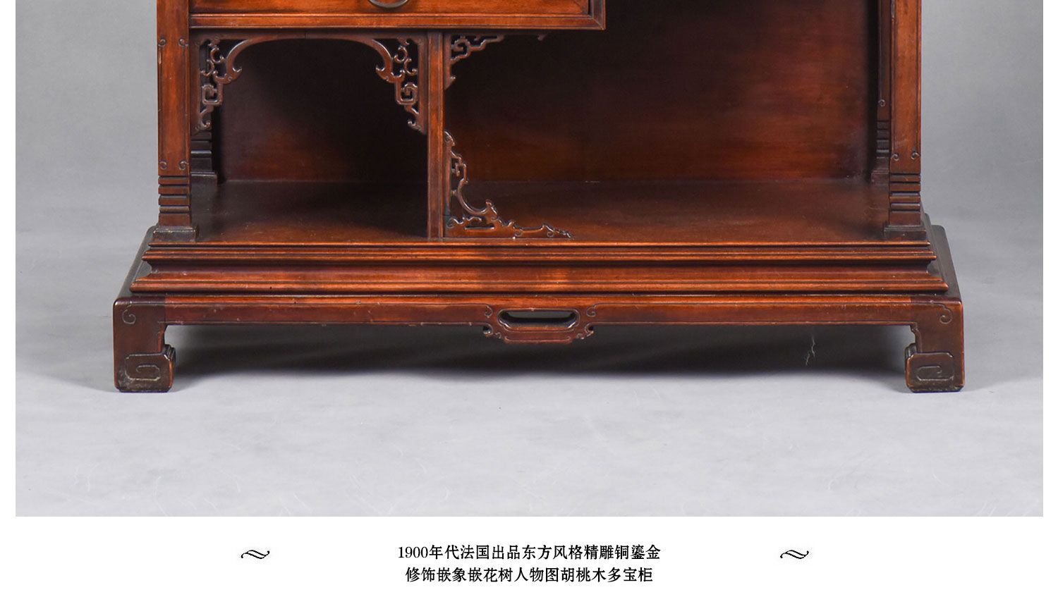 独角鹿西洋古董家具东方风格铜鎏金嵌象嵌花胡桃木多宝柜展柜立柜