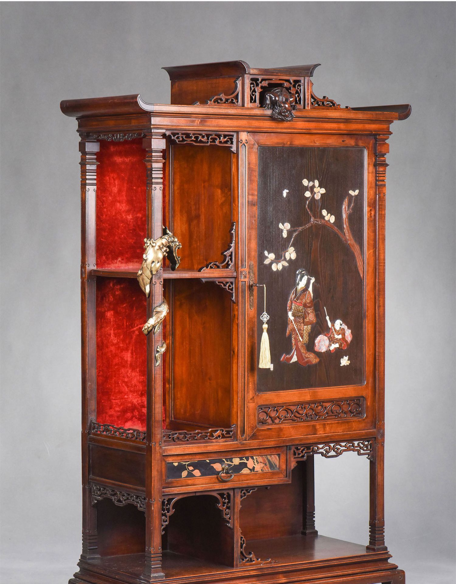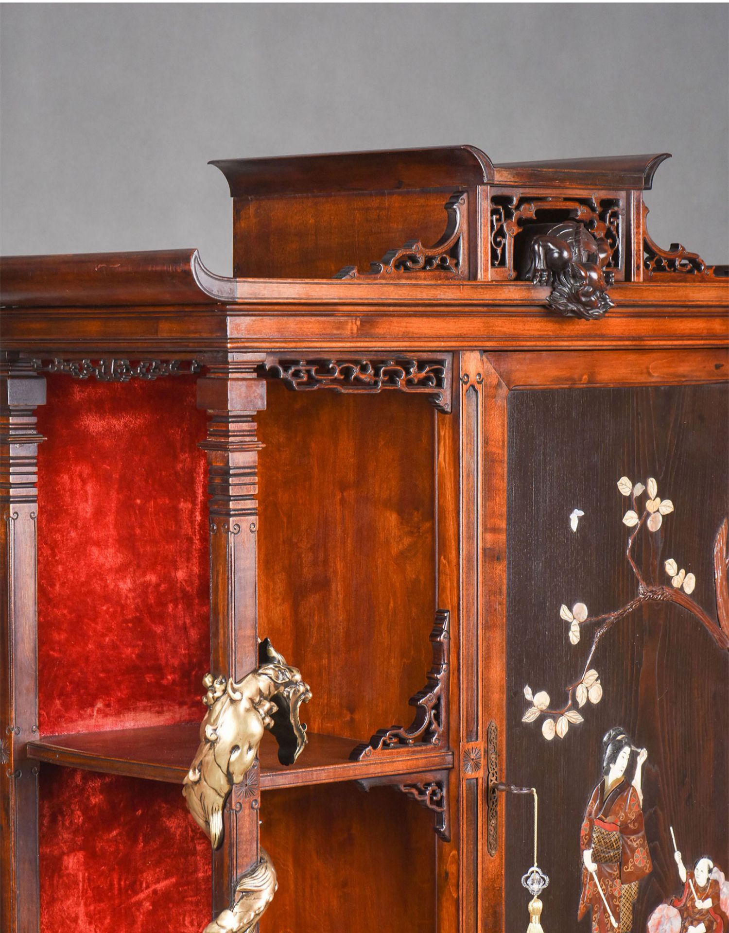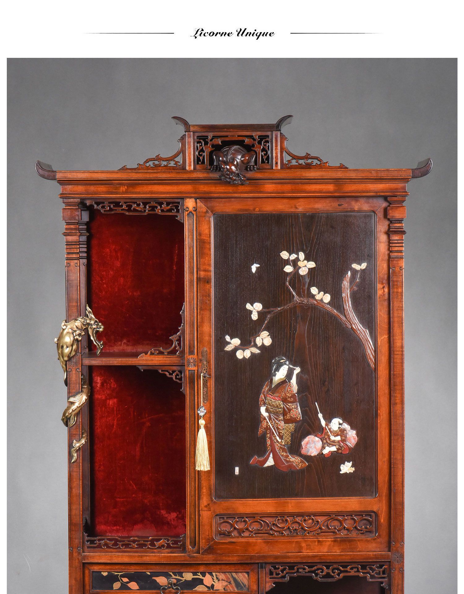 独角鹿西洋古董家具东方风格铜鎏金嵌象嵌花胡桃木多宝柜展柜立柜