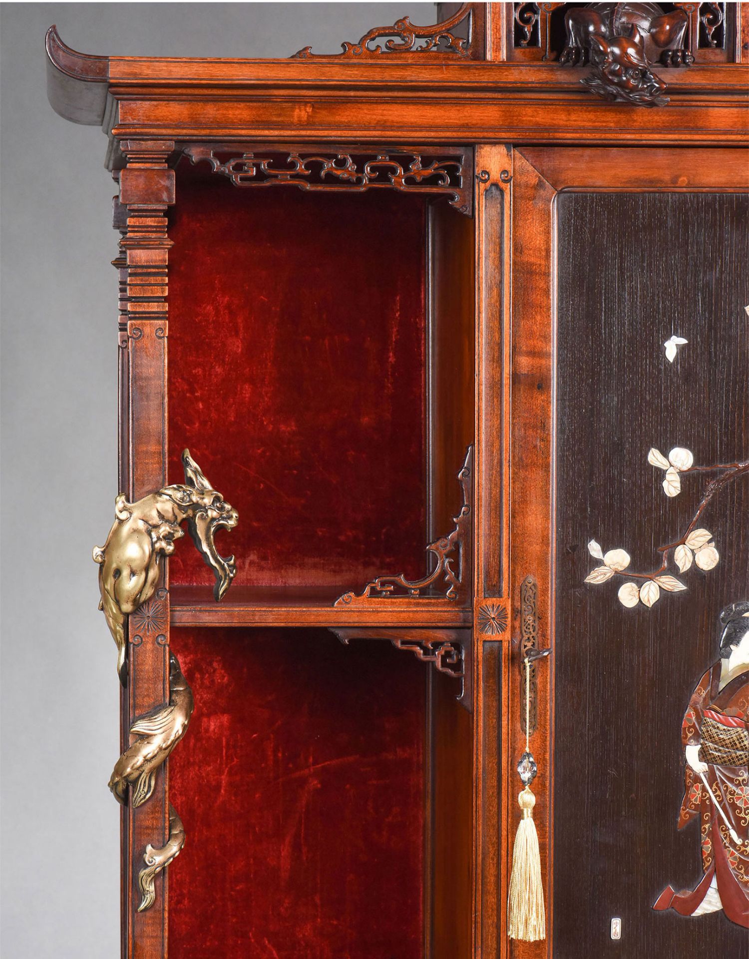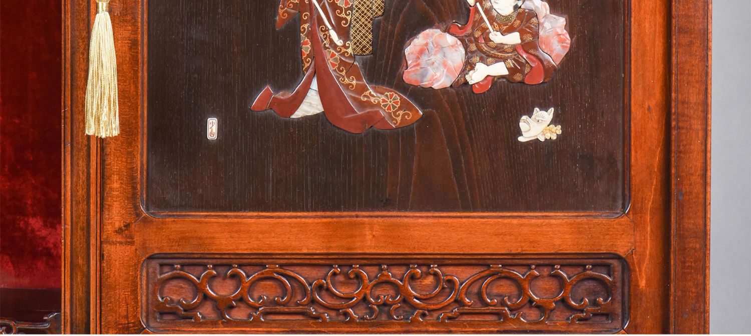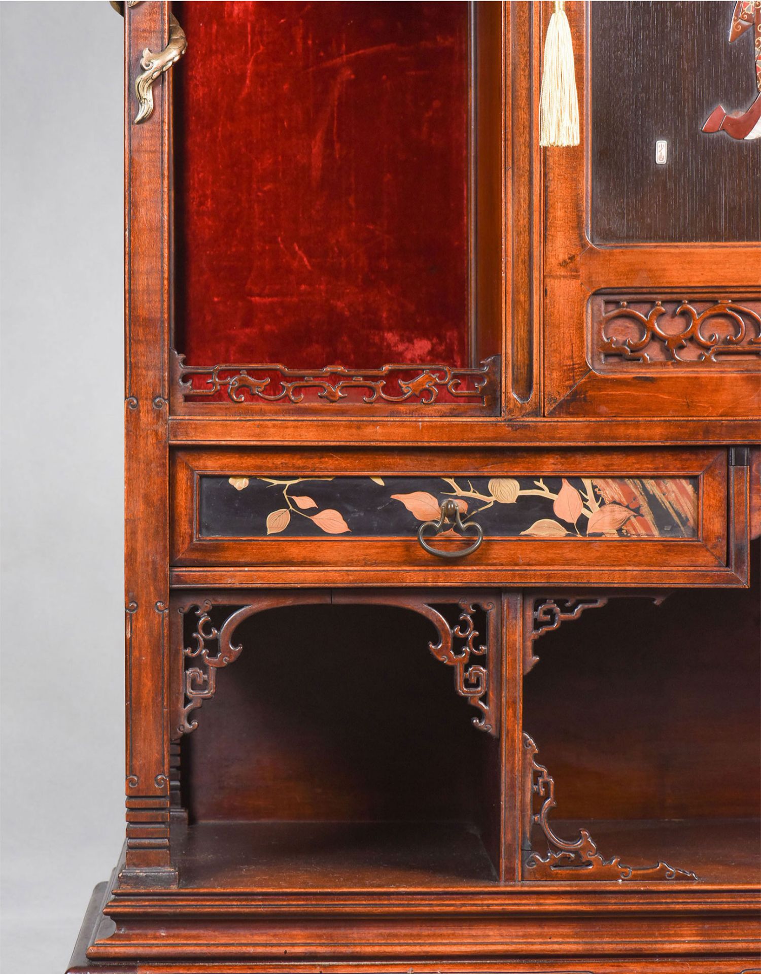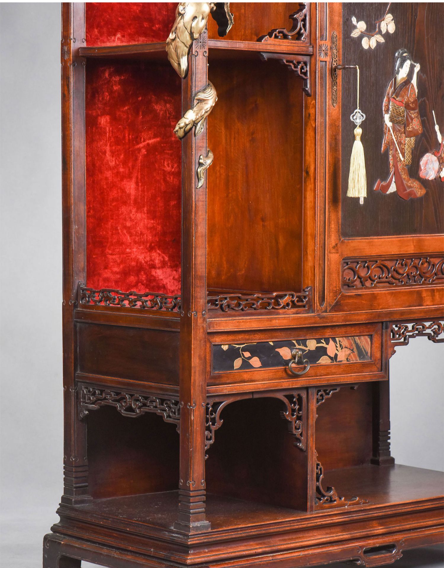 独角鹿西洋古董家具东方风格铜鎏金嵌象嵌花胡桃木多宝柜展柜立柜