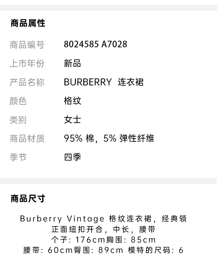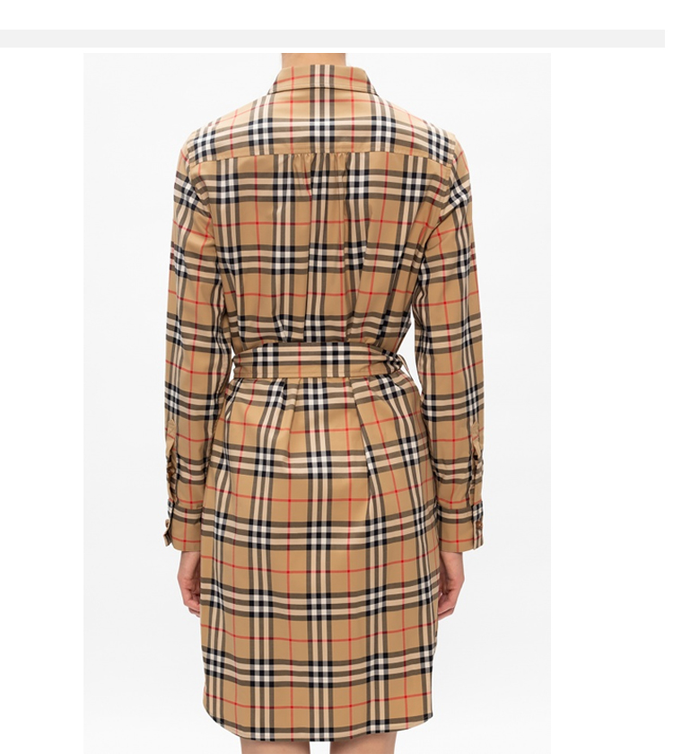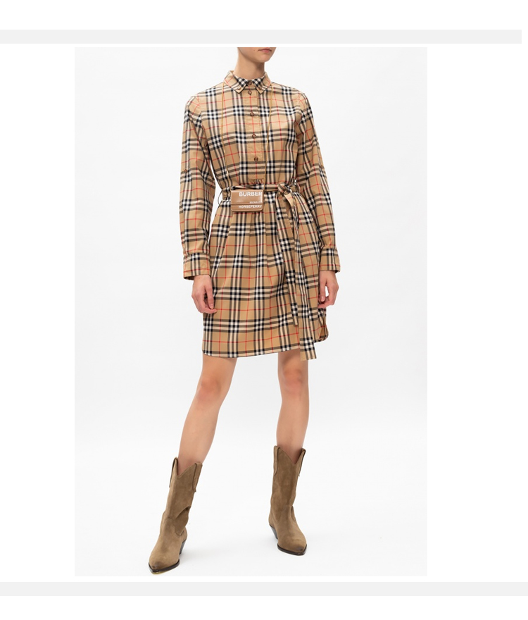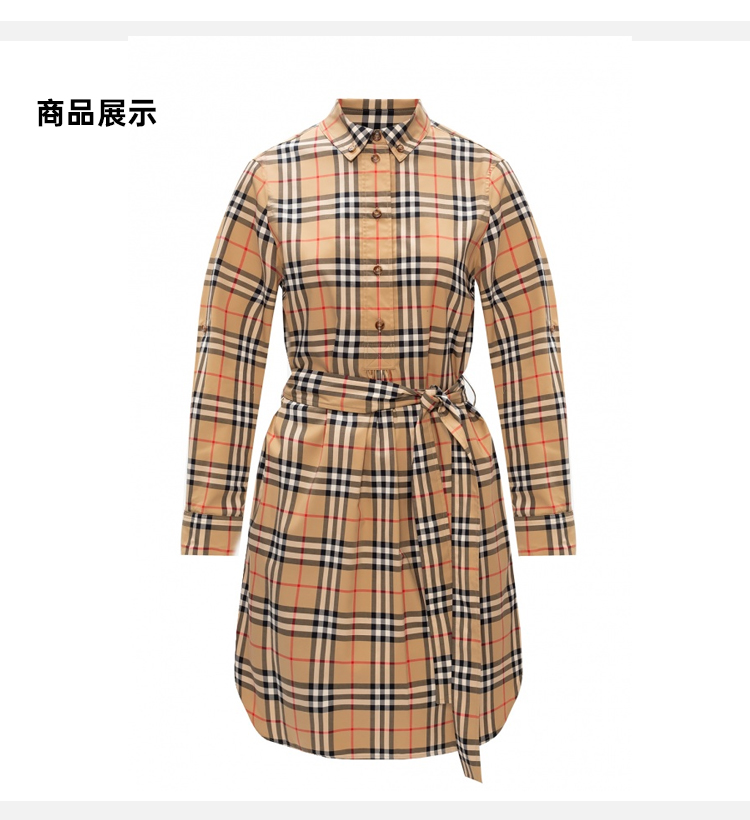 BURBERRY 巴宝莉 女士 Vintage 格纹弹力棉质系腰衬衫式连衣裙 8024585 A7028