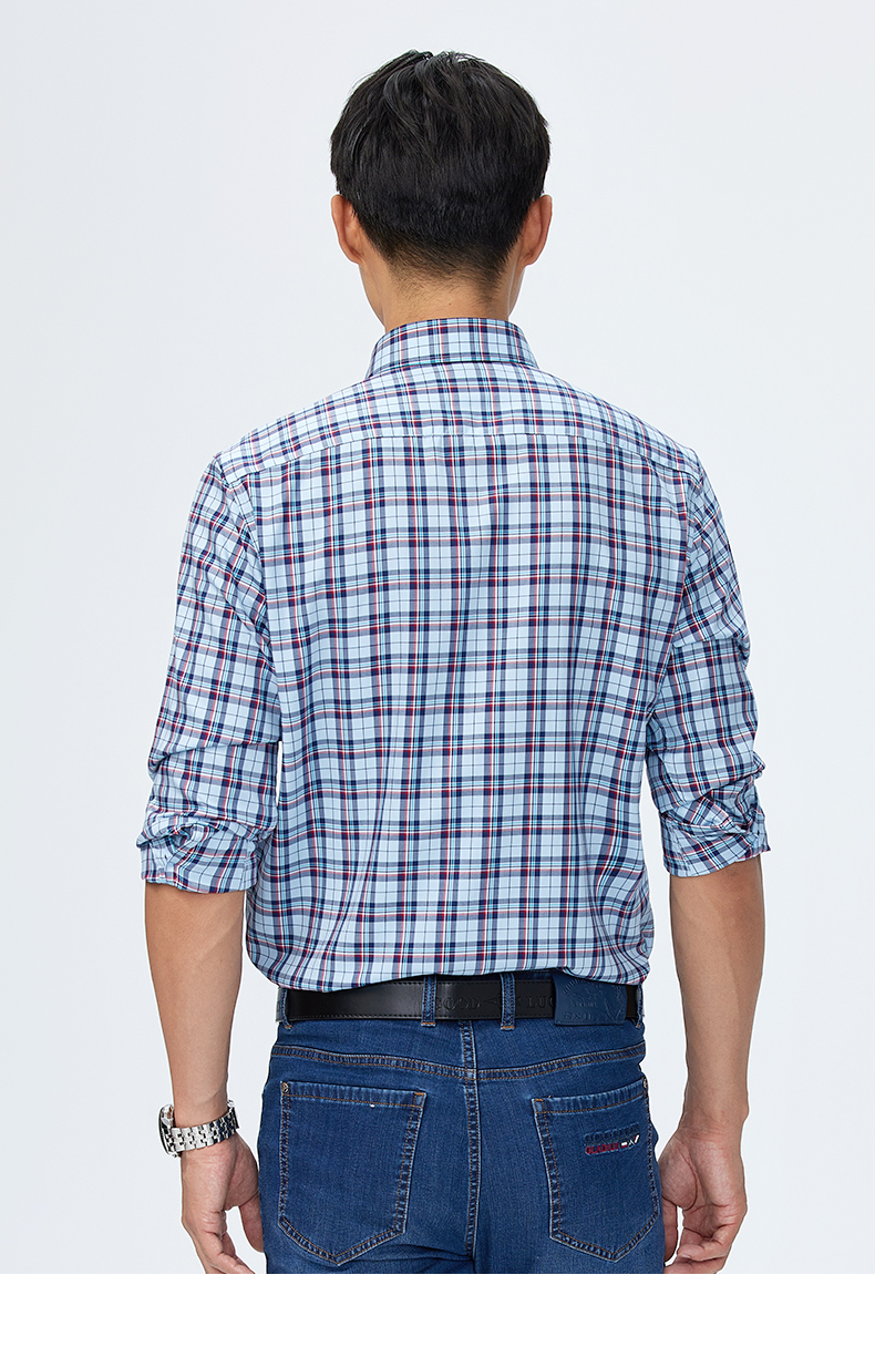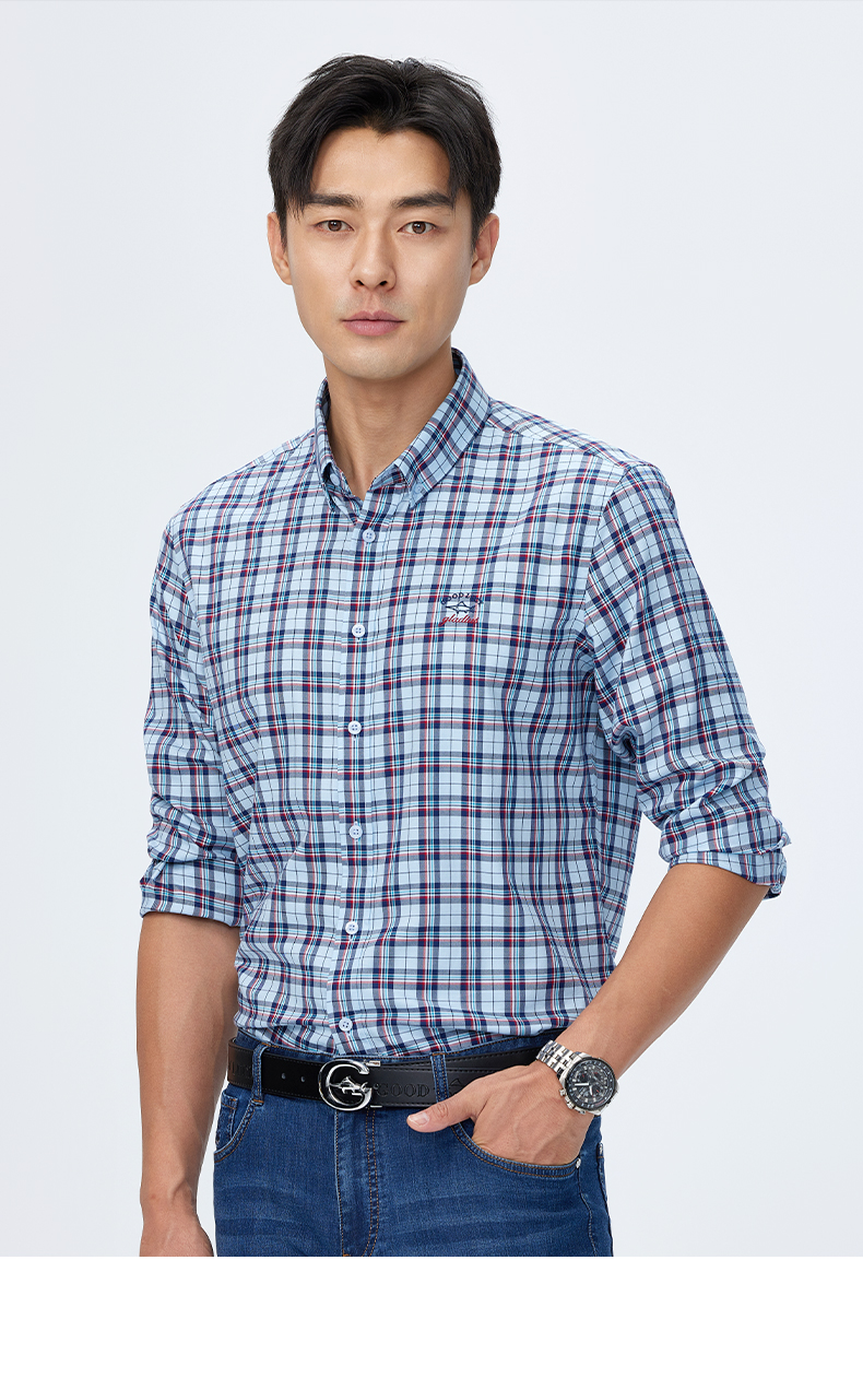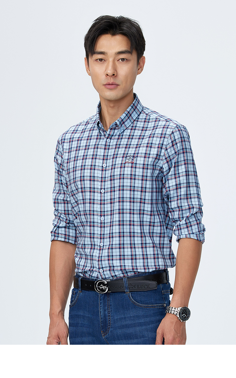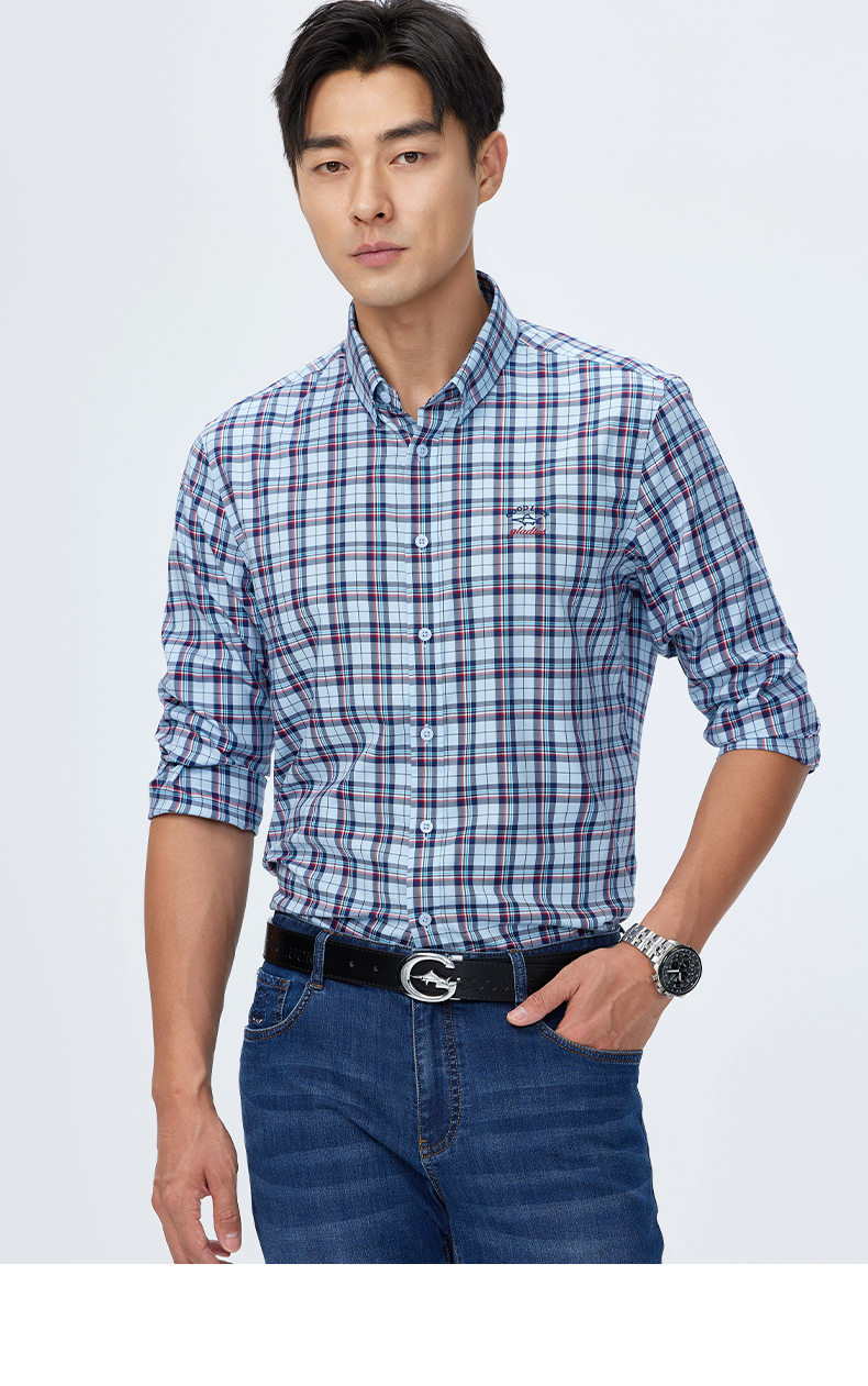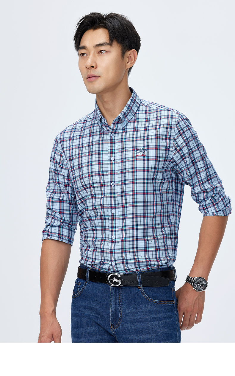 【桑蚕丝】德鲨长袖格子衬衫男2025春季新款休闲男装衬衣