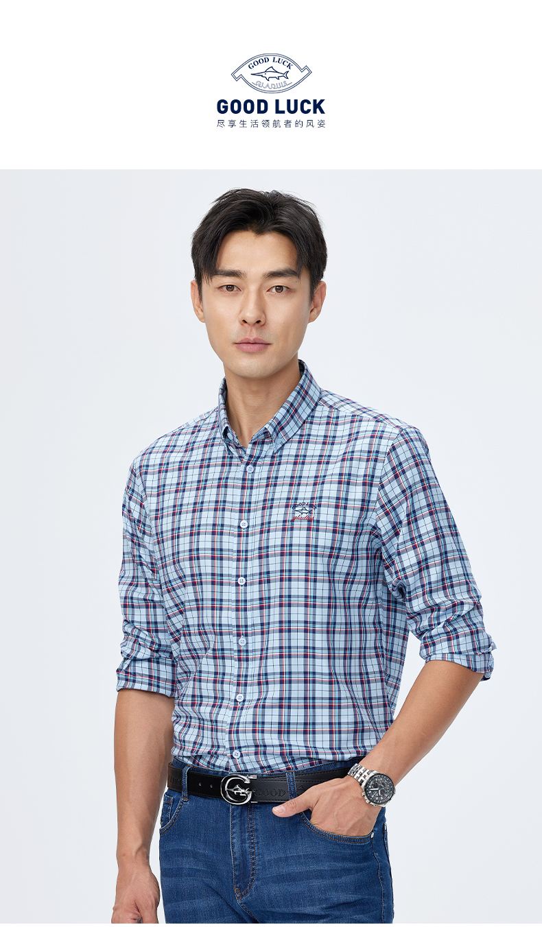 GOOD LUCK/德鲨100%棉雅致蓝白条纹时尚百搭长袖衬衫BY21309-842