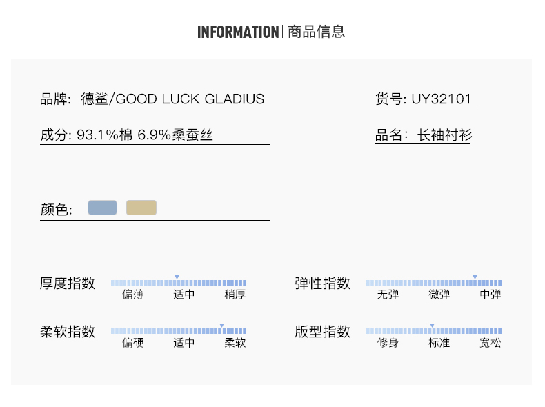 GOOD LUCK GLADIUS品牌由“浙江德鲨服饰有限公司”引进中国市场,经过多年发展,凭借完善的终端形象,规范化的销售管理,迅速赢得消费者的认可,引领国内消费流行,是成功人士首选男装品牌。