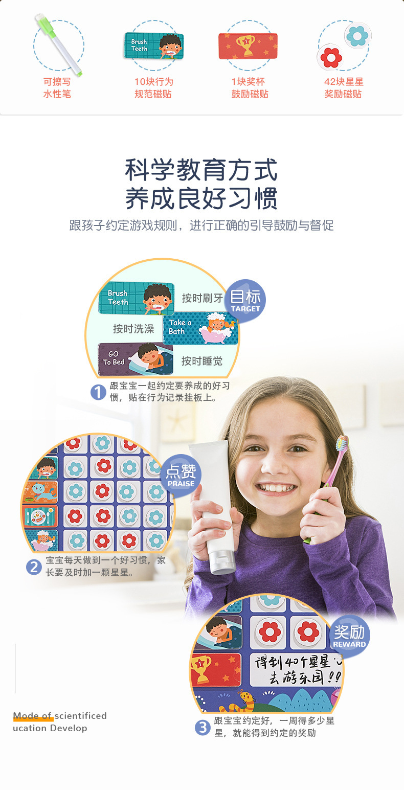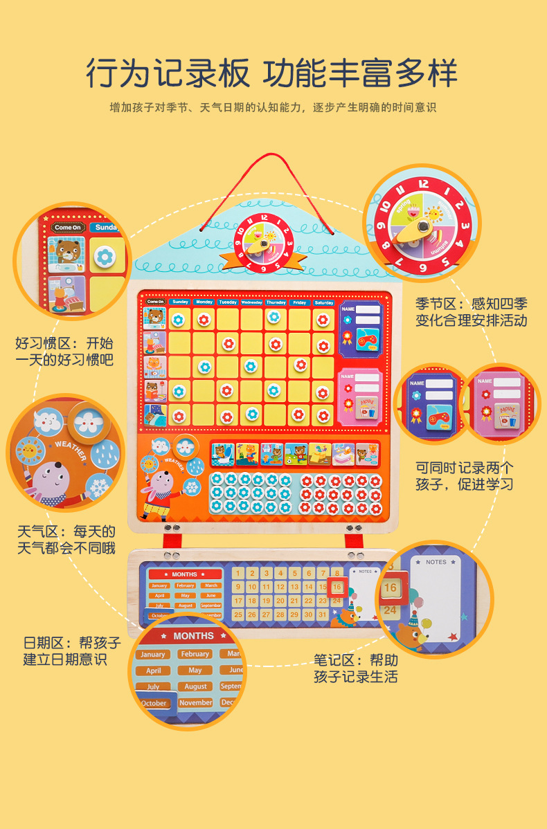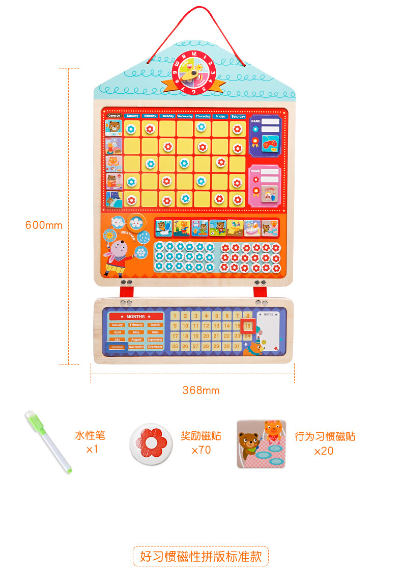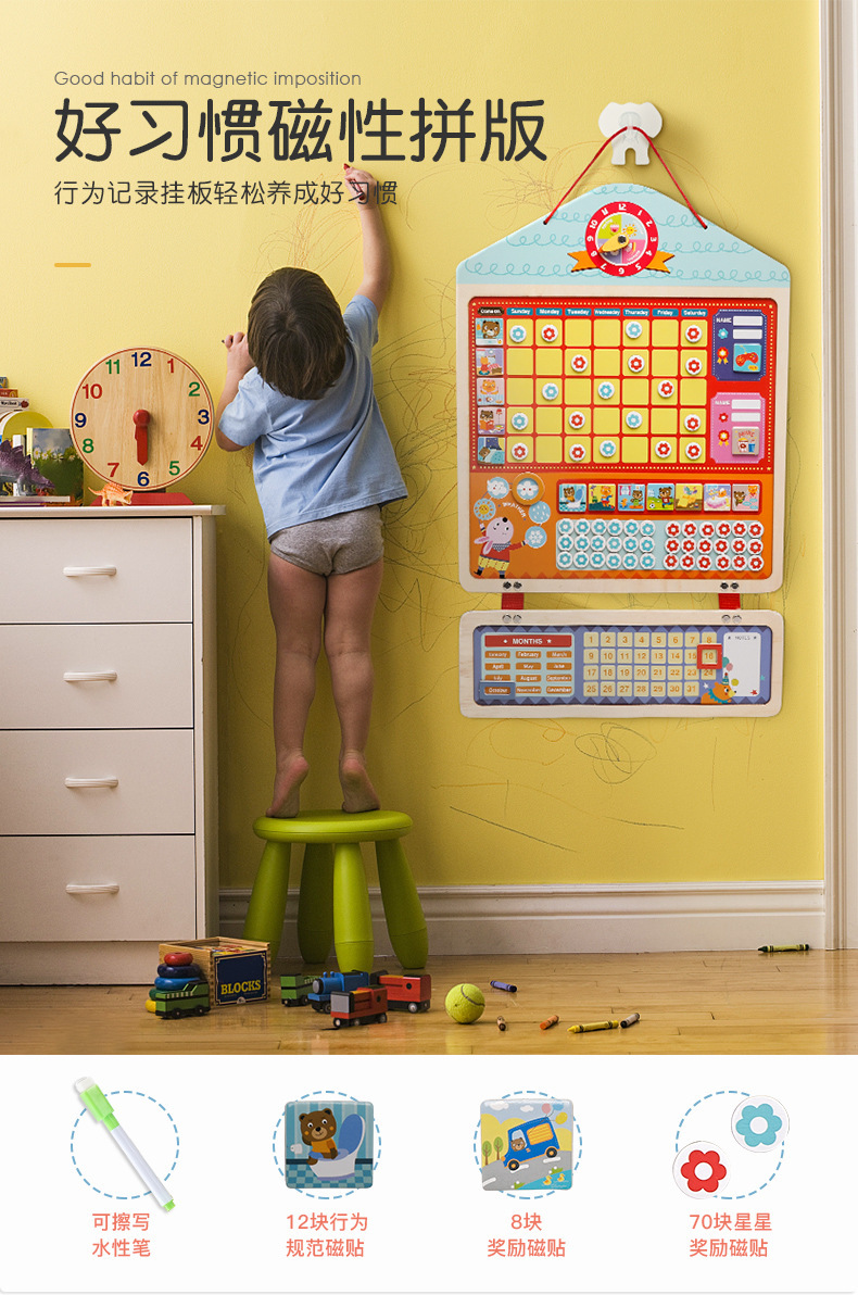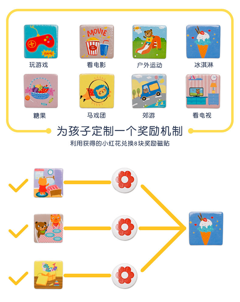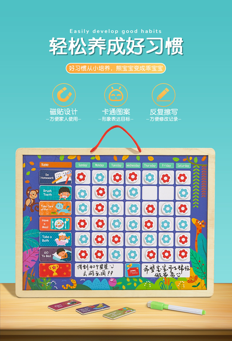 儿童行为规范磁性贴自律板 多种行为板块 增强时间概念 可供两个孩子同时记录